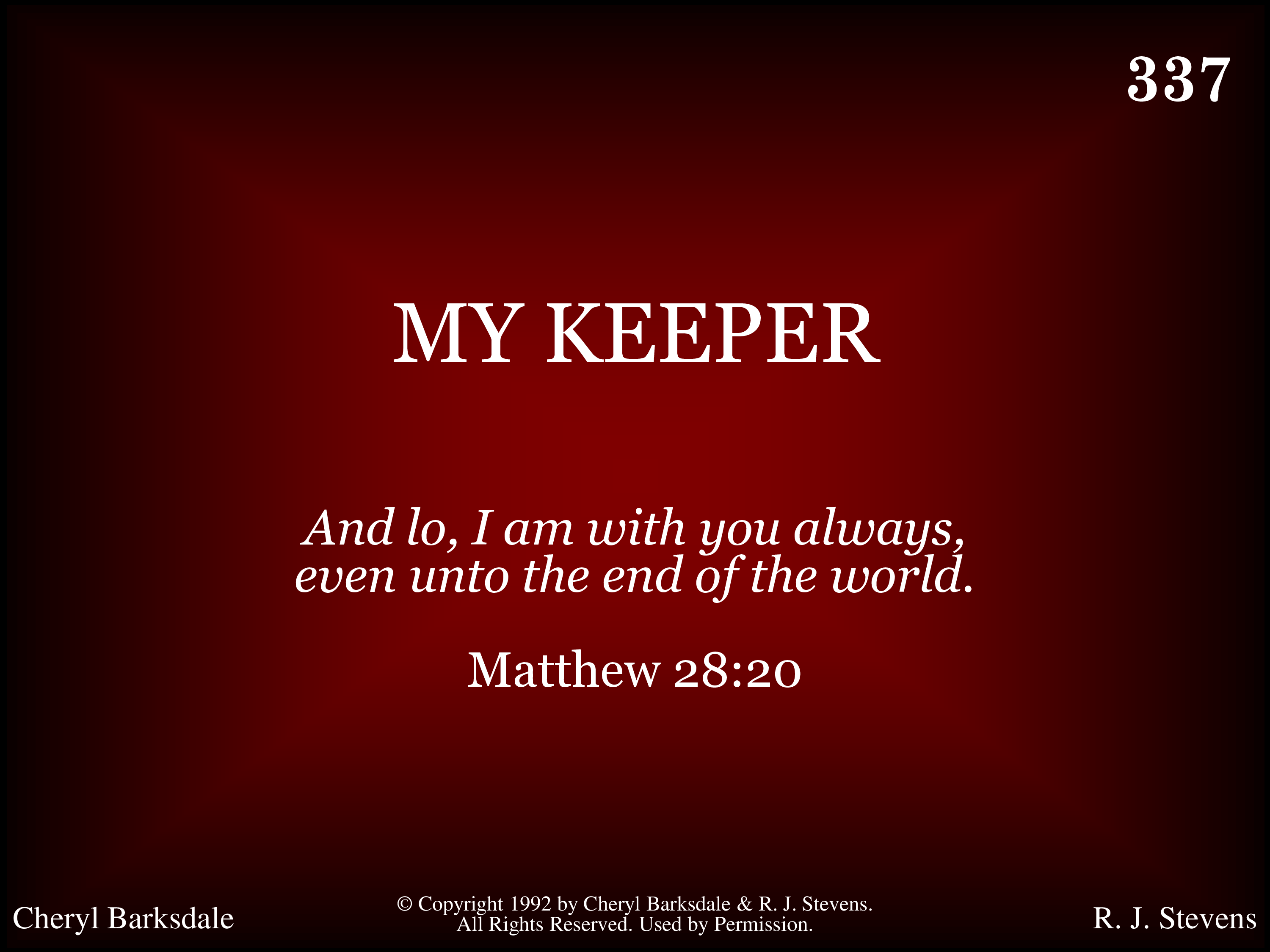 - Copyright © 1992 by Cheryl Barksdale & R. J. Stevens. All Rights Reserved. Used by Permission.