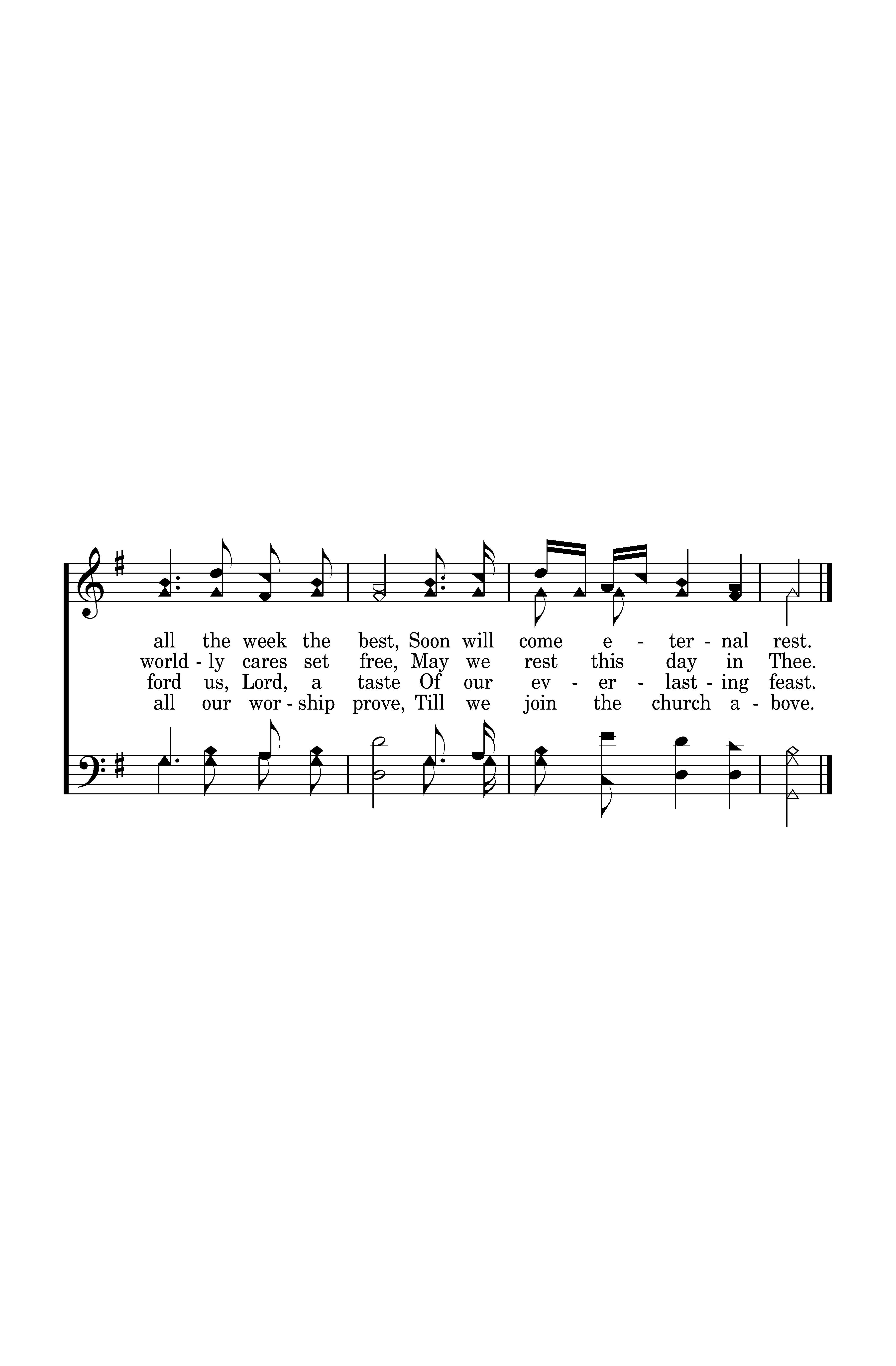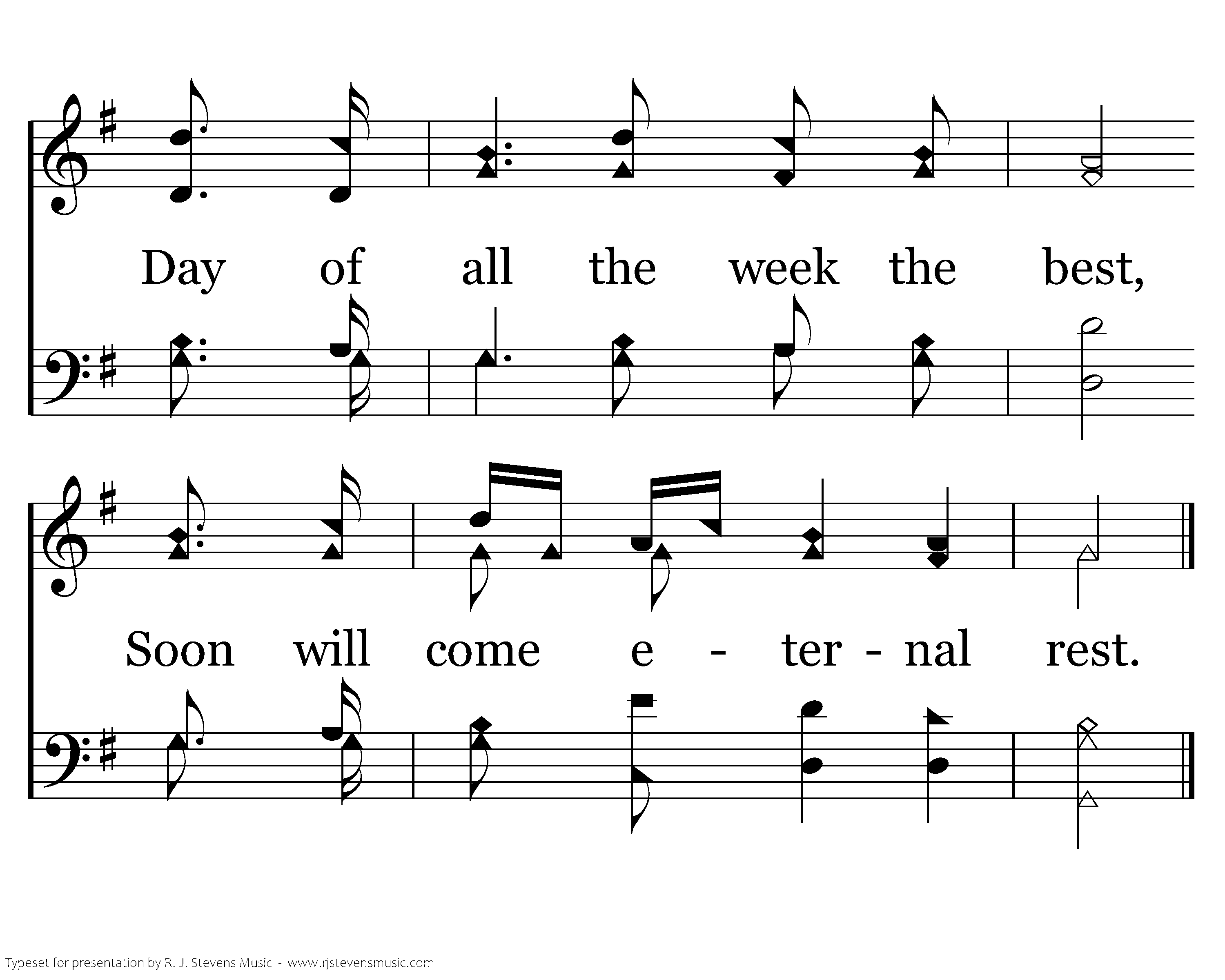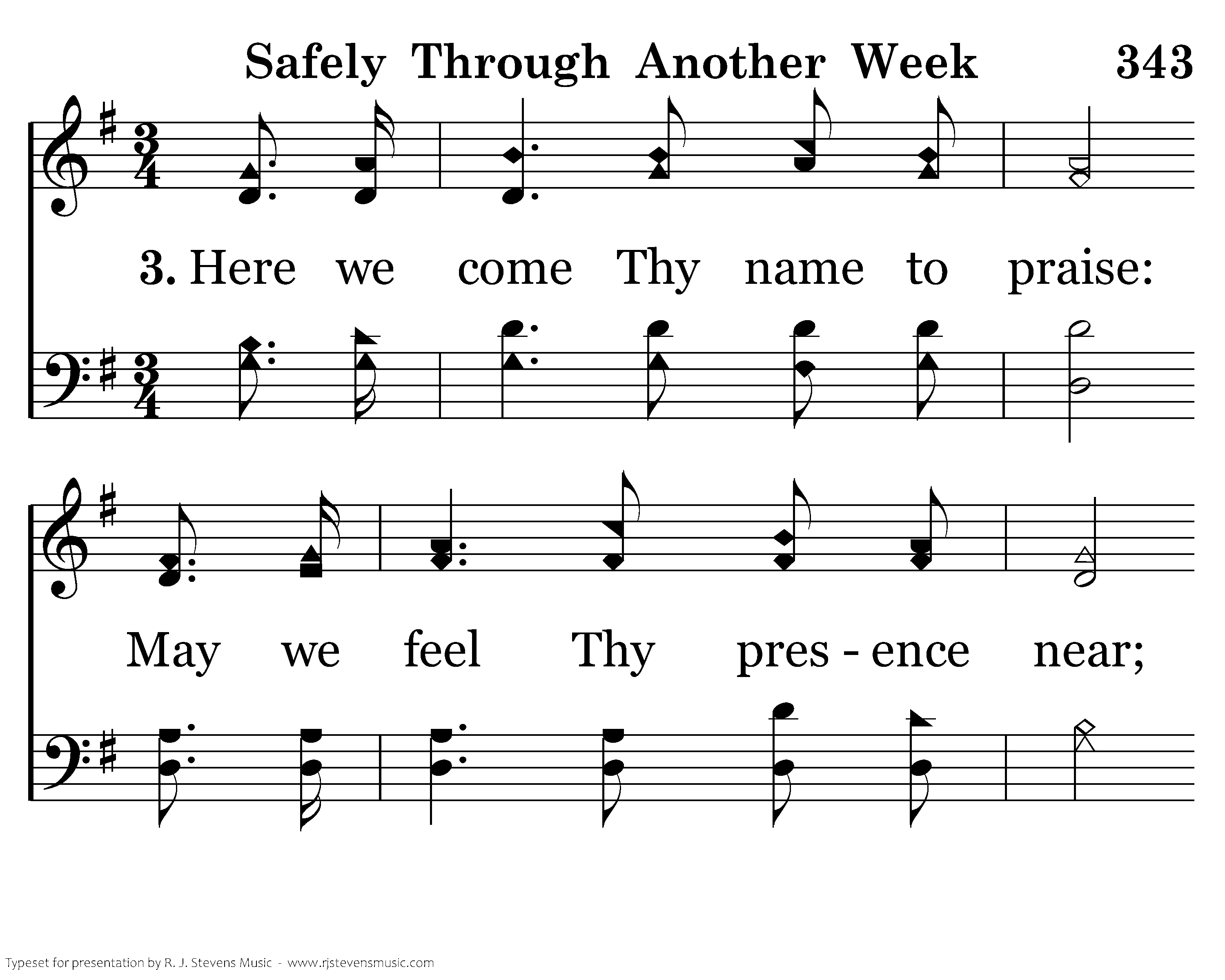 Safely thru another week, God has bro't us on our way; Let us now a blessing seek, Wait-ing in His courts today: Day of all the week the best, Soon will come eternal rest; Day of all the week the best, Soon will come eternal rest.