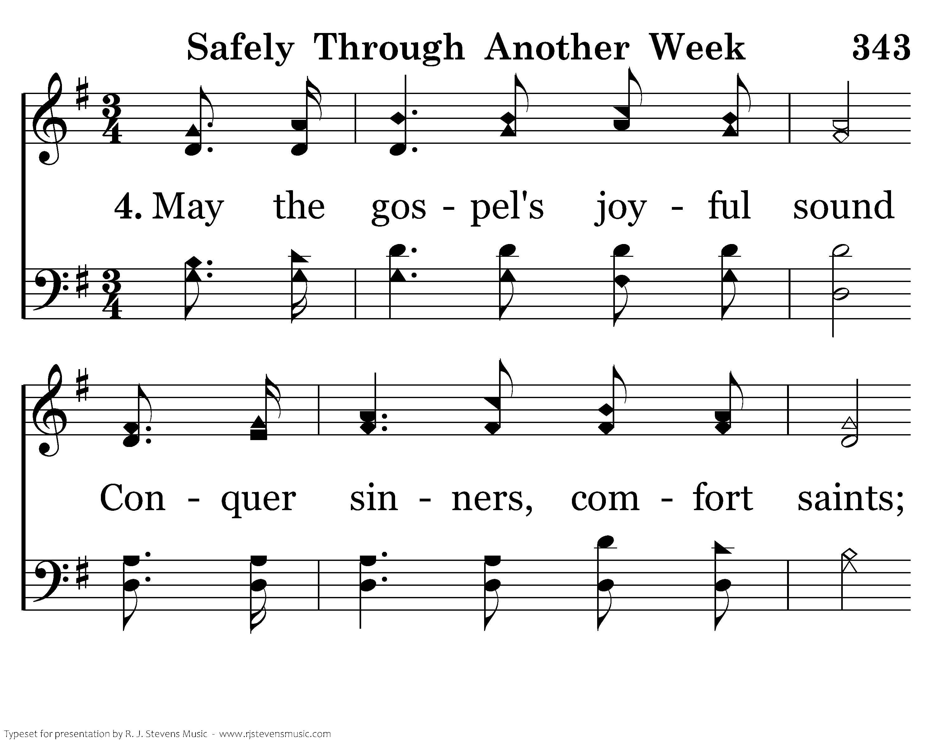 May the gospel's joyful sound Conquer sinners, comfort saints; Make the fruits of grace abound, Bring relief to all complaints; Thus may all our worship prove, Till we join the church above; Thus may all our worship prove, Till we join the church above.