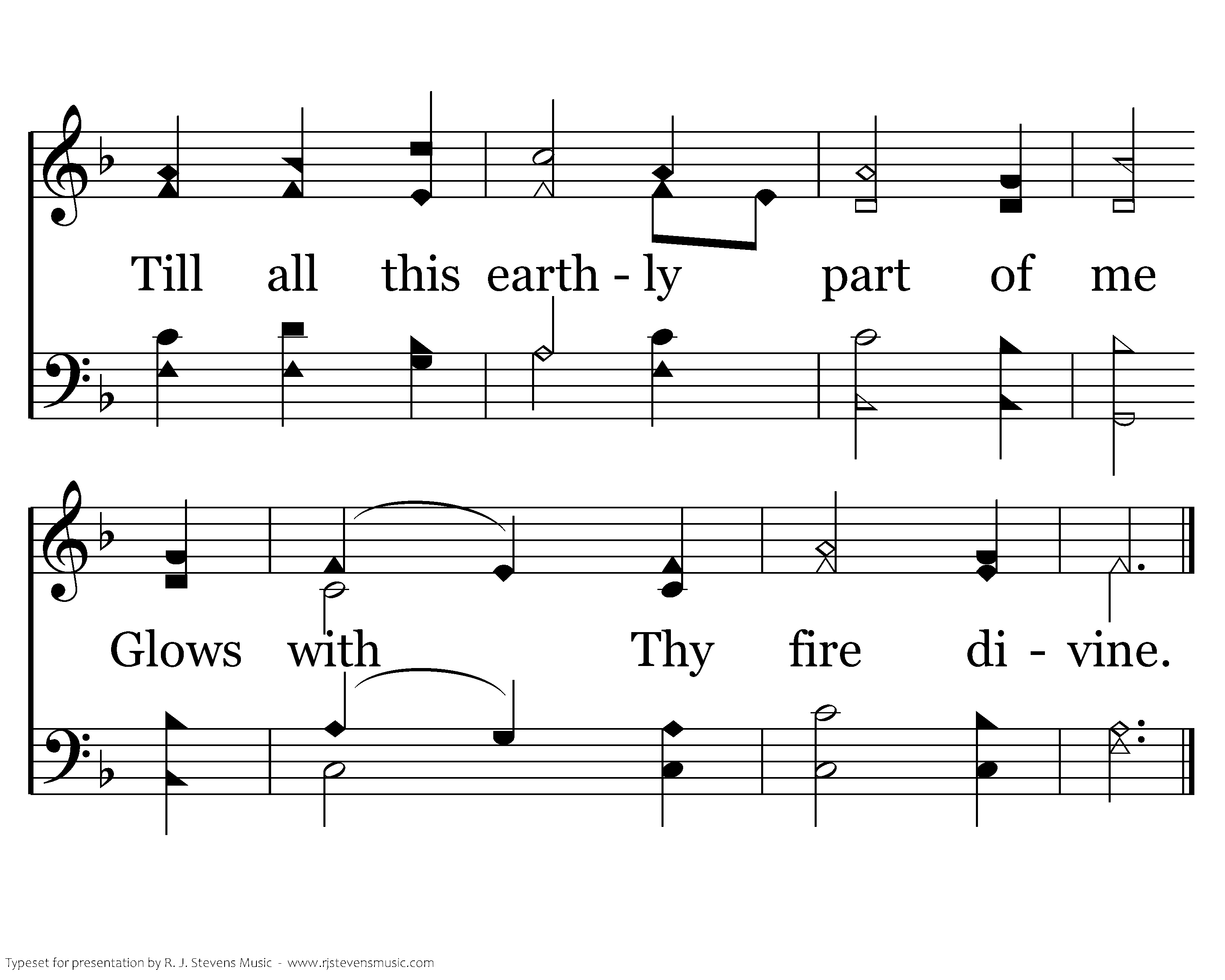 Breathe on me, Breath of God, Till I am wholly Thine, Till all this earthly part of me Glows with Thy fire divine.