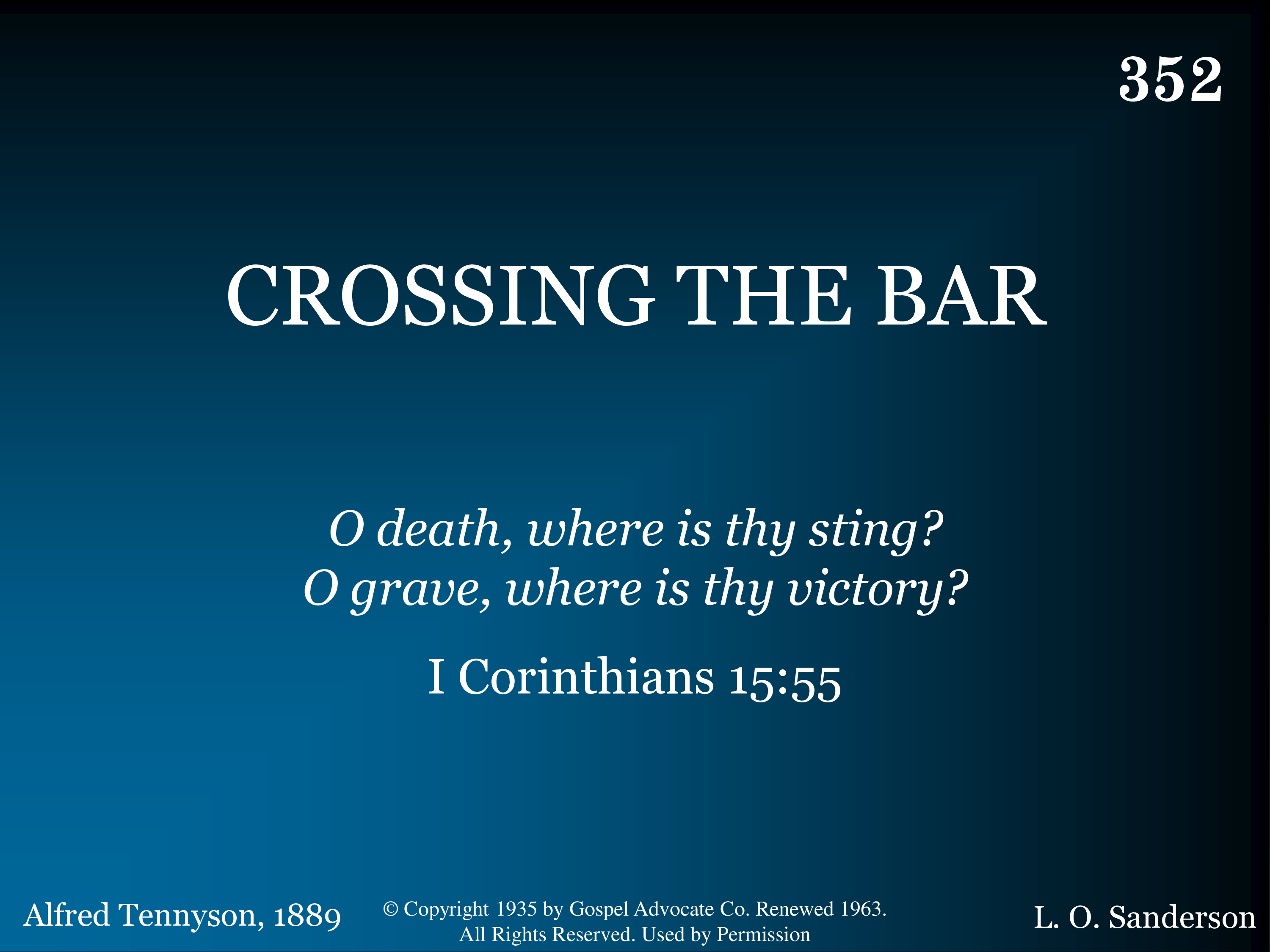 - Copyright © 1935. Renewed 1963 by Gospel Advocate Co. Assigned to Leon B. Sanderson. (Admin. by Leon B. Sanderson.) All Rights Reserved. Used by Permission.