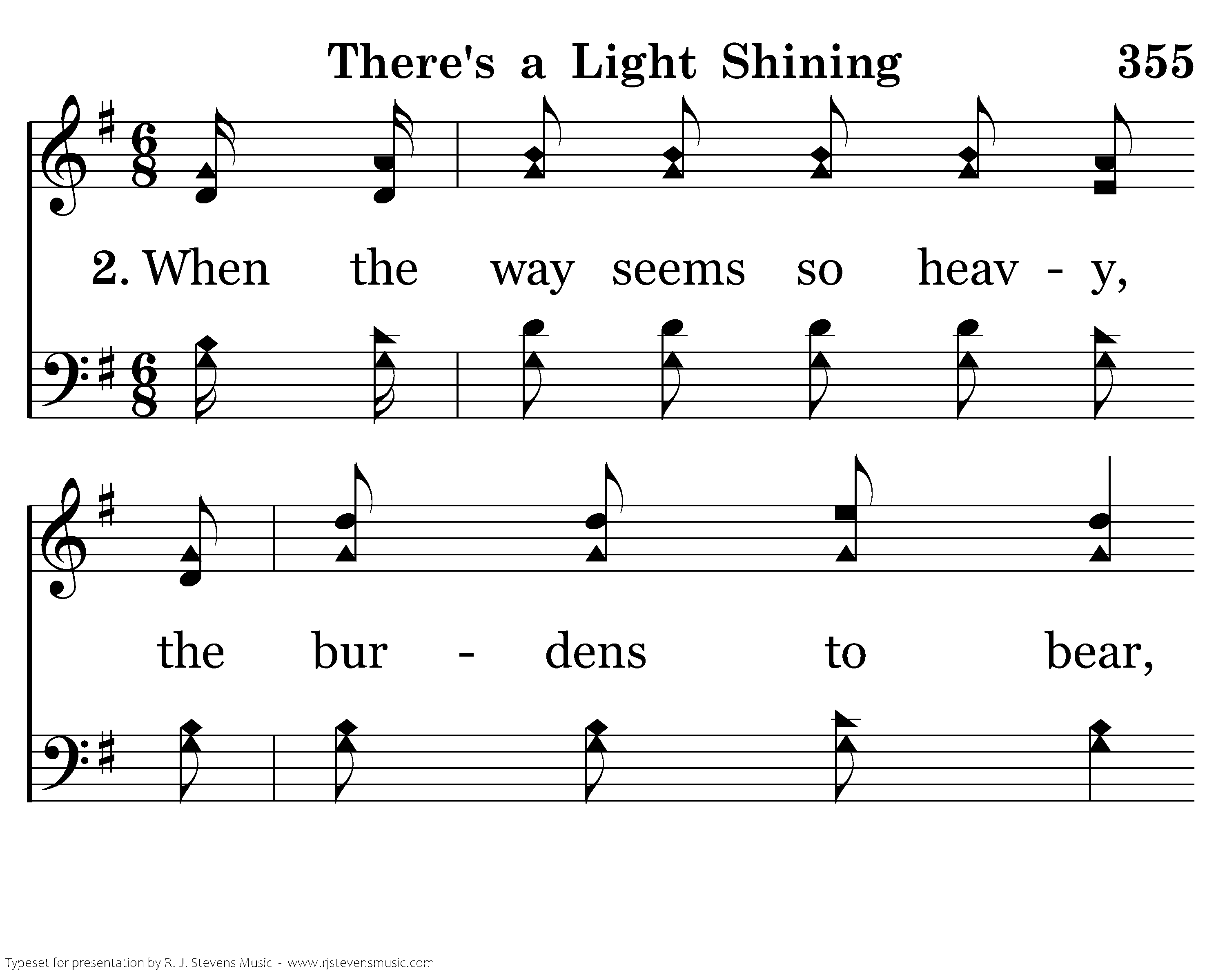 When the way seems so heavy, the burdens to bear, There's a light that is shining for me; Then I think of my Savior on Calvary there, There's a light that is shining for me.