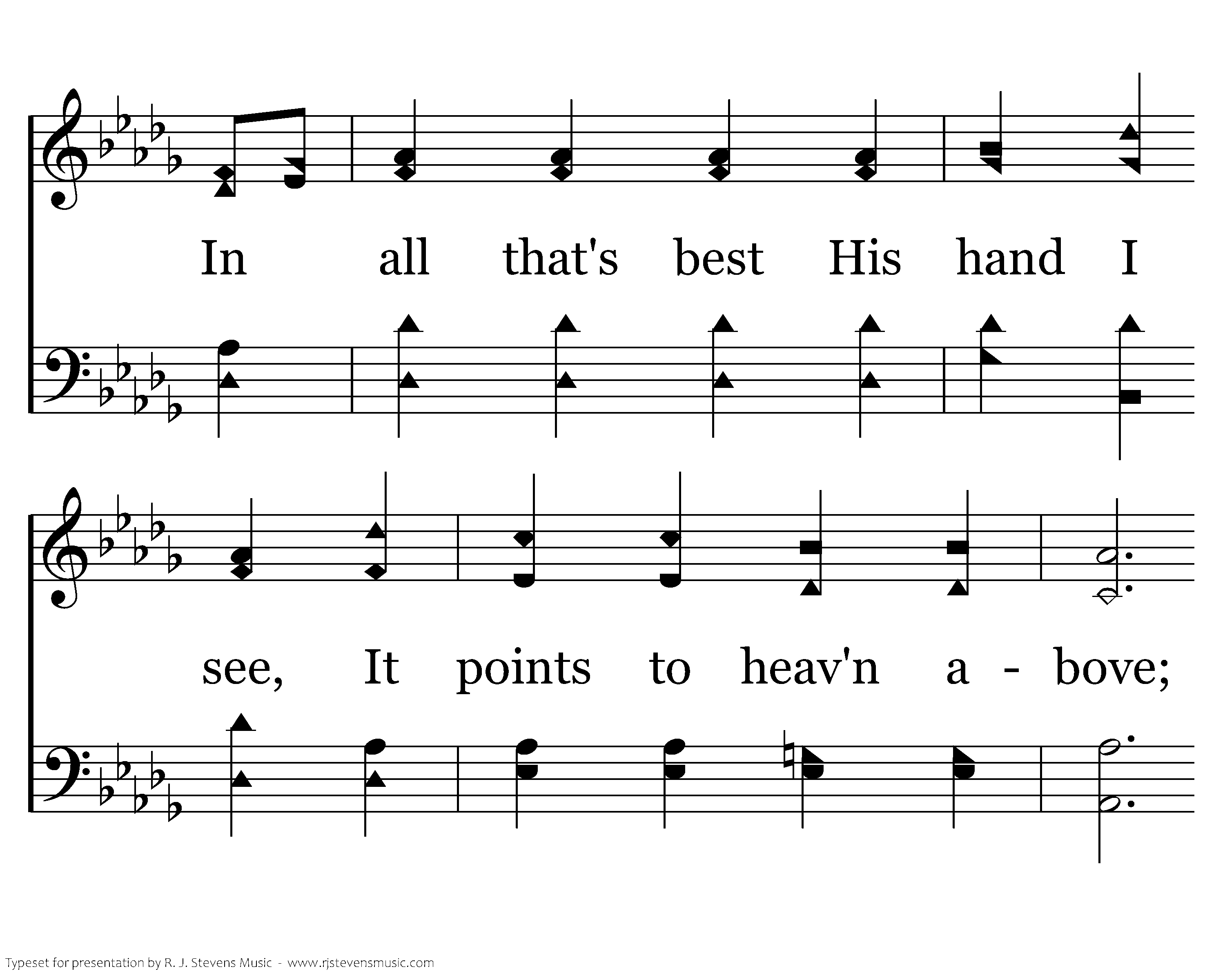 My Savior daily walks with me Because I trust His love, In all that's best His hand I see, It points to heavn' above; I will follow Him thru shadows dim or in the sunshine bright, And on we walk together, Leads my steps aright.