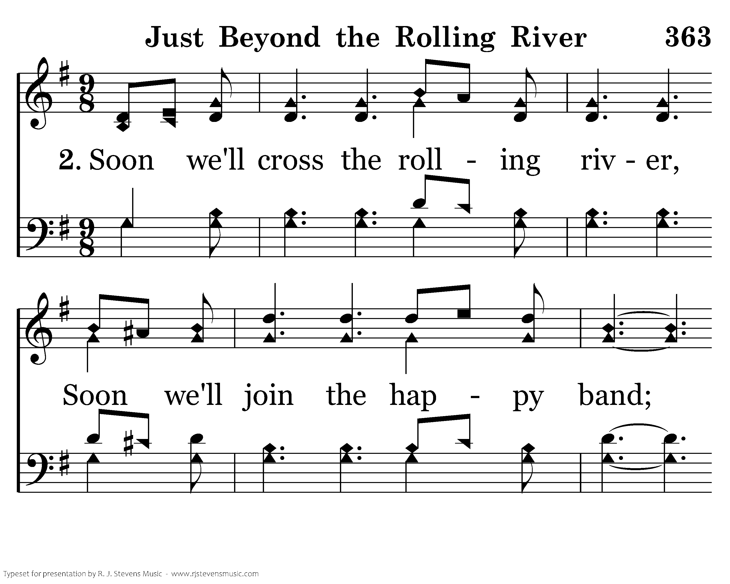 Soon we'll cross the rolling river, Soon we'll join the happy band; There to dwell with Christ forever In that holy happy land.