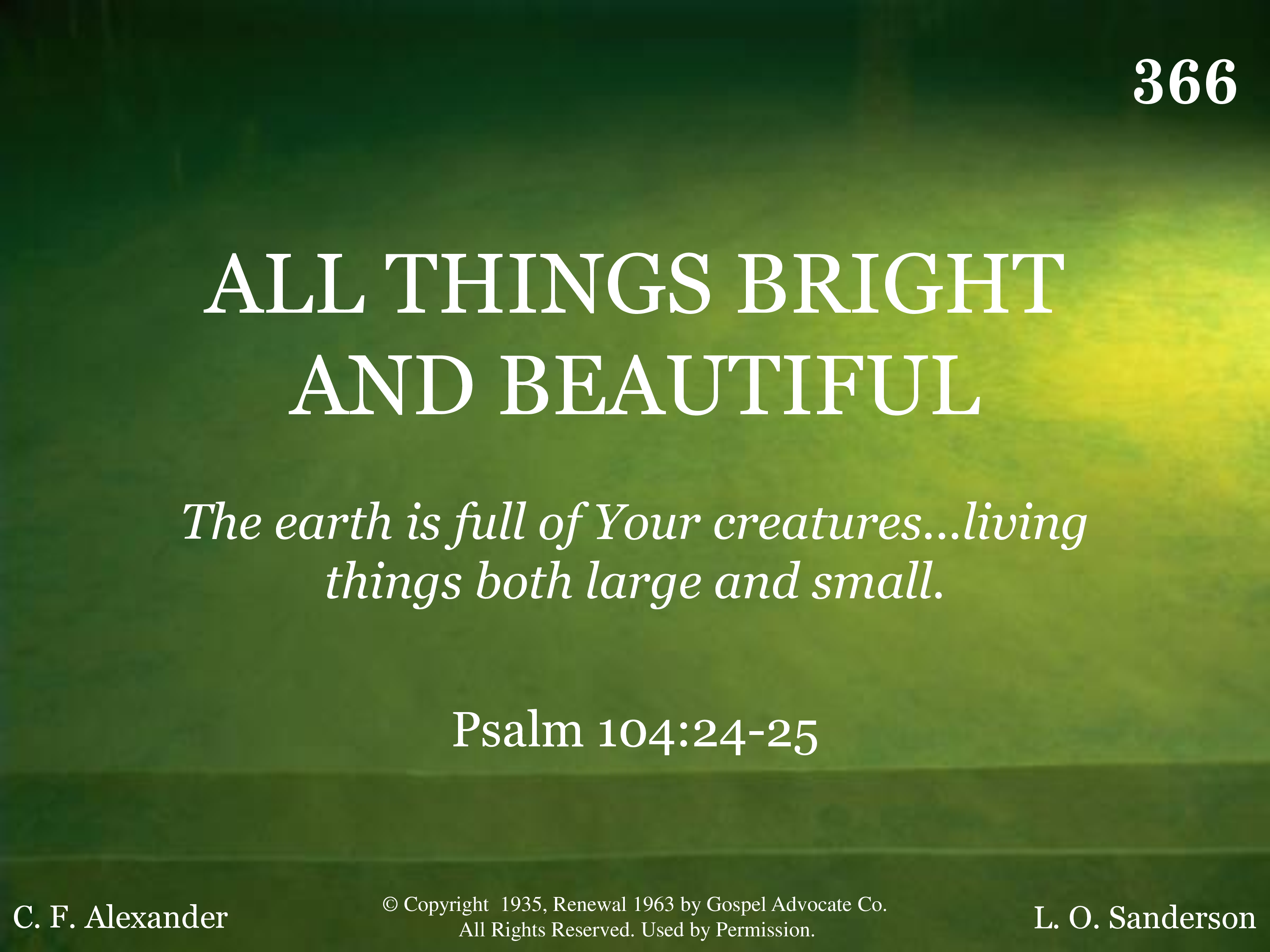 | Title | ALL THINGS BRIGHT AND BEAUTIFUL |