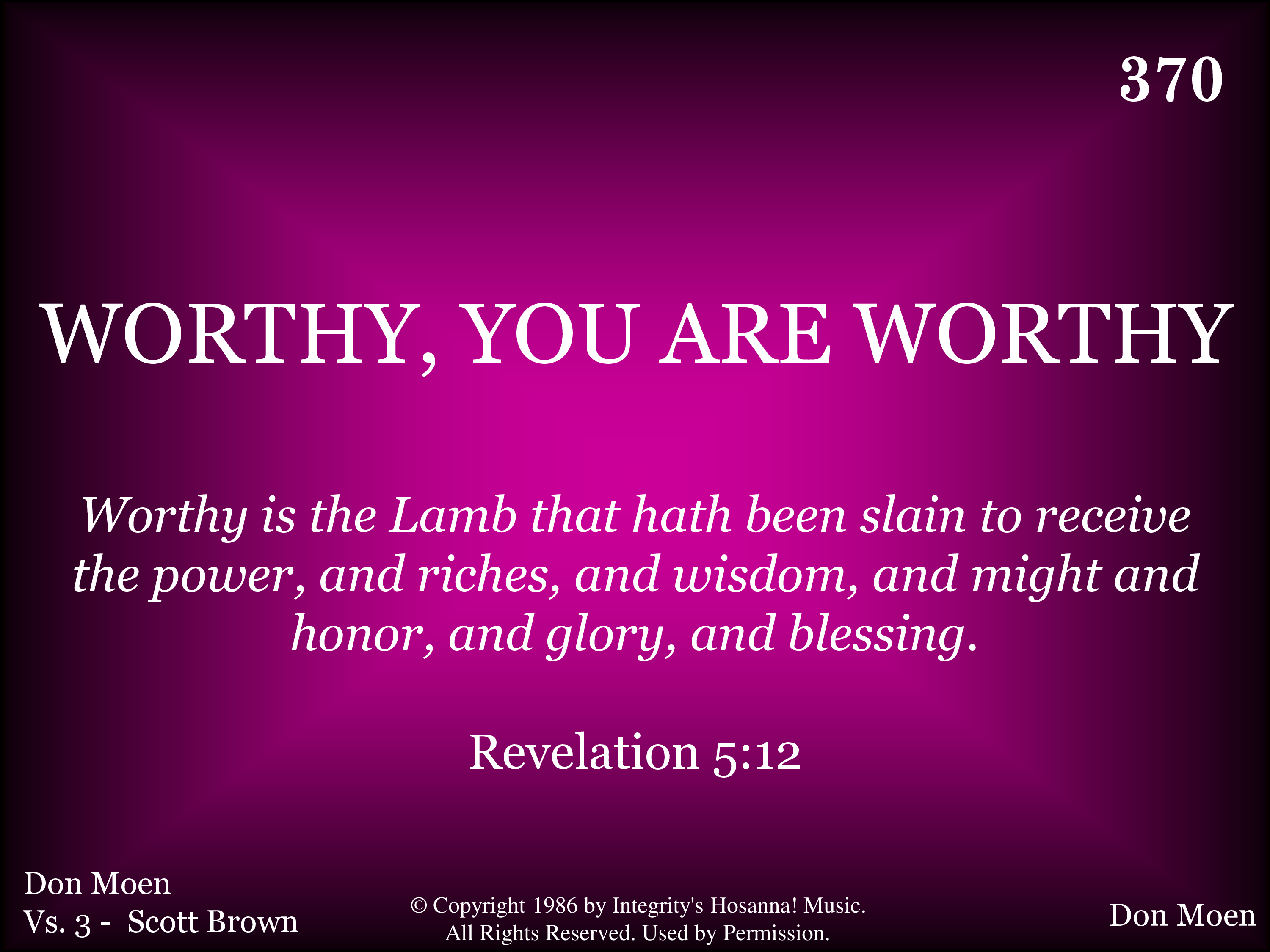 Key Value Title WORTHY, YOU ARE WORTHY Number 20370 Hymnal Hymns For Worship (eChoice) Key Signature E