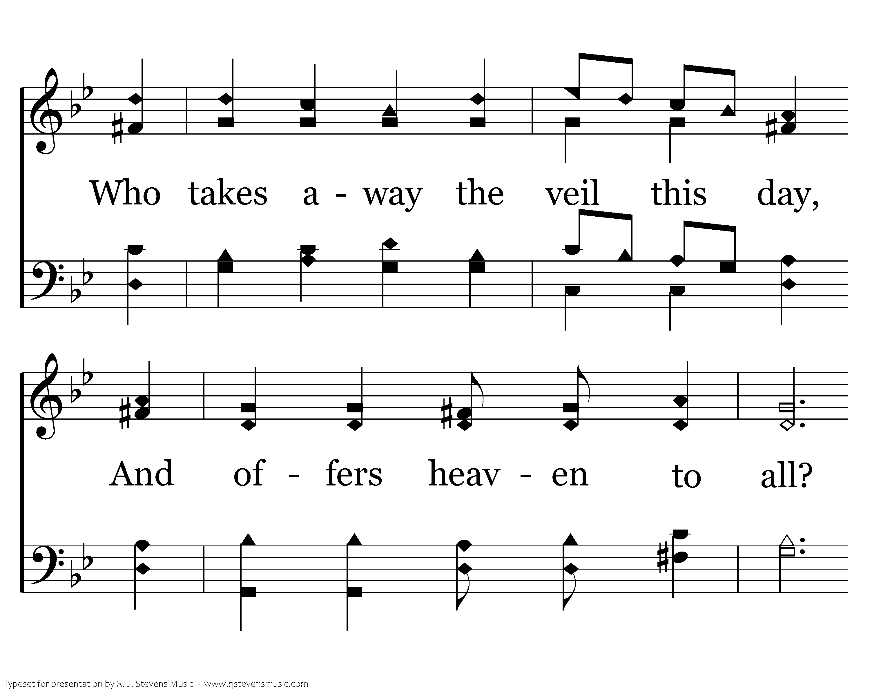 What means this rending of the veil? What tears this woven wall? Who takes away the veil this day, And offers heaven to all? Who offers heaven to all?