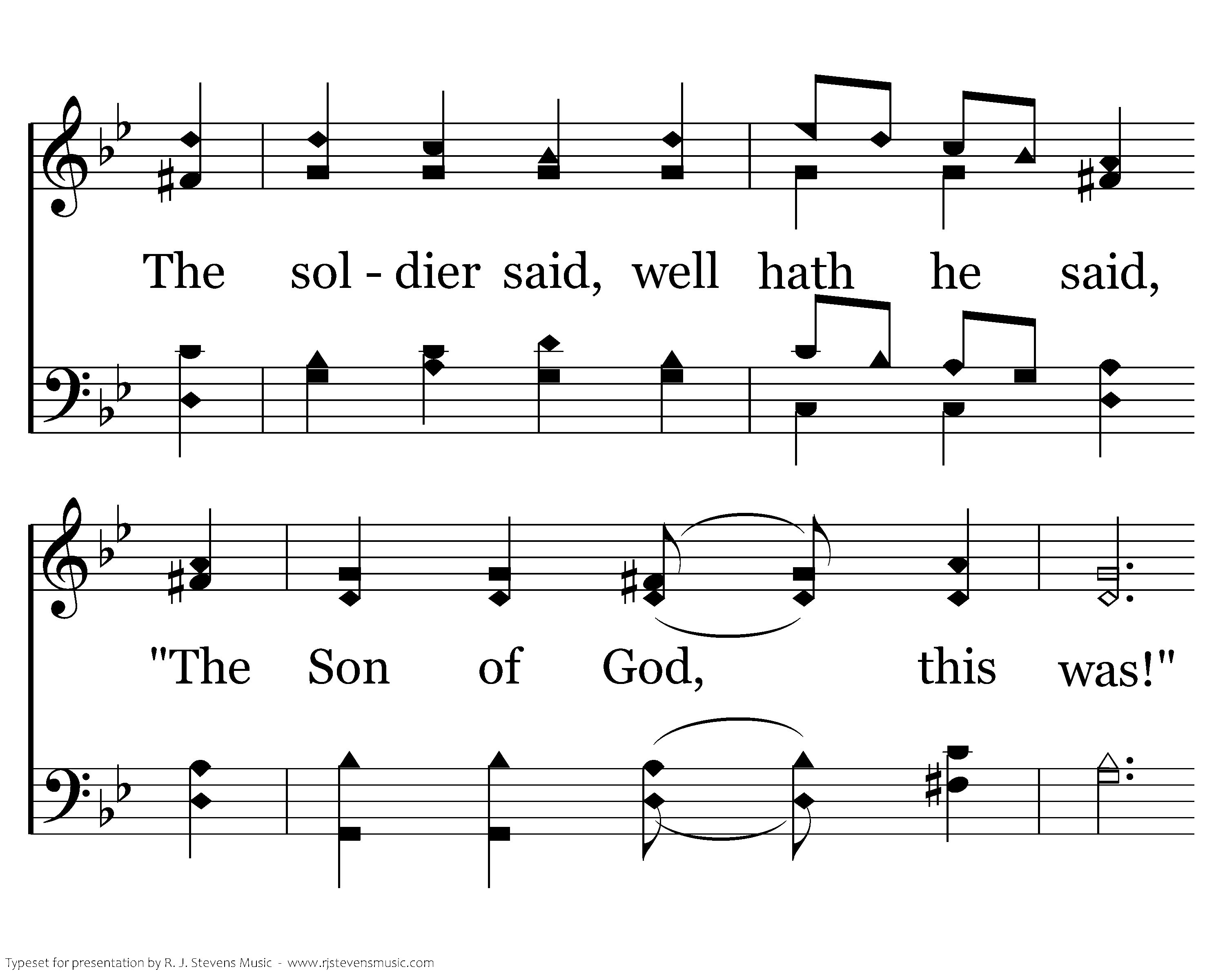 Whose body that on yonder hill? O darkness, this the cause! The soldier said, well hath he said, "The Son of God, this was!" "The Son of God, this was!"