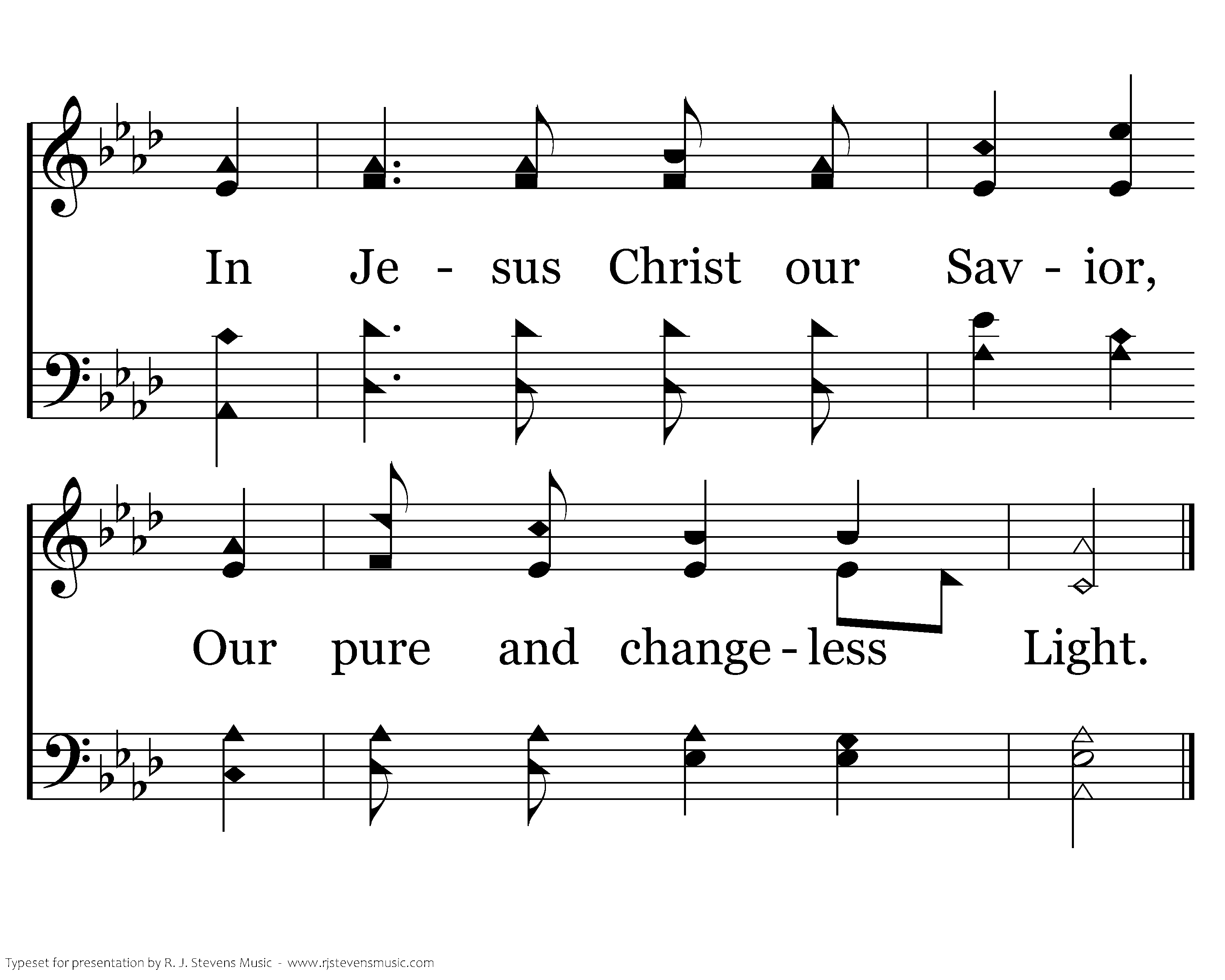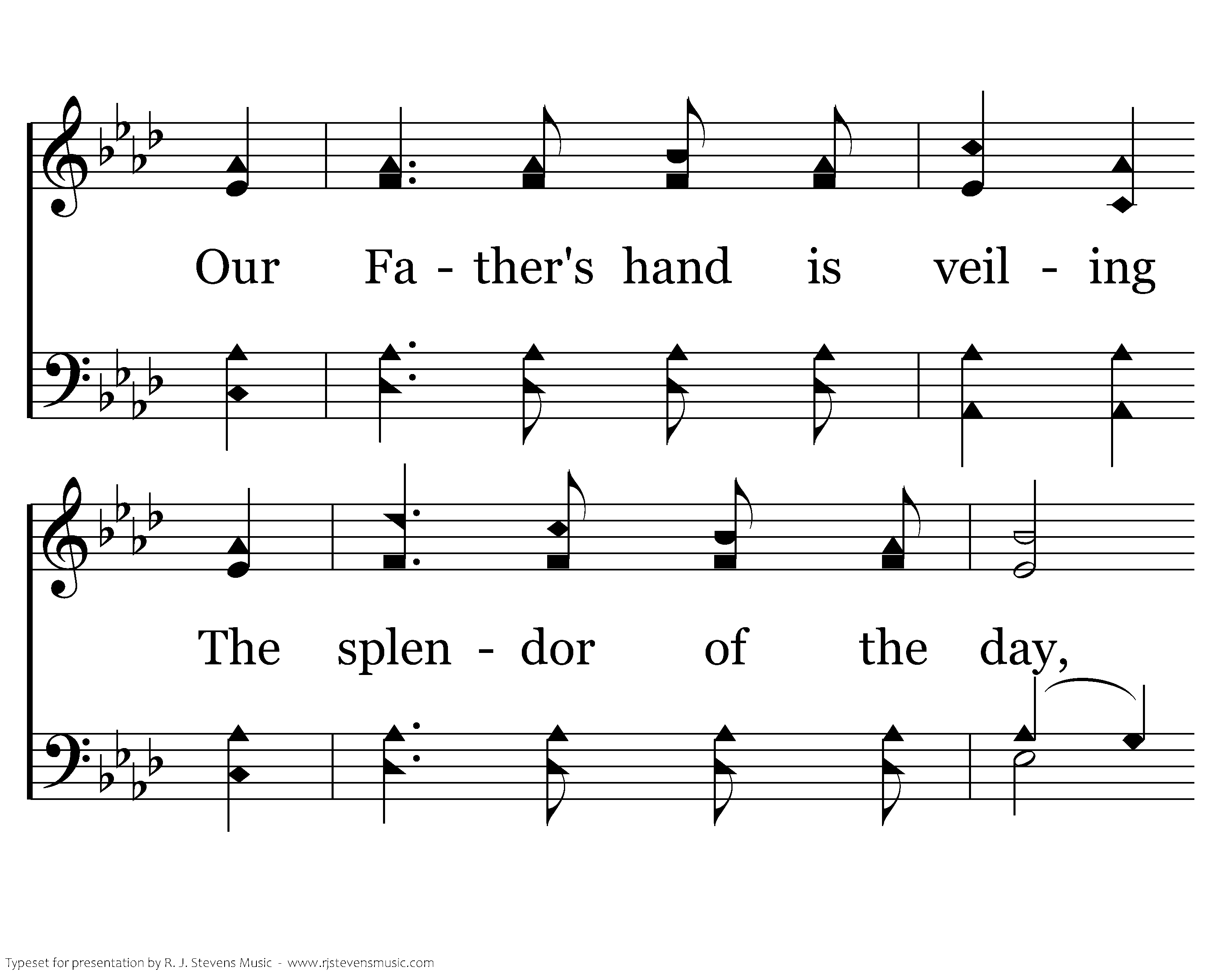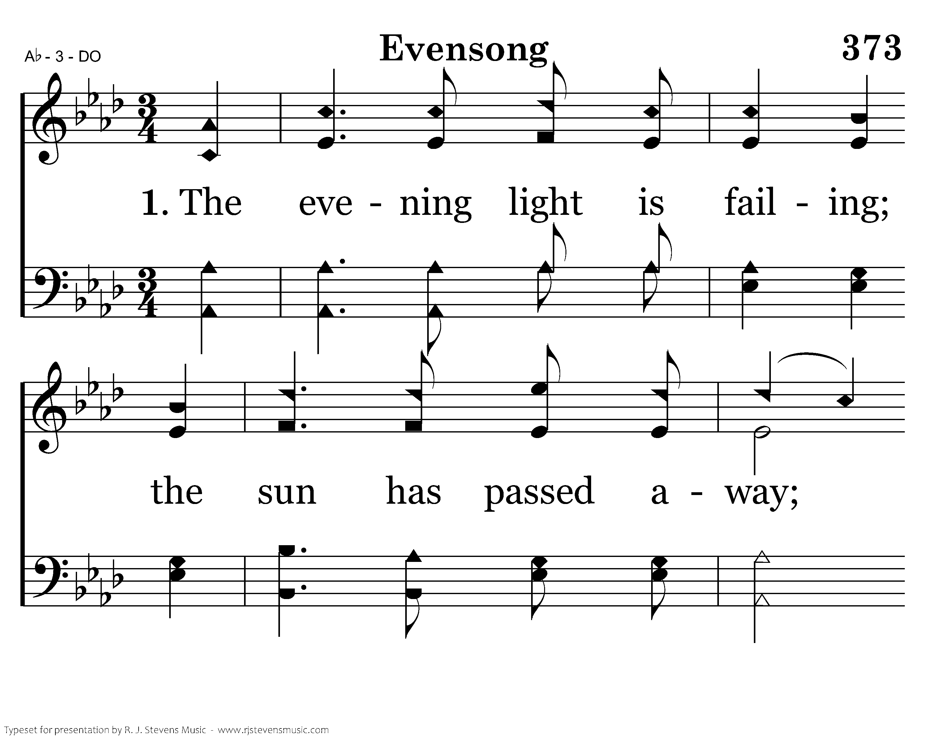 The evening light is falling; the sun has passed away; Our Father's hand is veiling the splendor of the day, But still we know His favor And see it shine more bright In Jesus Christ our Savior, Our pure and changeless Light.
