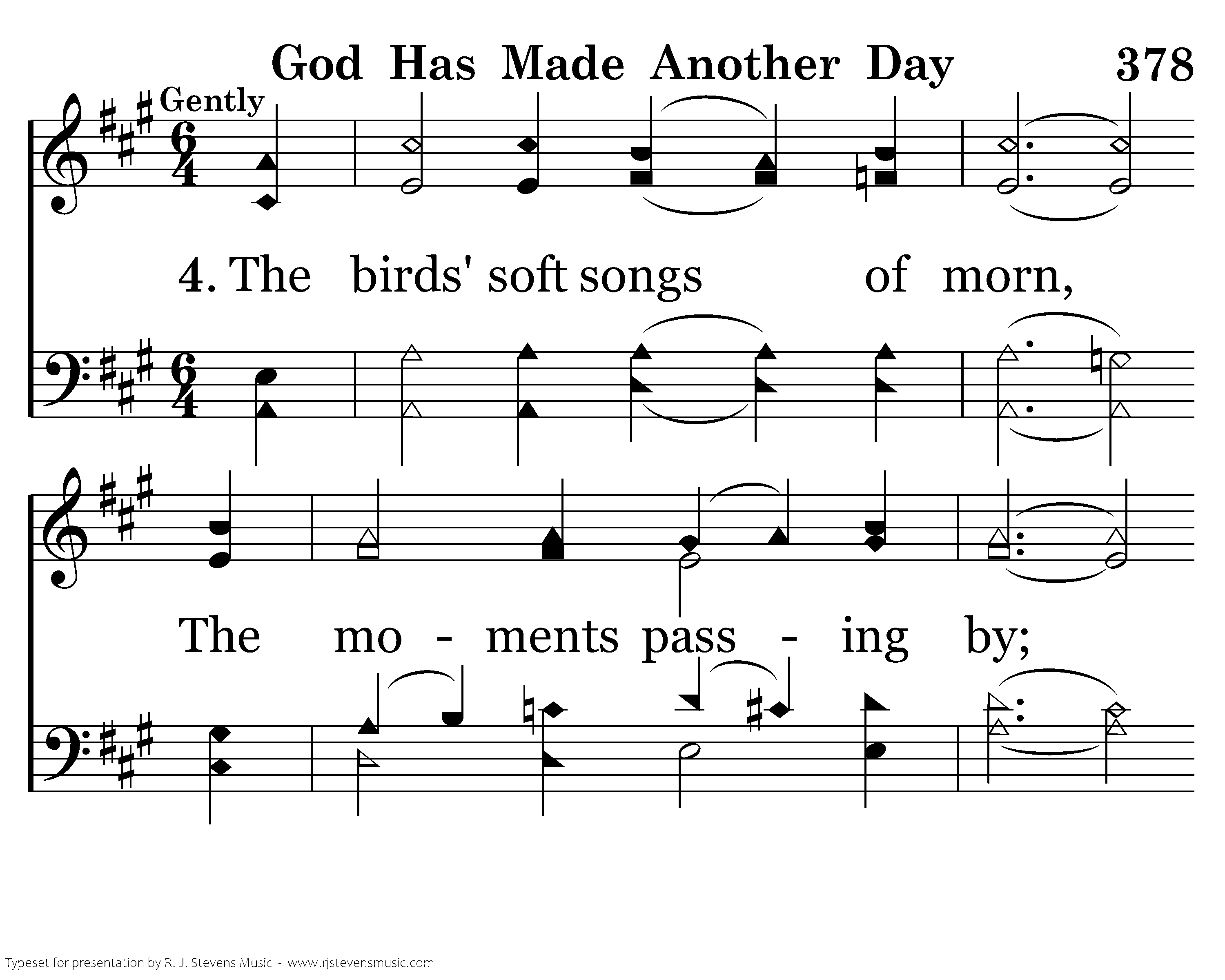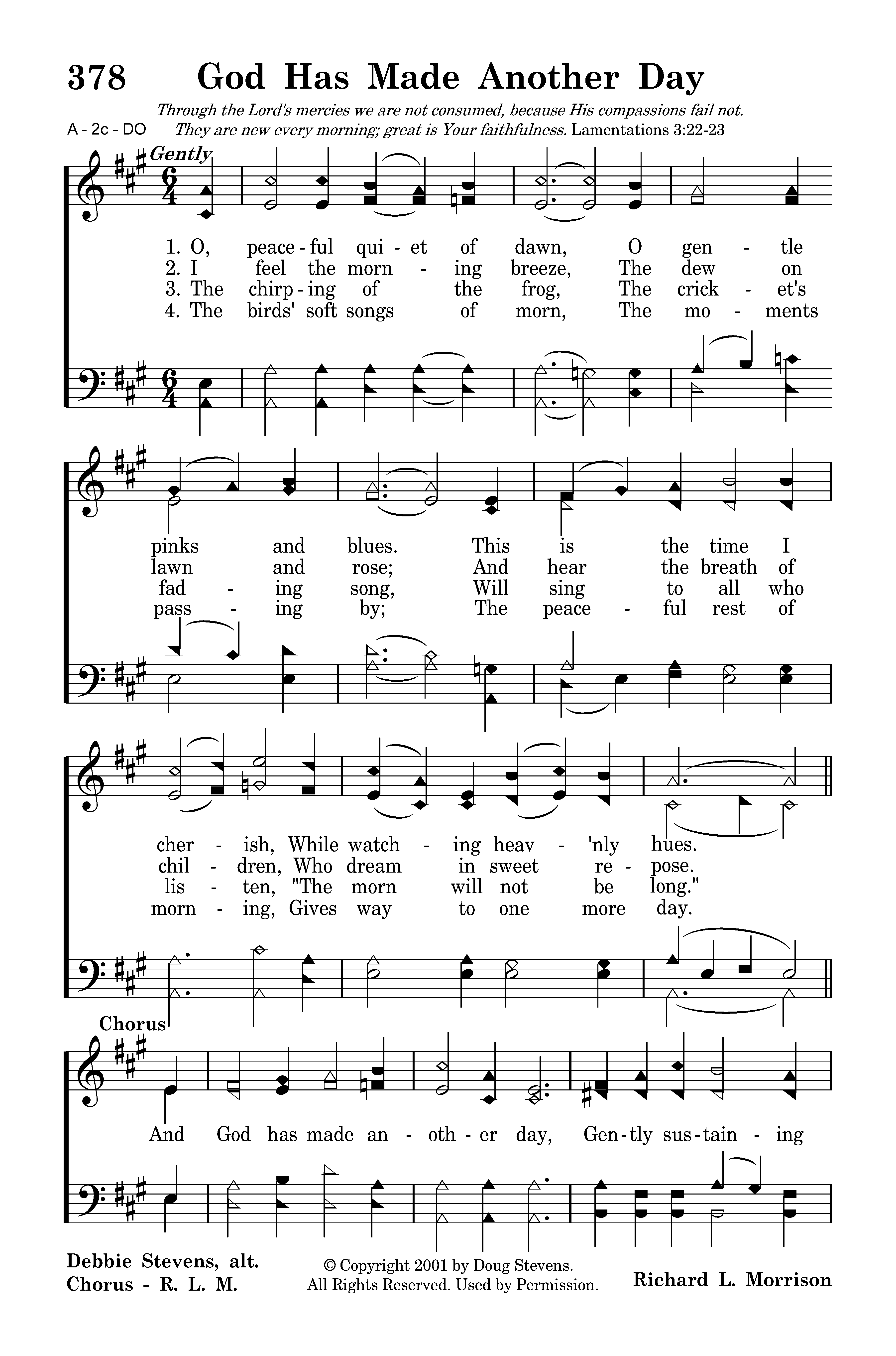 And God has made another day, Gently sustaining me. His Loving Breath shall guide thru the day, Giving me calmness and peace.