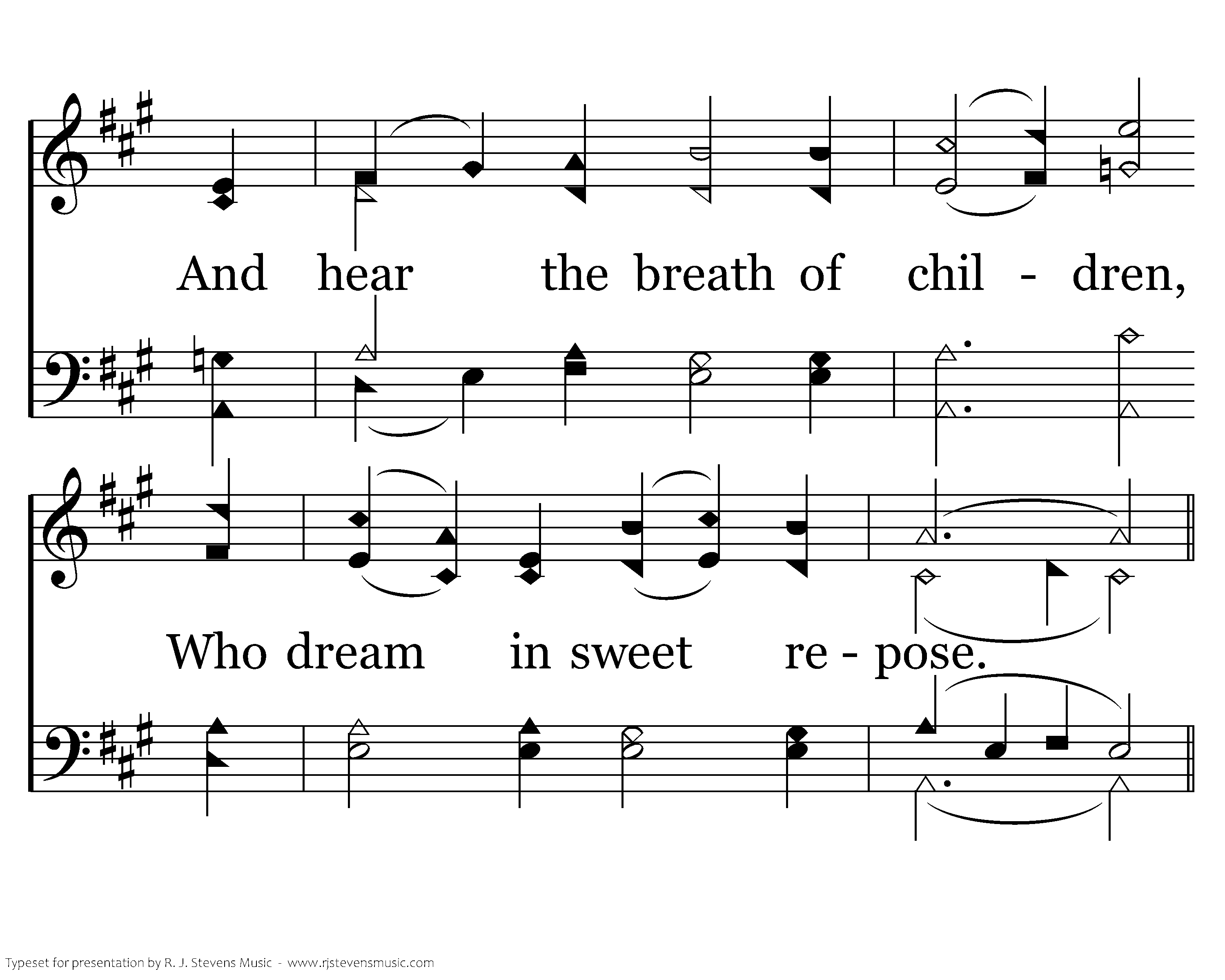 I feel the morning breeze, The dew on lawn and rose; And hear the breath of children, Who dream in sweet repose.