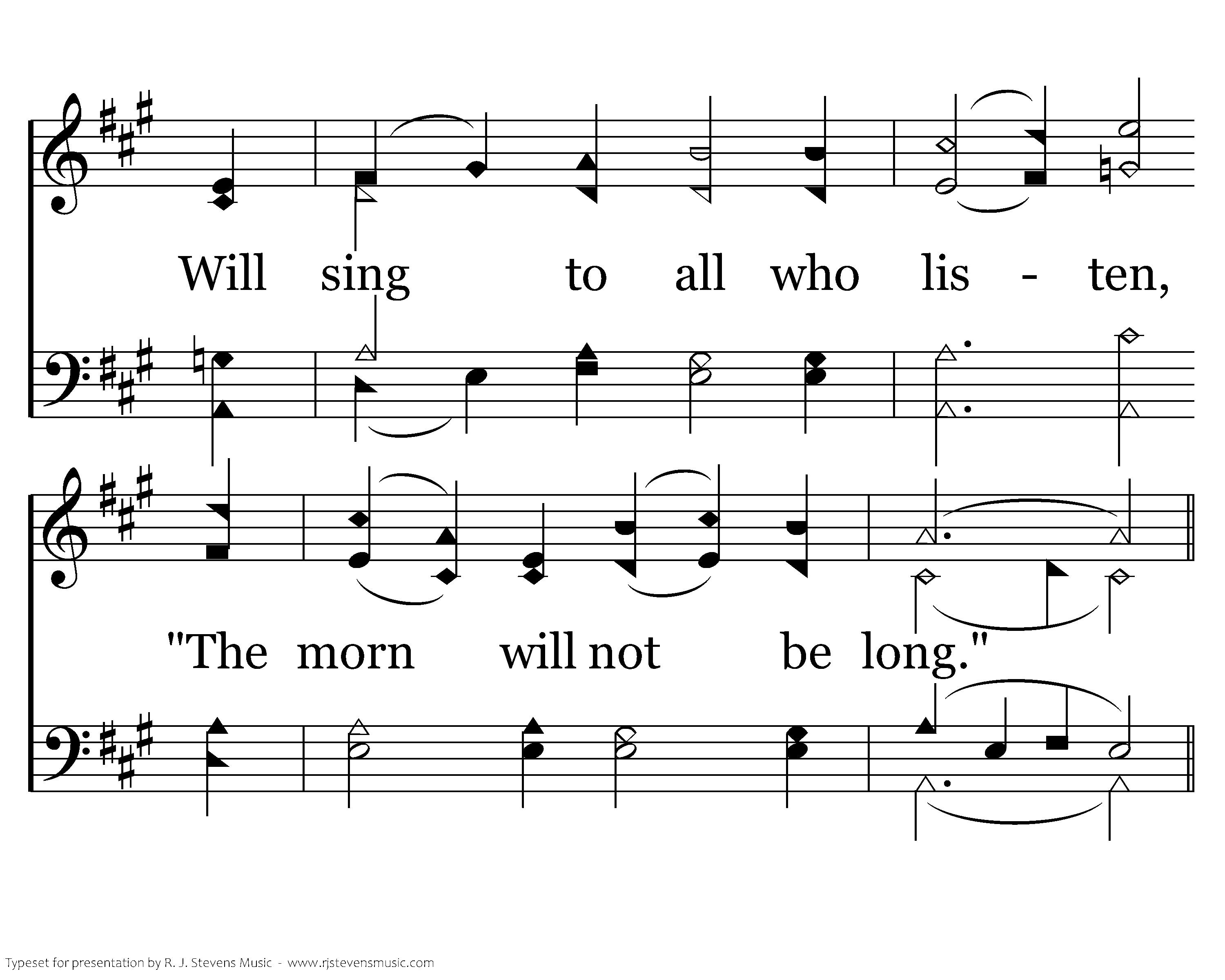 The chirping of the frog, The cricket's fading song, Will sing to all who listen, "The morn will not be long."