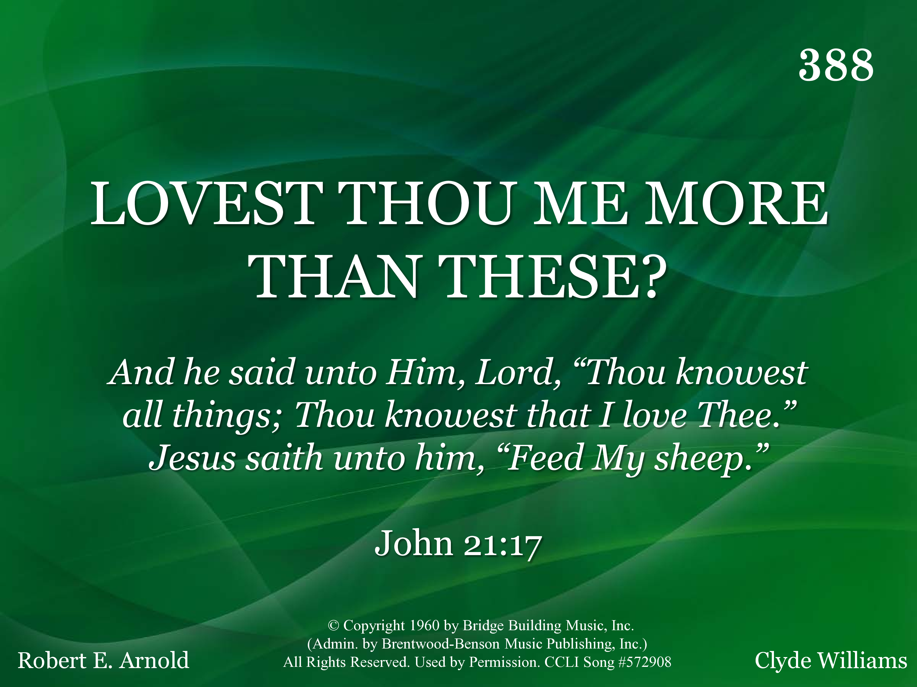 - Copyright © 1960 by Bridge Building Music. (Admin. by Brentwood-Benson Music Publishing, Inc.) All Rights Reserved. Used by Permission.