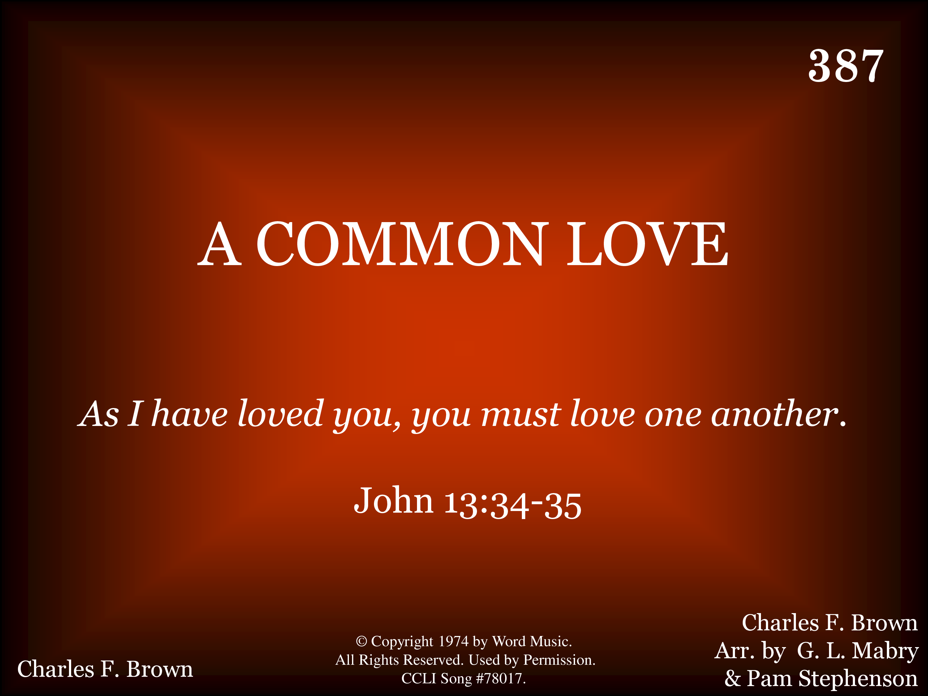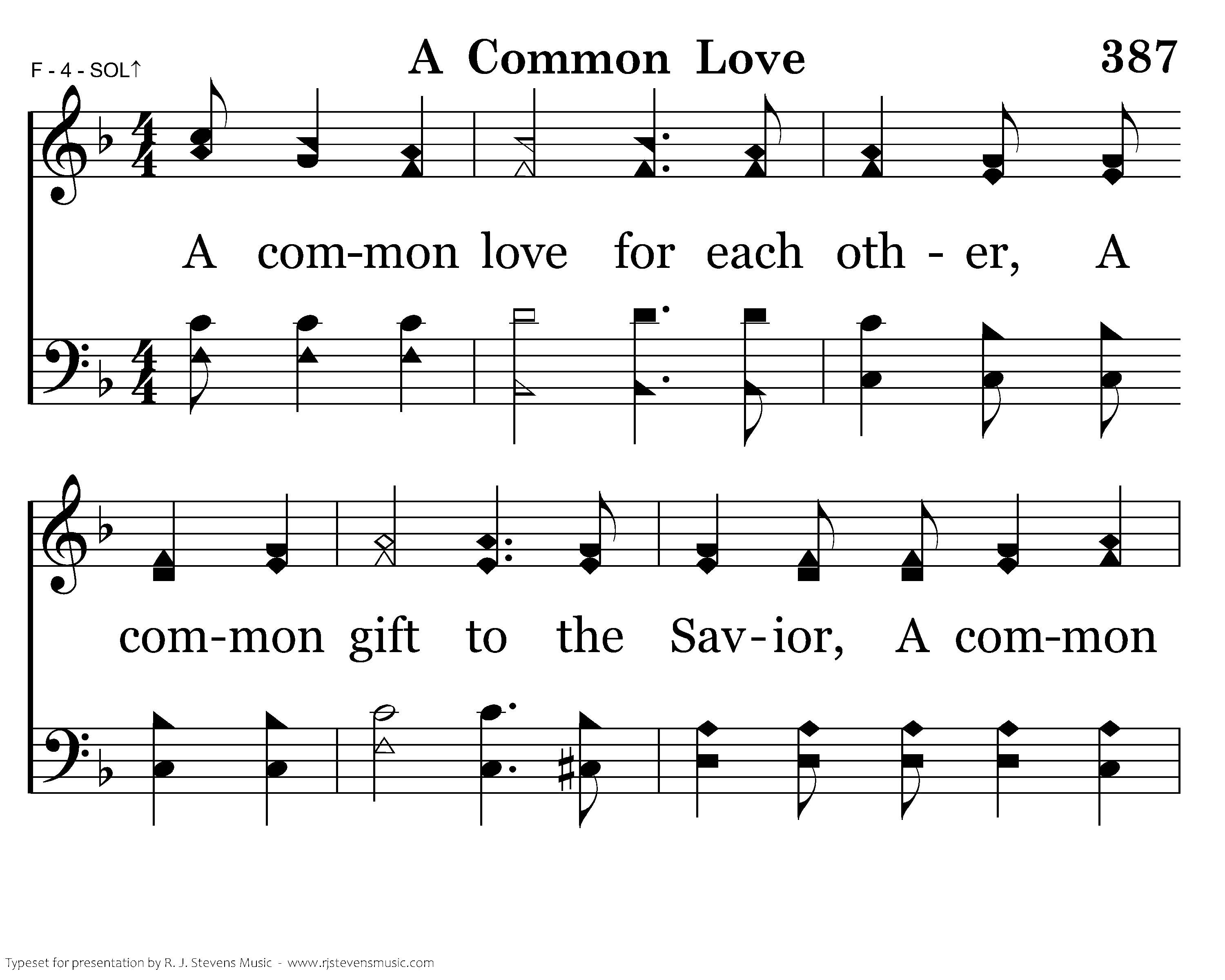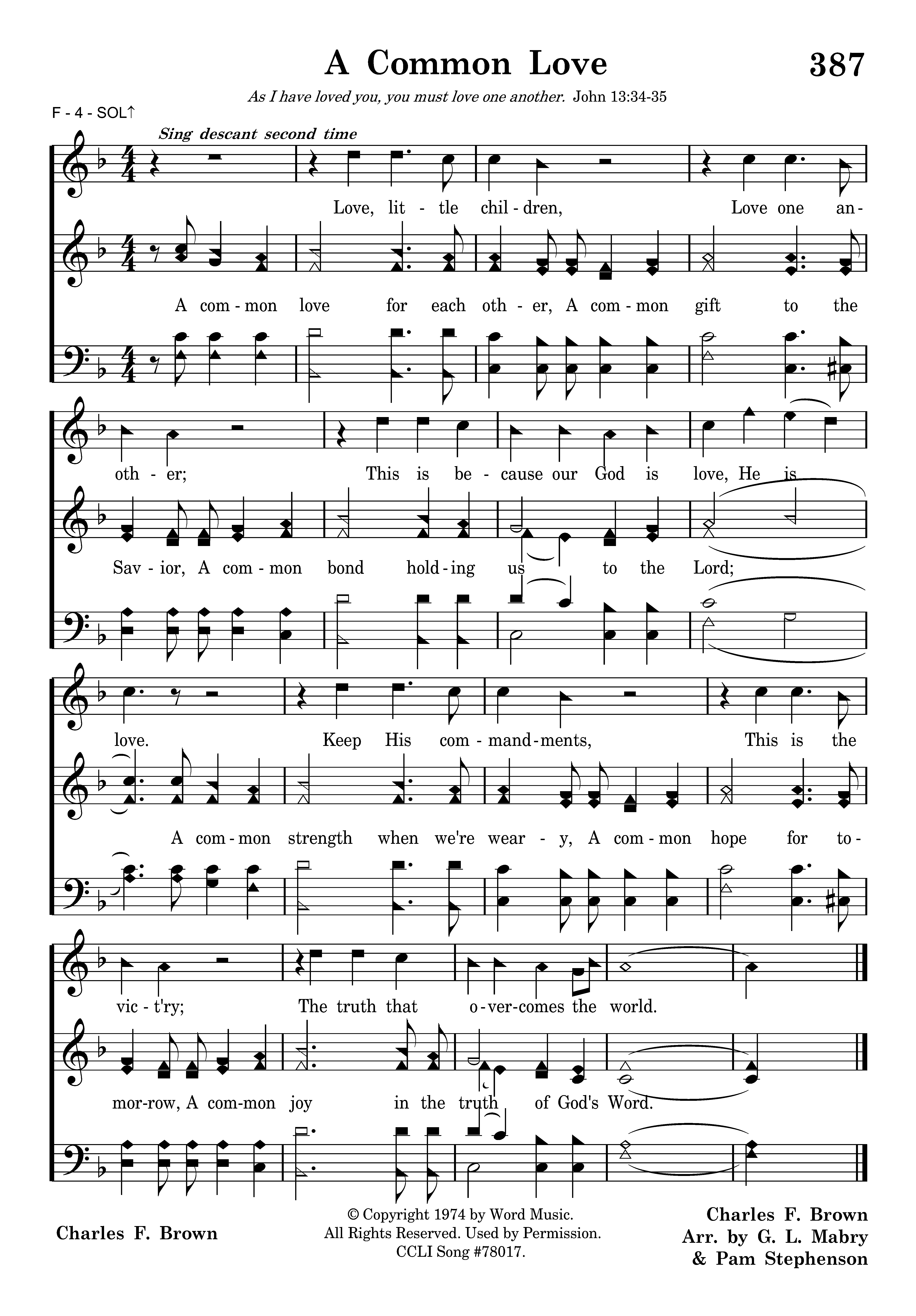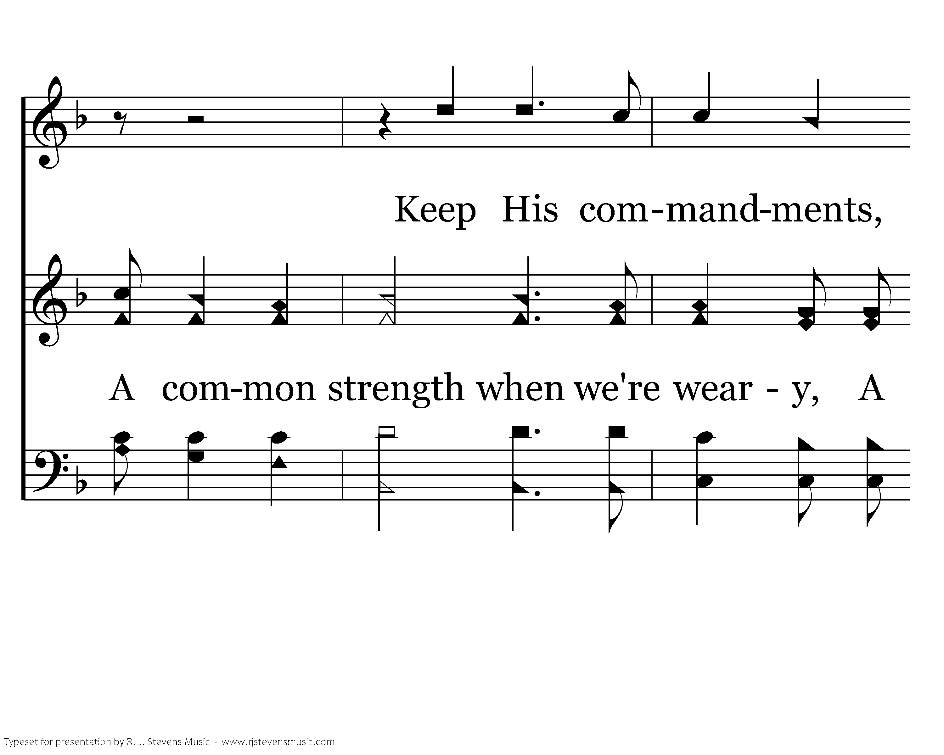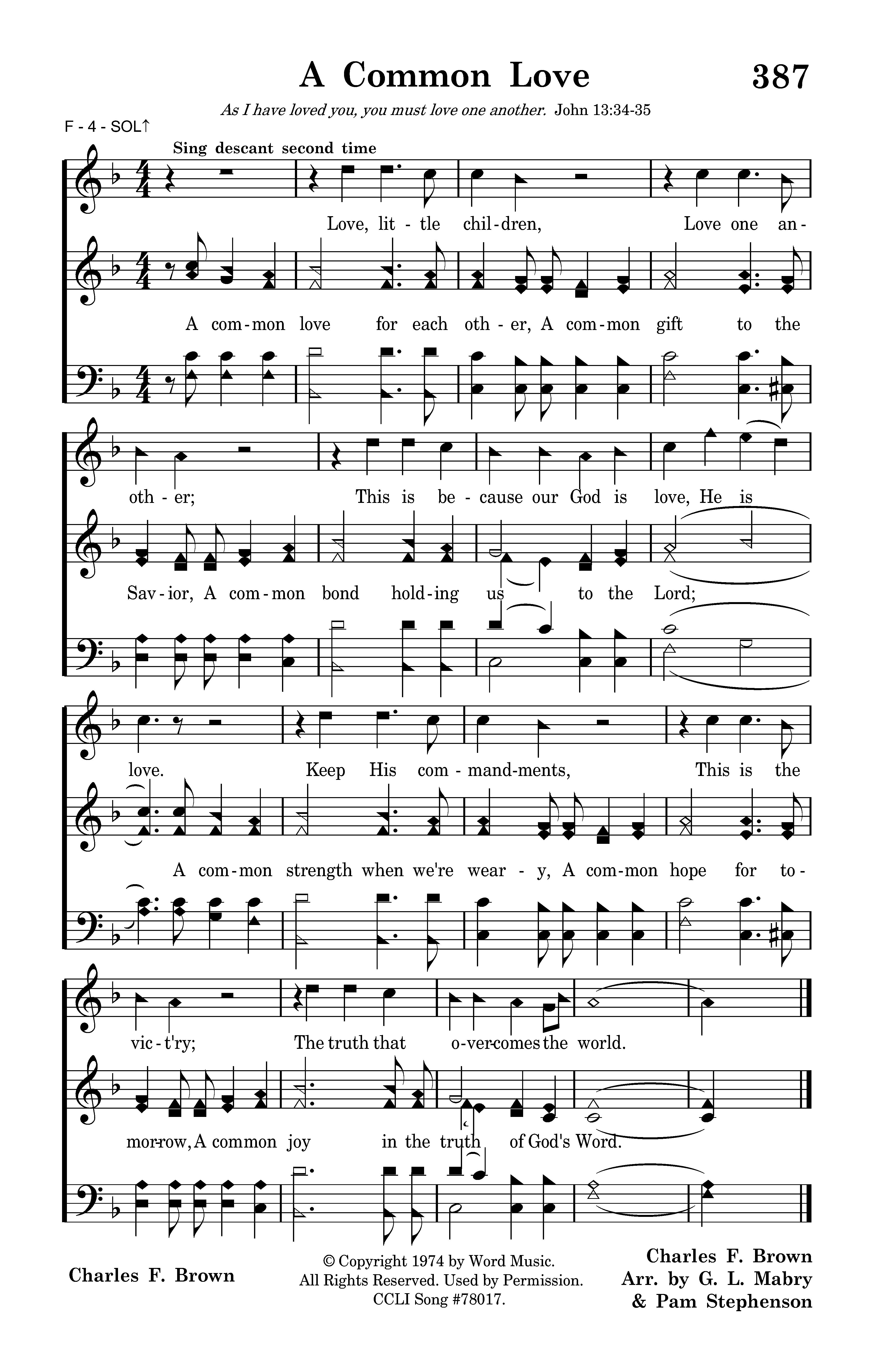 A common love for each other, A common gift to the Savior, A common bond holding us to the Lord; A common strength when we're weary, Love, little children, Love one another; This is because our God is love, He is love. Keep His commandments, This is the vict'ry; The truth that overcomes the world.