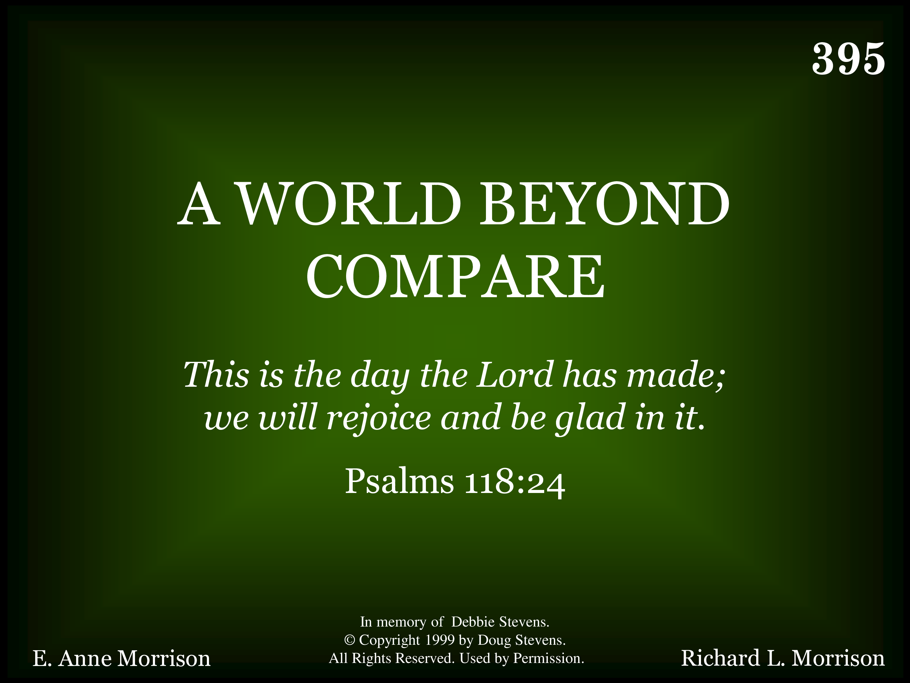 | Title | A WORLD BEYOND COMPARE |