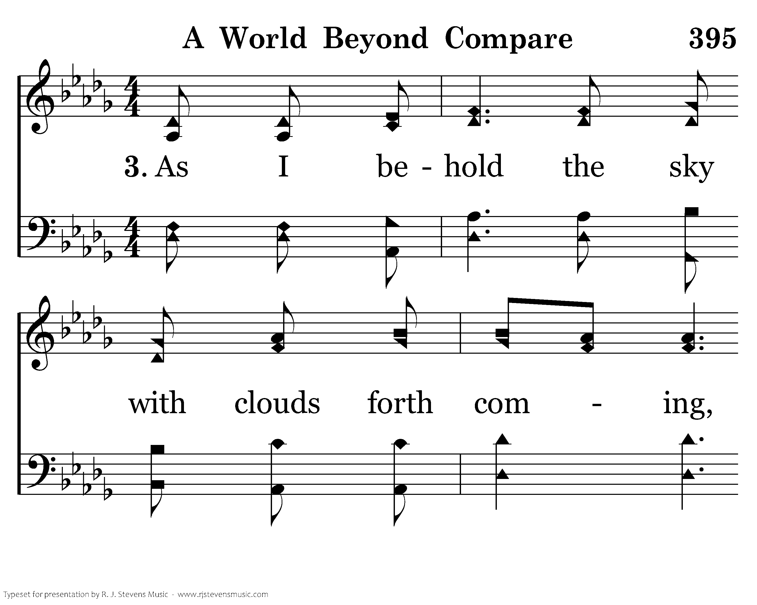 As I behold the sky with clouds forth coming, I know that storms may fill my life with tears. I hear the promise made to all the faithful, And know that soon a rainbow will appear.