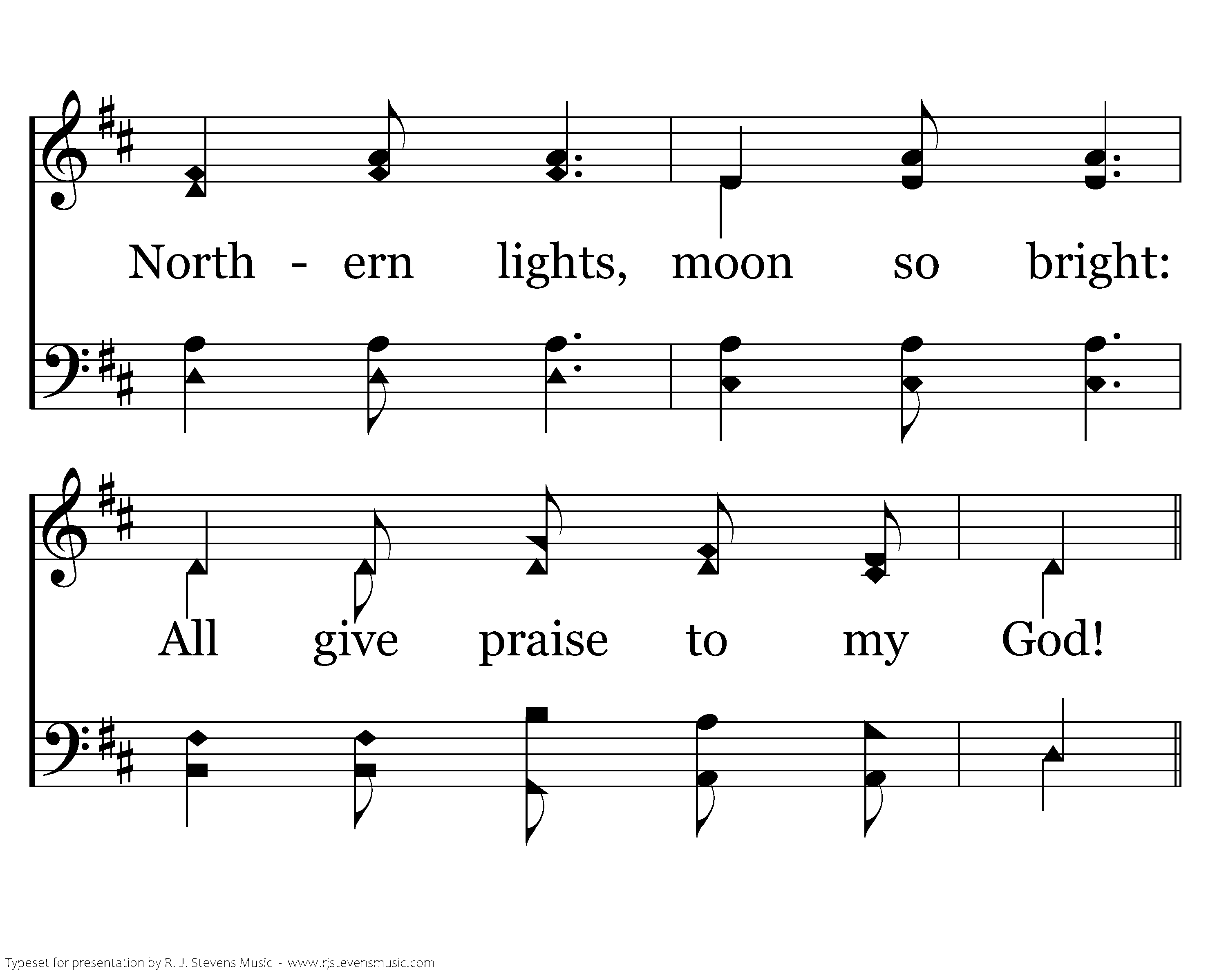 Light of day, Milky Way, Heaven's glory and honor, Northern lights, moon so bright: All give paise to my God!