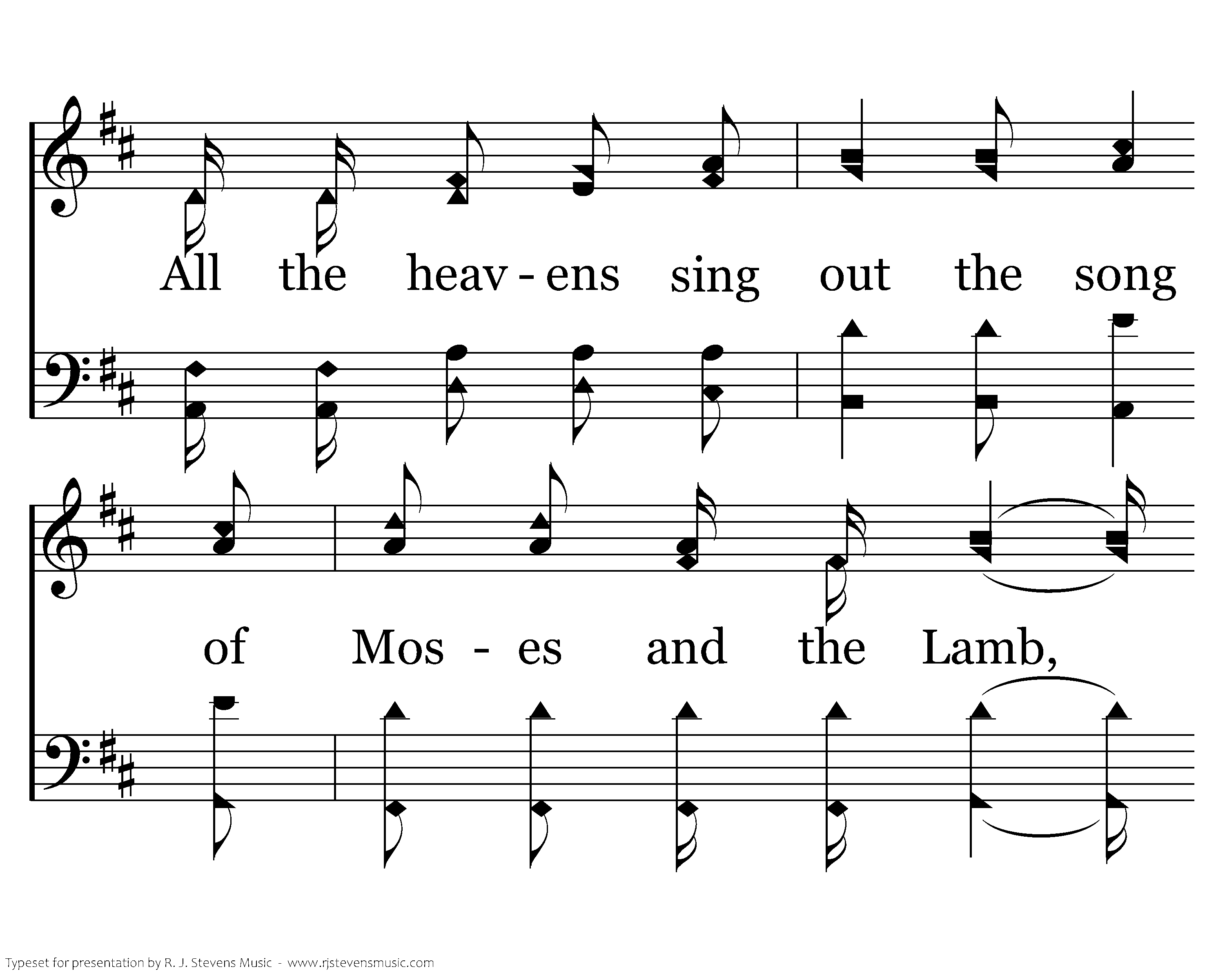 And the angels sing praise to the Lord, And the angels give thanks to the Lord, All the heavens sing out the song of Moses and the Lamb, the Alpha and Omega, I AM!