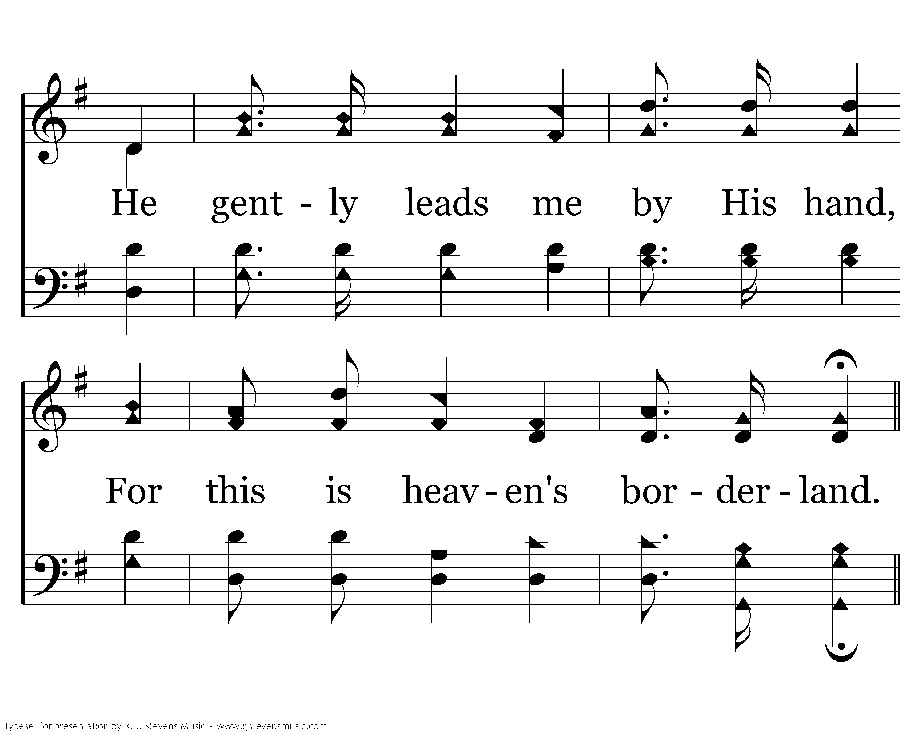 My Savior comes and walks with me, And sweet communion here have we; He gently leads me by His hand, for this is heaven's borderland.