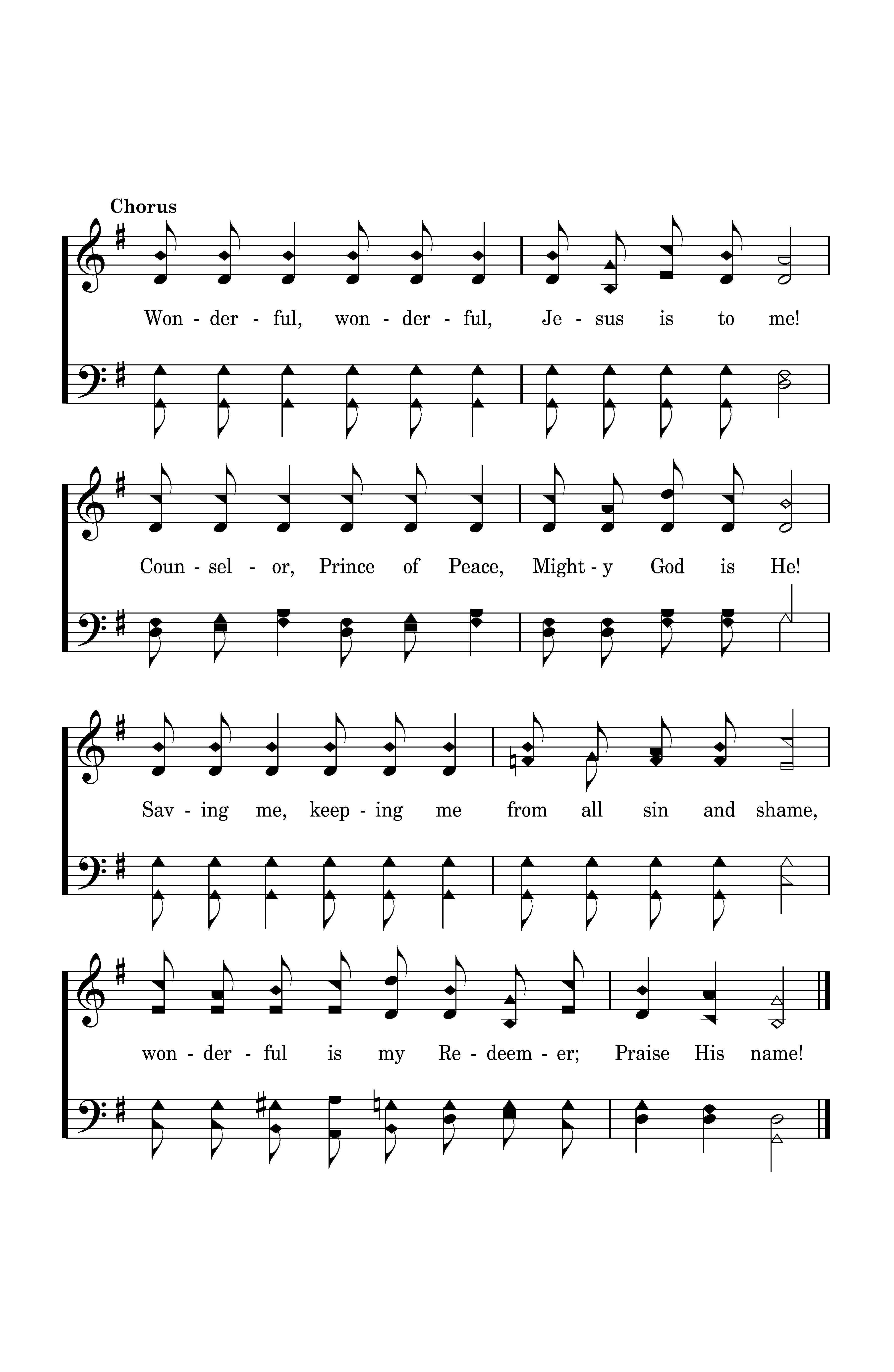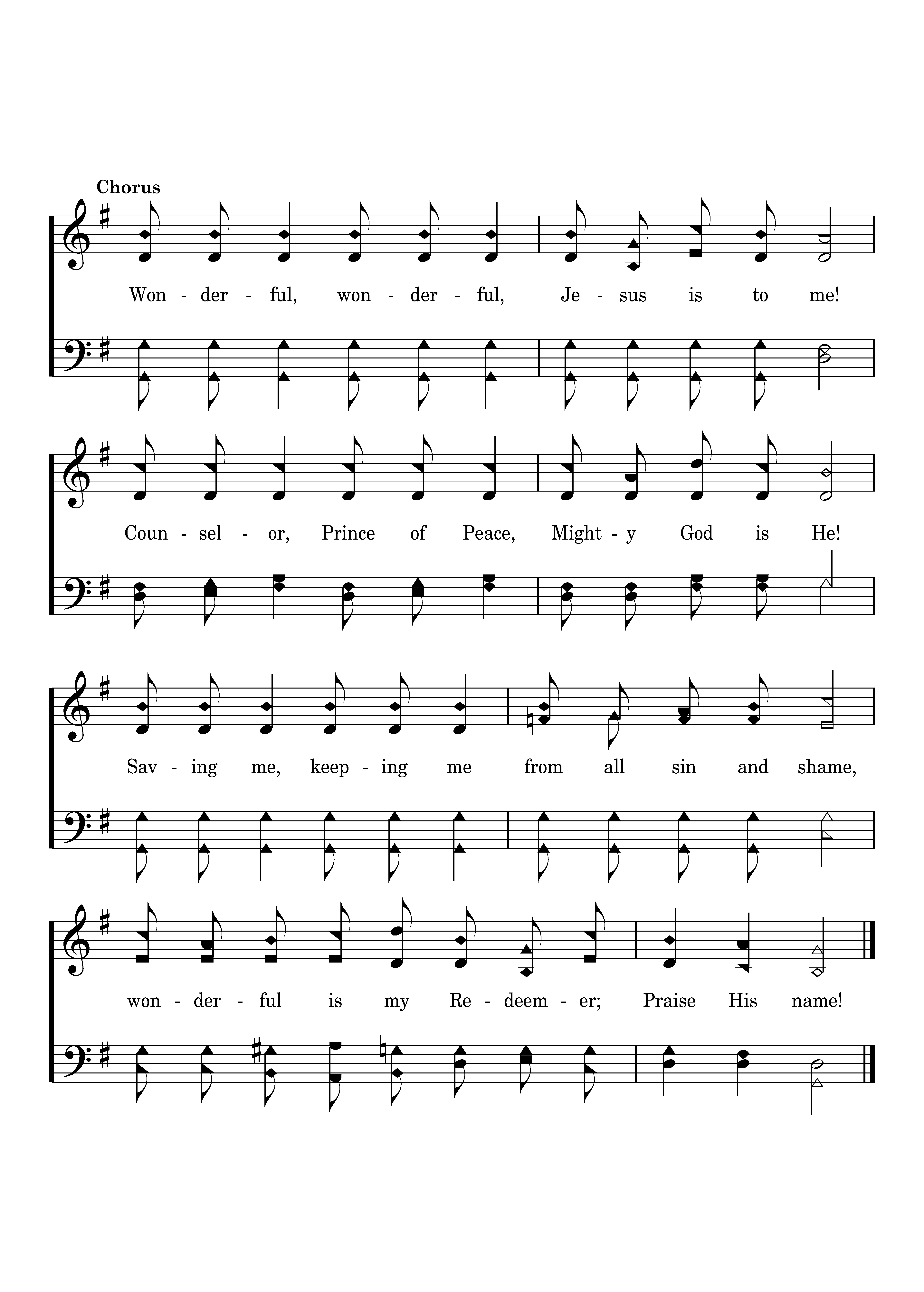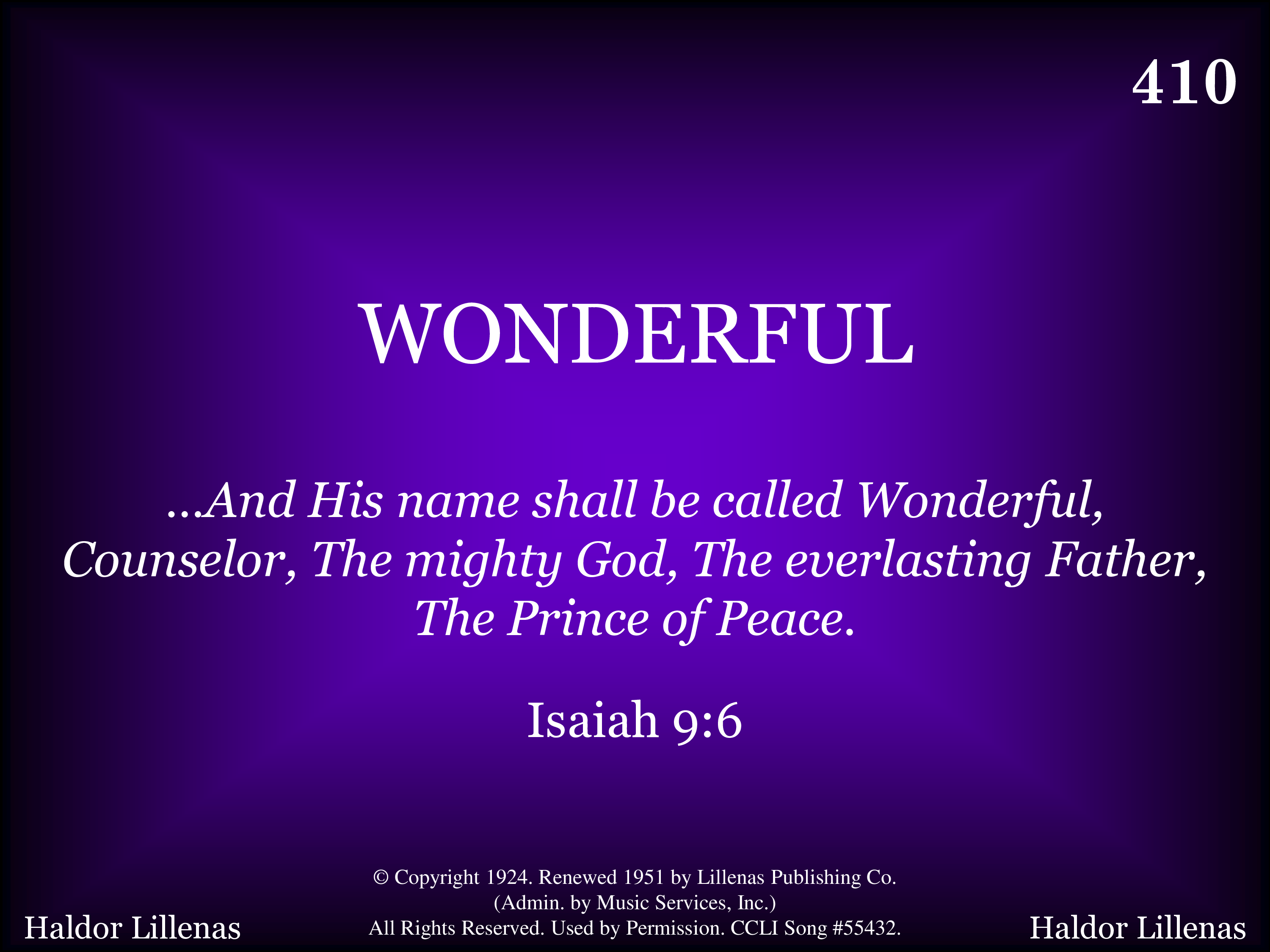 Wonderful, Jesus to me! Counselor, Prince of Peace, Mighty God is He, Saving me keeping me from all sin and shame.