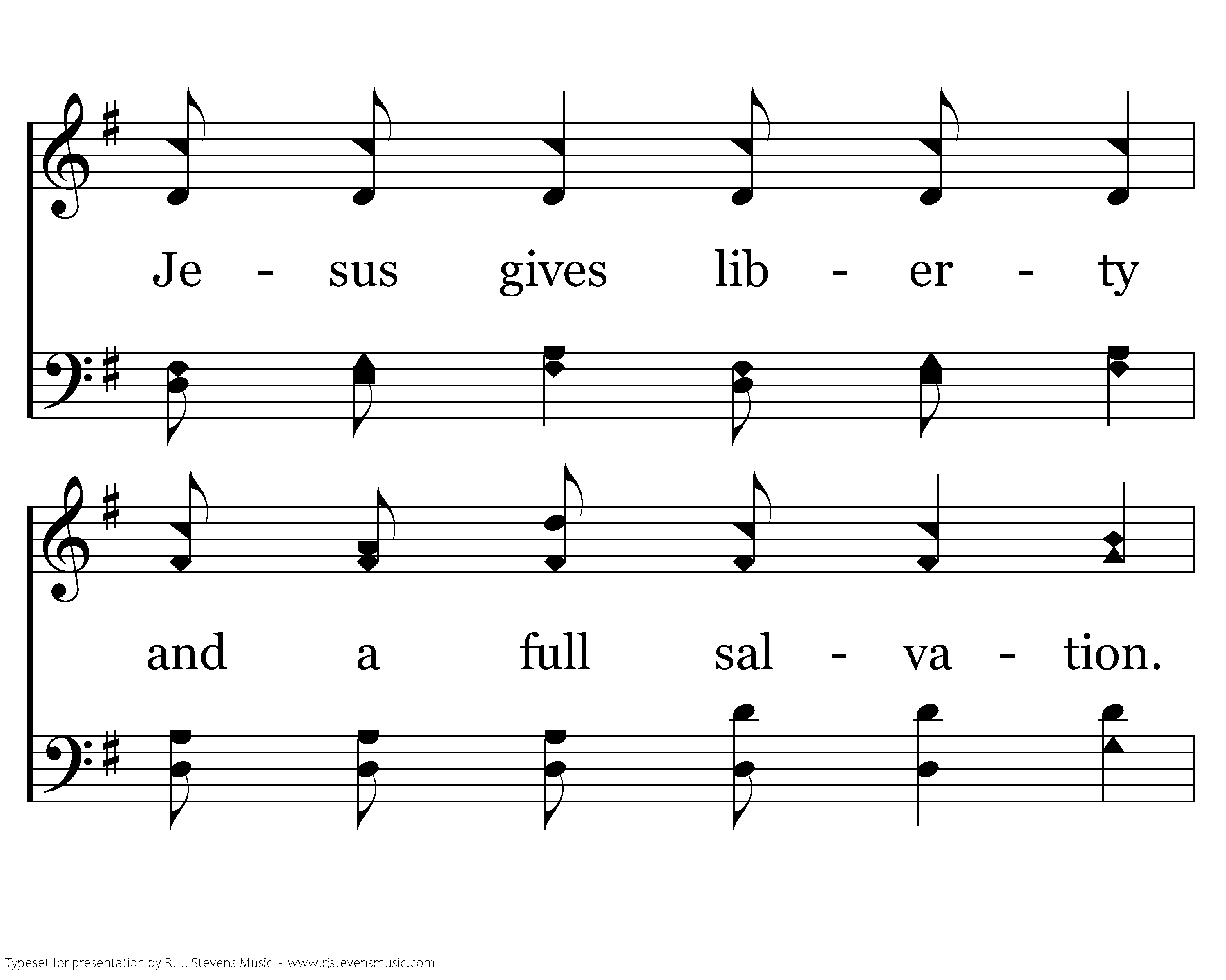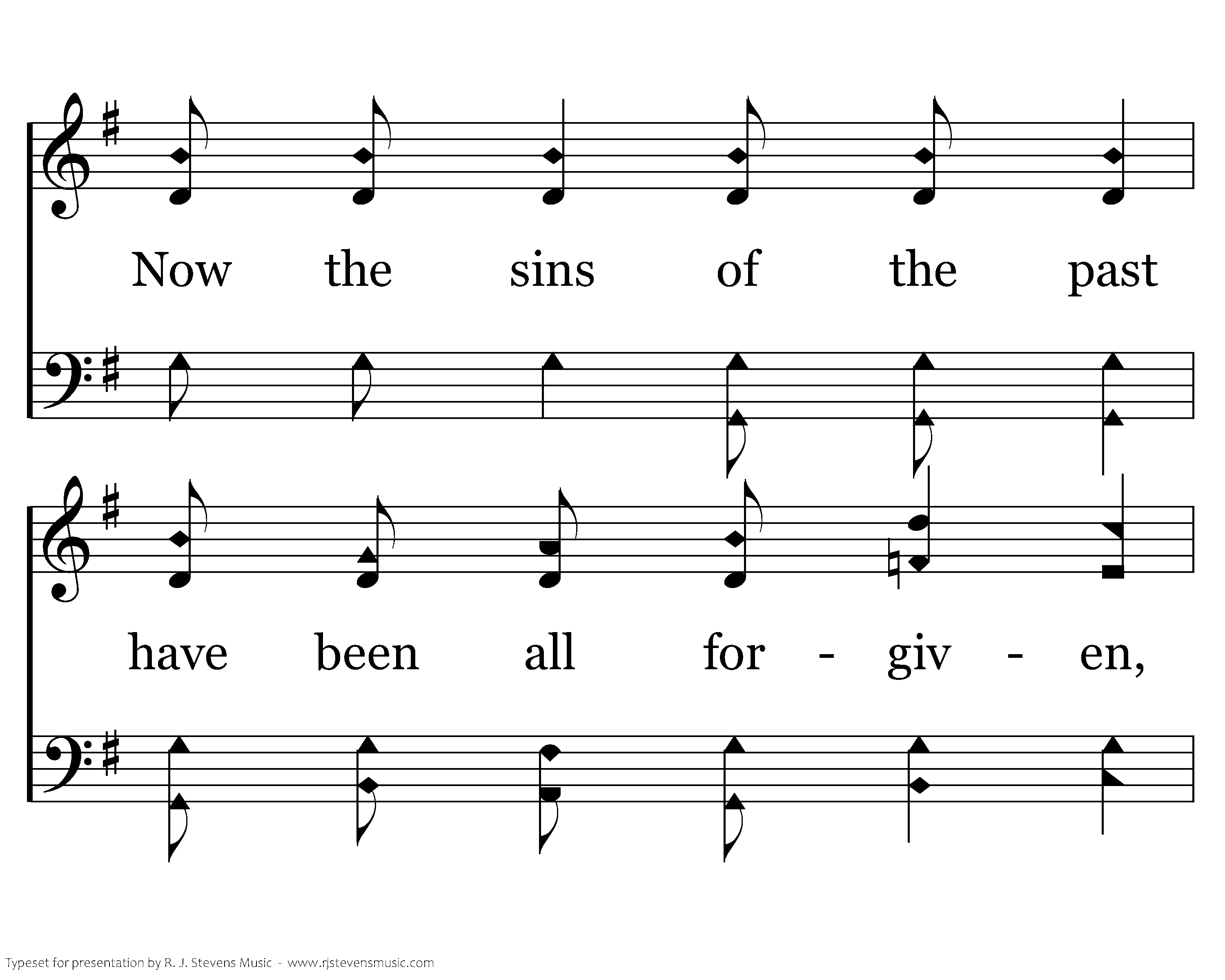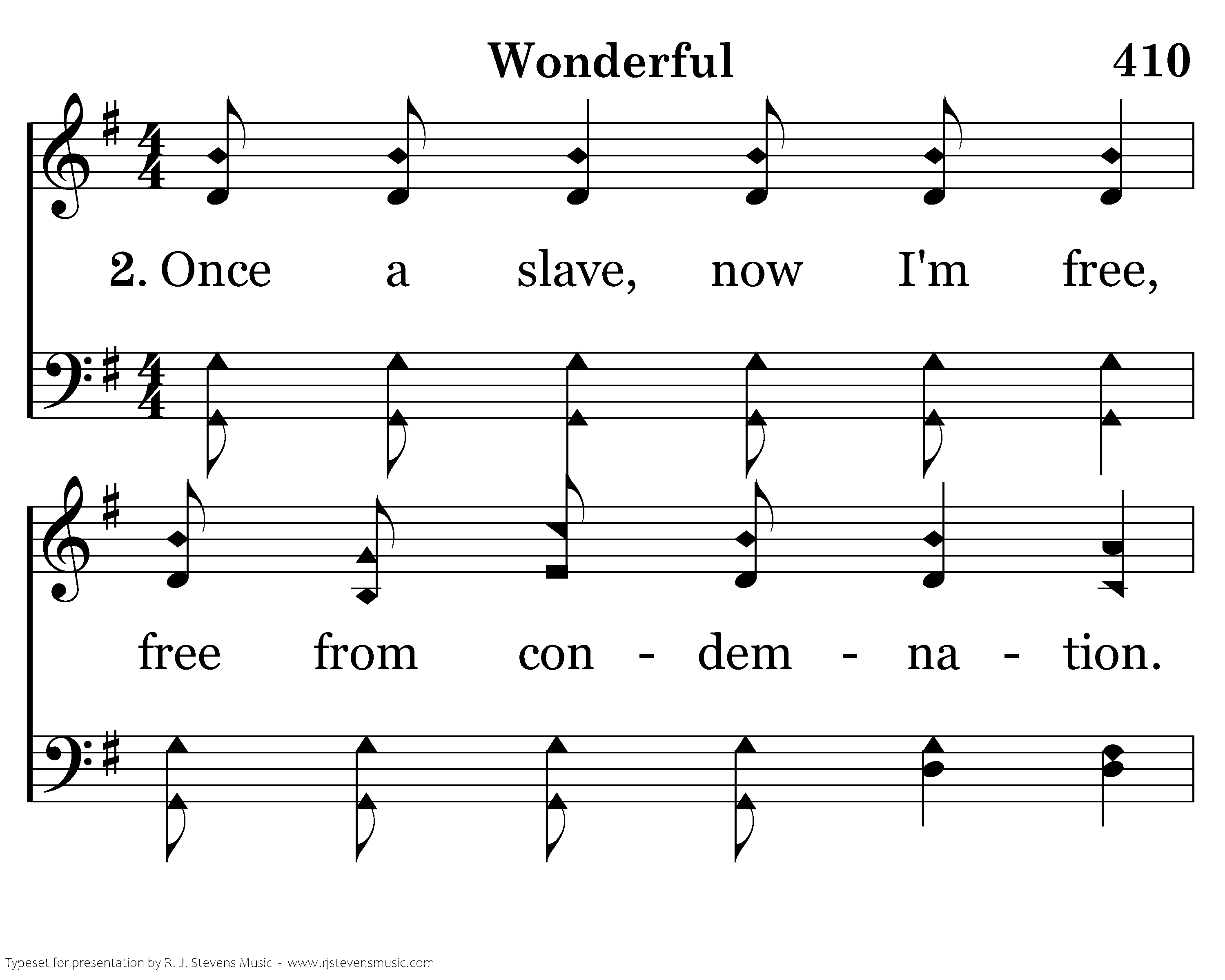 Once a slave, now I'm free, free from condemnation. Jesus gives liberty and a full salvation. Now the sins of the past have been all forgiven, and my name is inscribed in the book of heaven.
