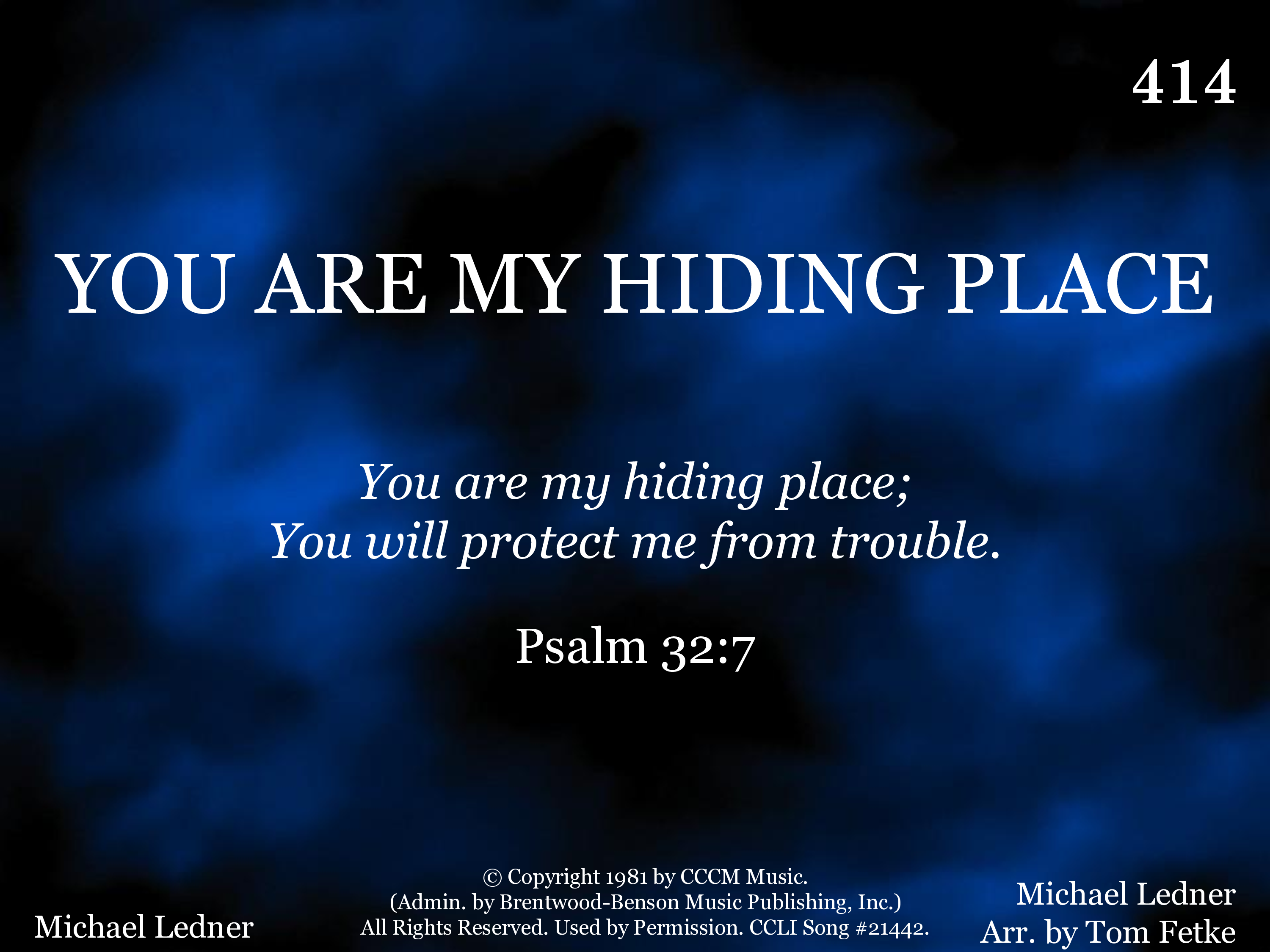 | Title | YOU ARE MY HIDING PLACE |