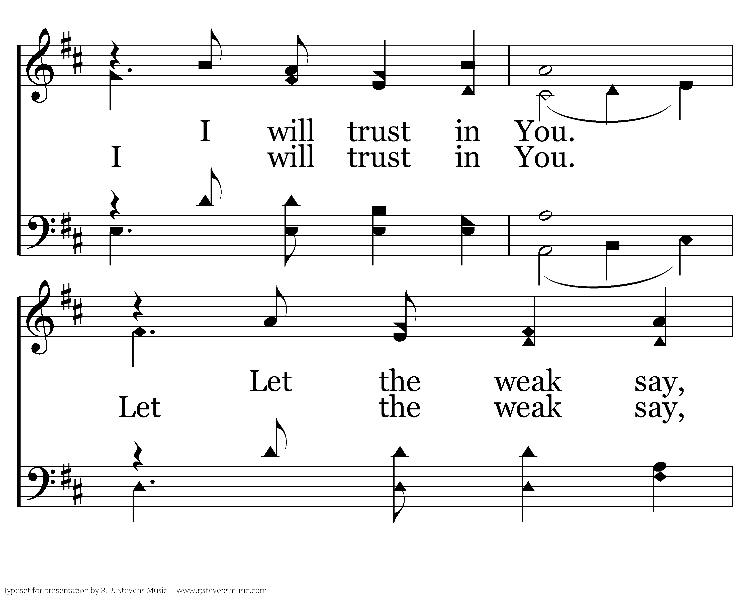 You are my hiding place, You always fill my heart with songs of deliverance; When ever I am afraid, I will trust in You. I will trust in You. Let the weak say, "I am strong in the strength of the Lord!"