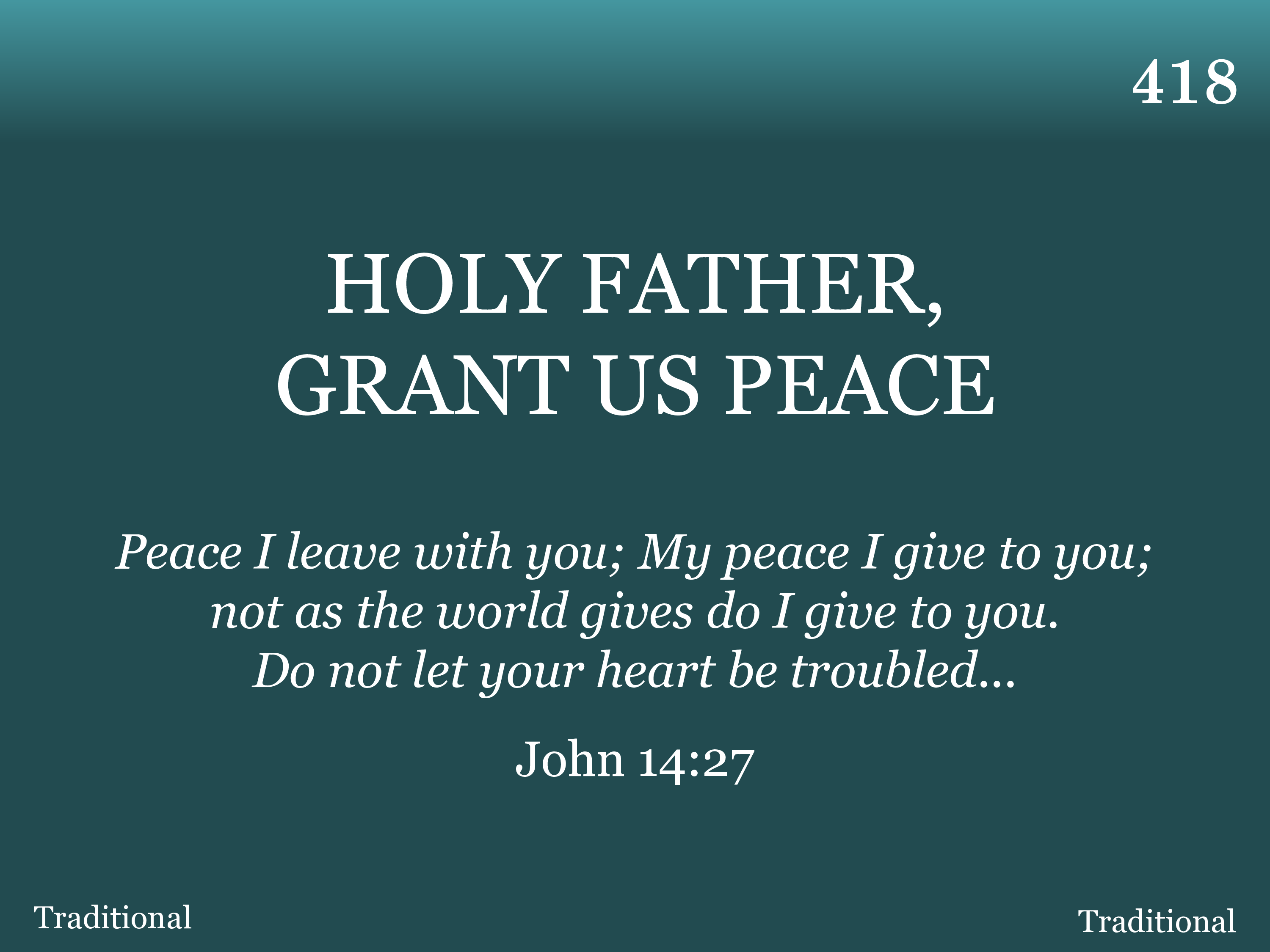 Holy Father, grant us peace; Holy Father, grant us peace.