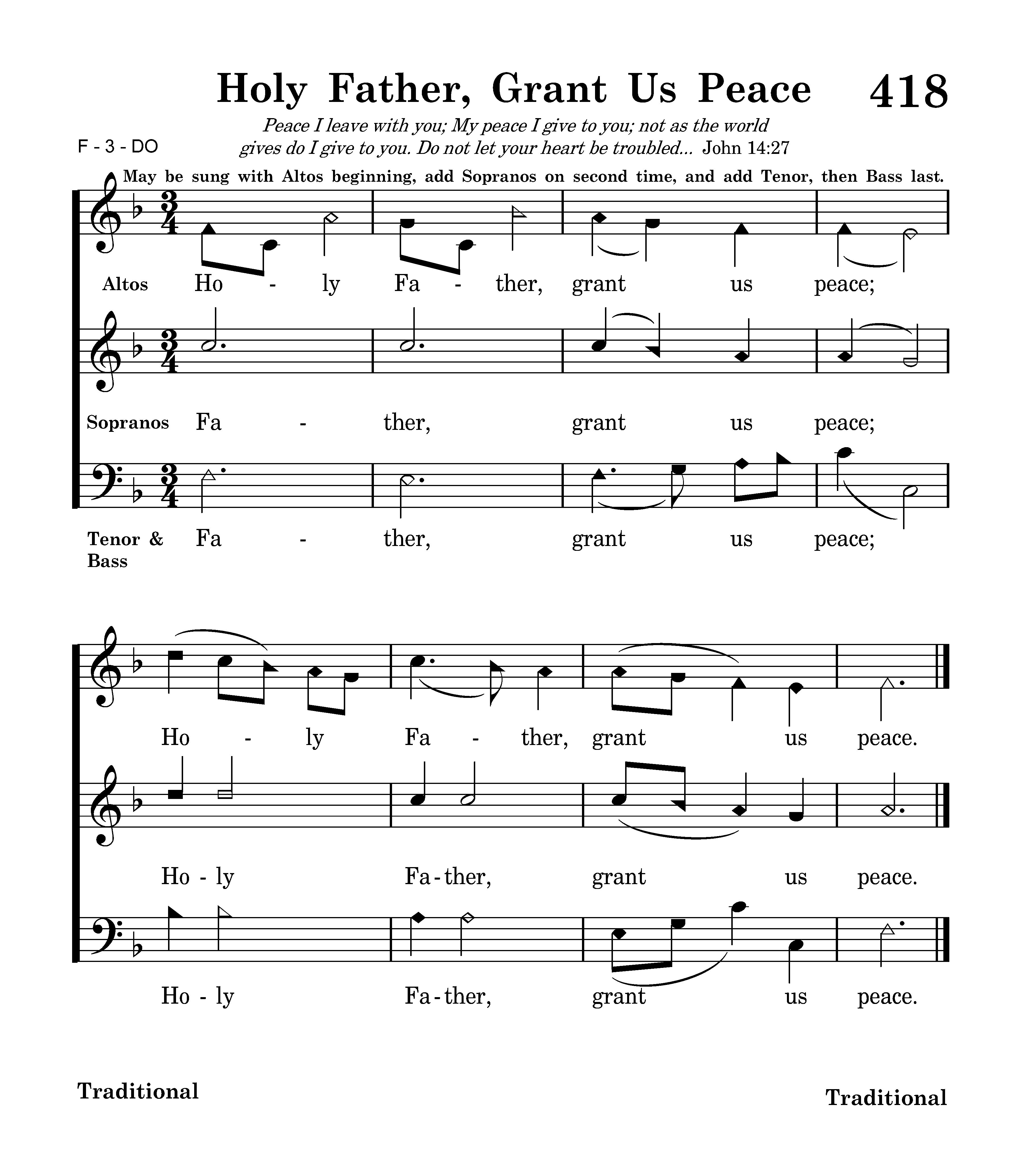 | Key | Value | | Title | HOLY FATHER, GRANT US PEACE |