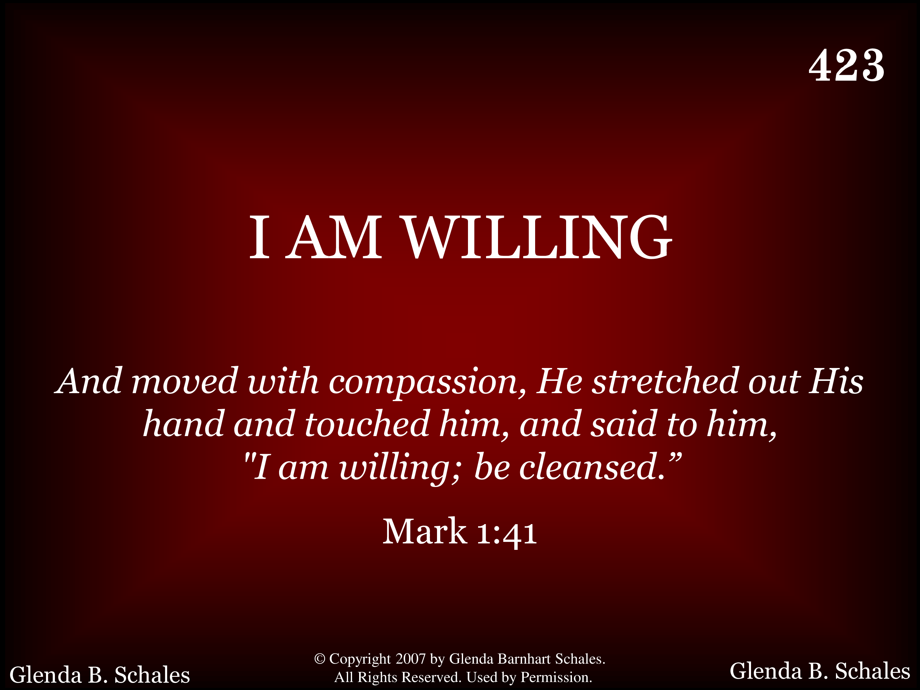 - Copyright © 2007 by Glenda Barnhart Schales. All Rights Reserved. Used by Permission.