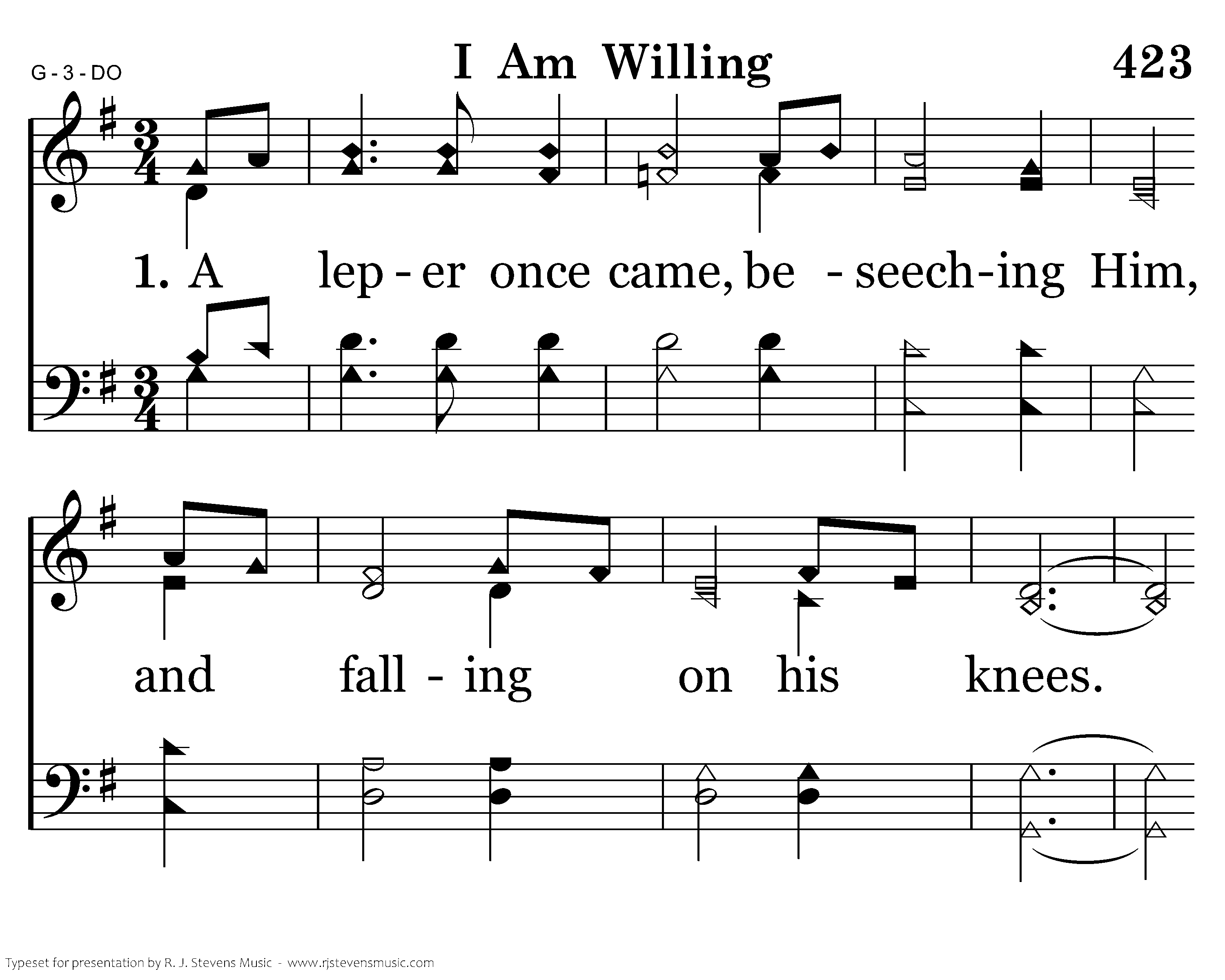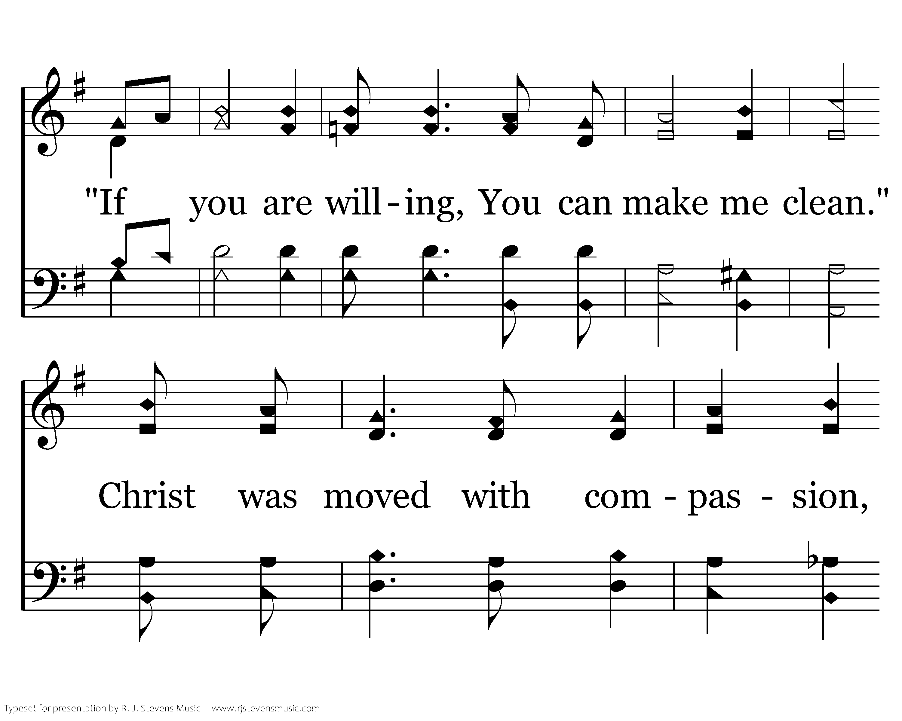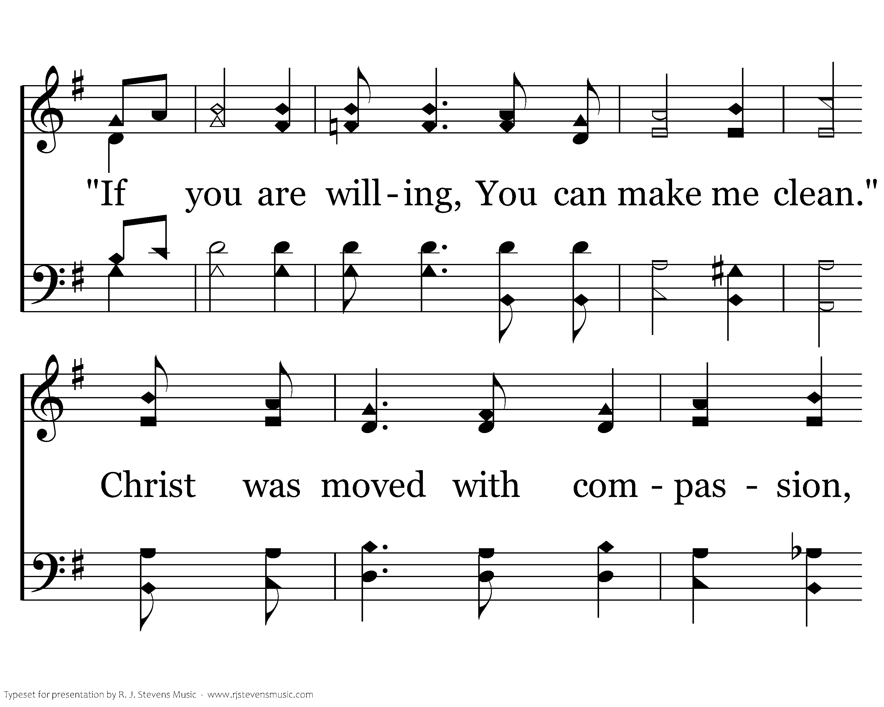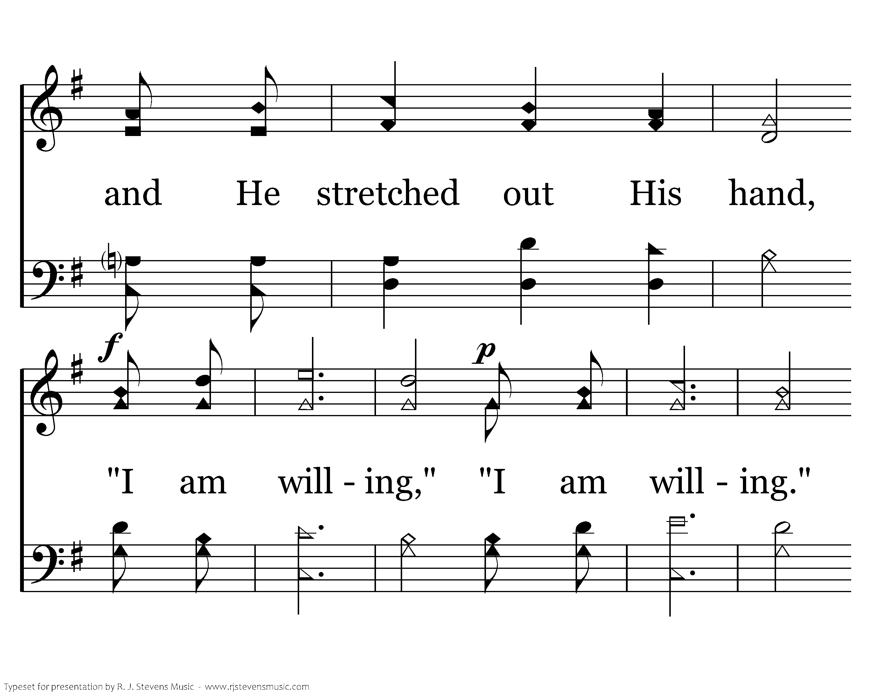 A leper once came, beseeching Him, and falling on his knees. "If you are willing, You can make me clean." Christ was moved with compassion, He stretched out His hand, "I am willing," "I am willing." He stretched out His hand cleansing him.