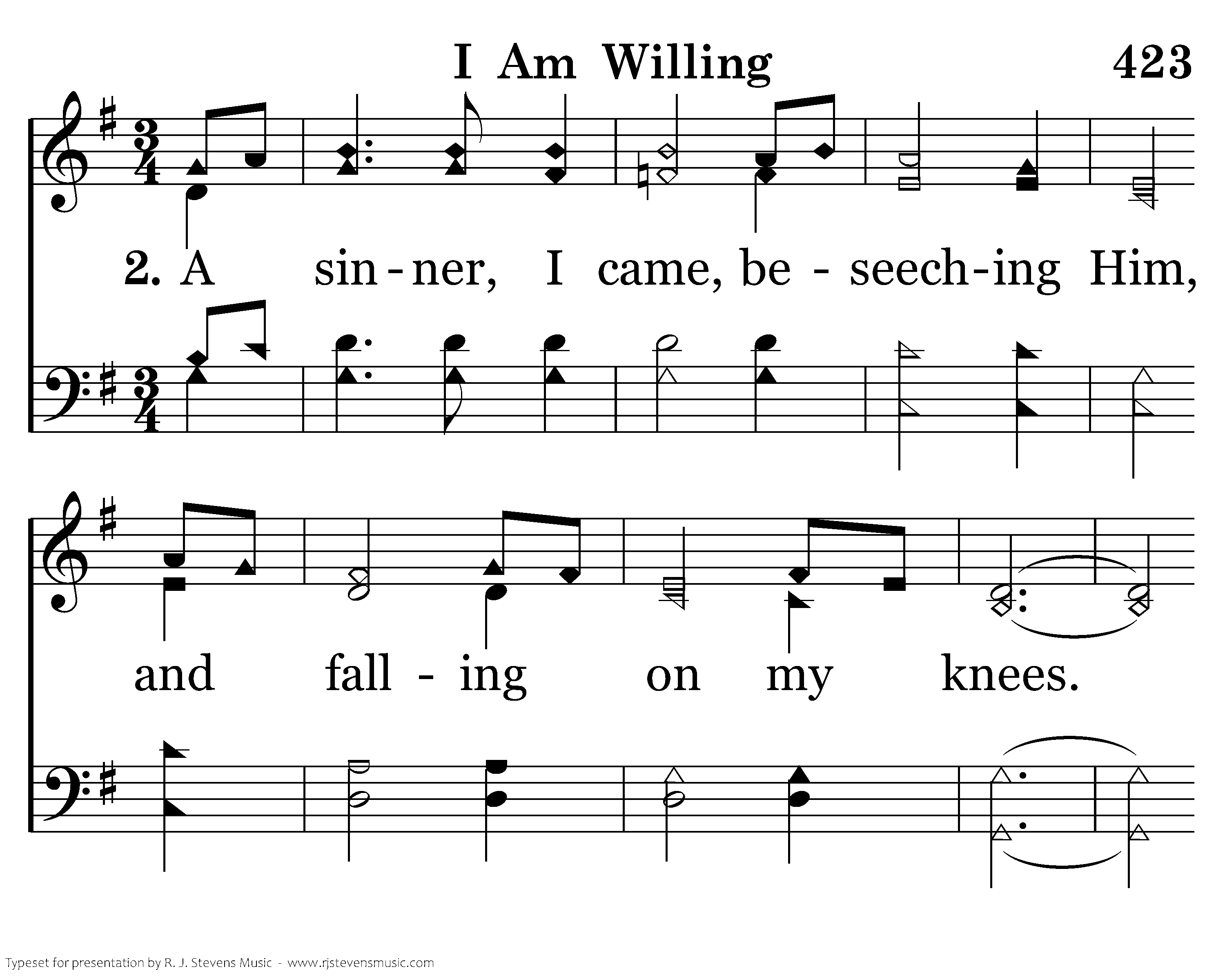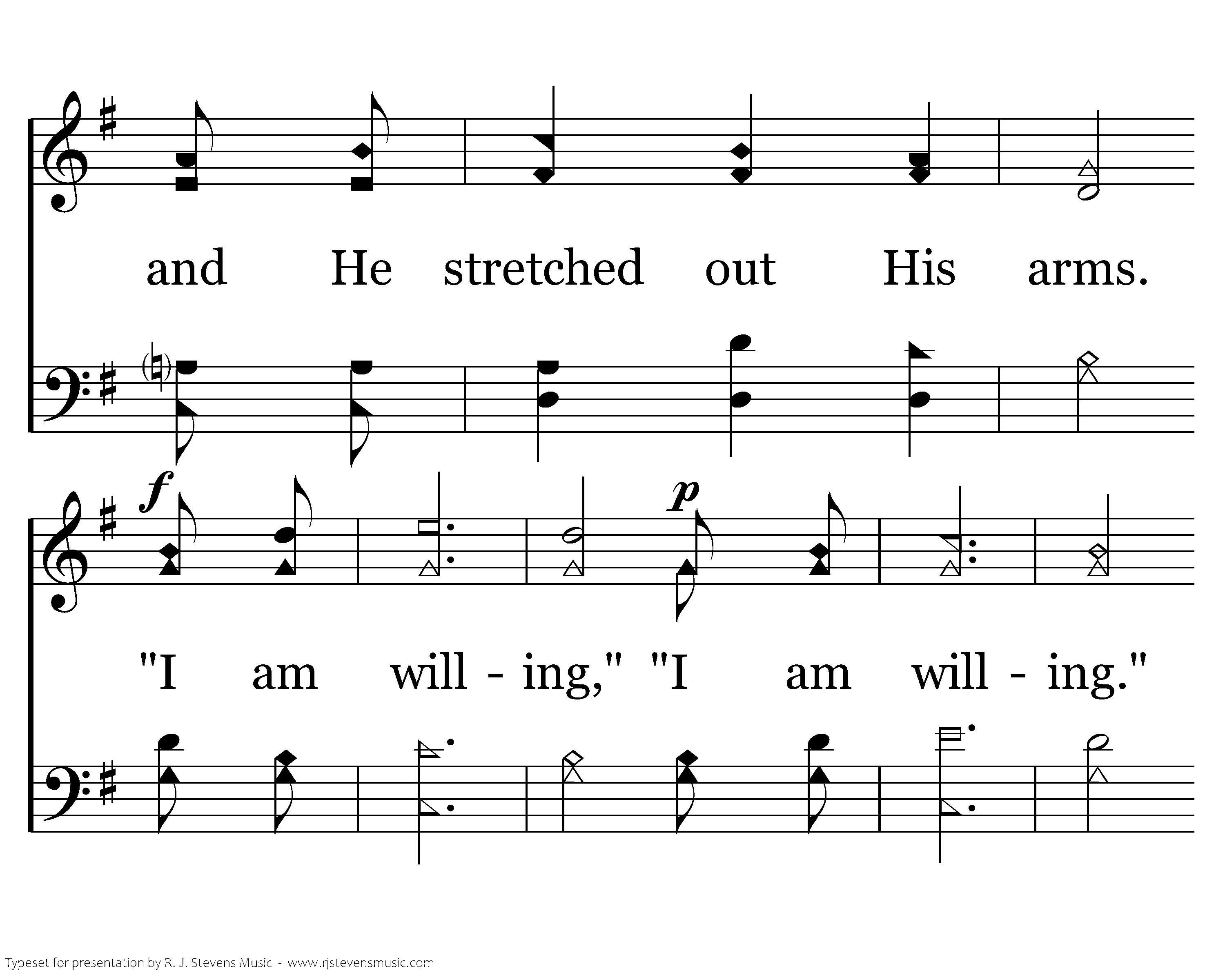 A sinner, I came, beseeching Him, and falling on my knees. "If you are willing, You can make me clean." Christ was moved with compassion, He stretched out His arms. "I am willing," "I am willing." He stretched out His arms and He died.