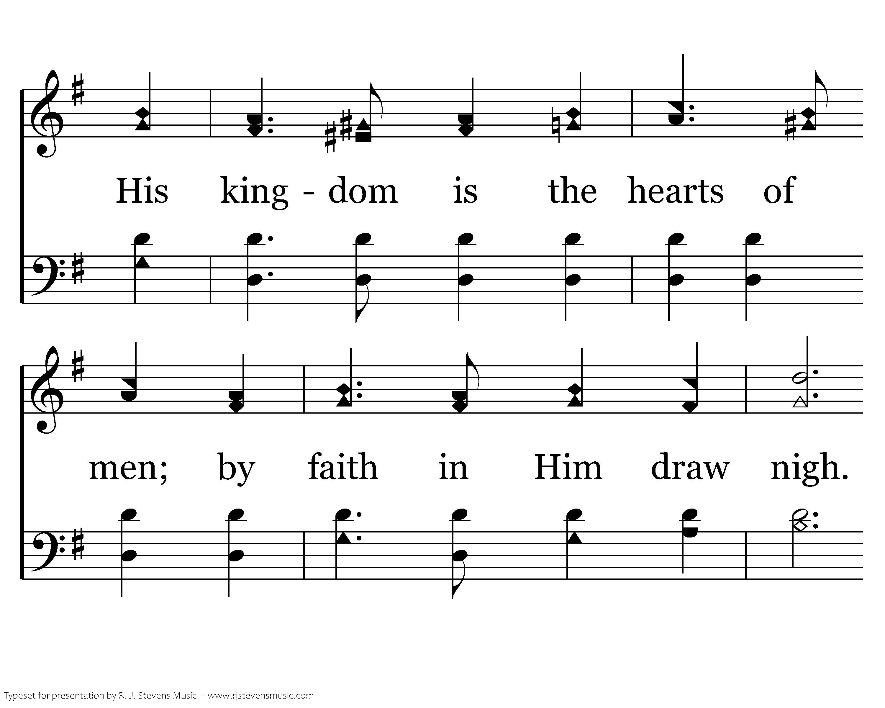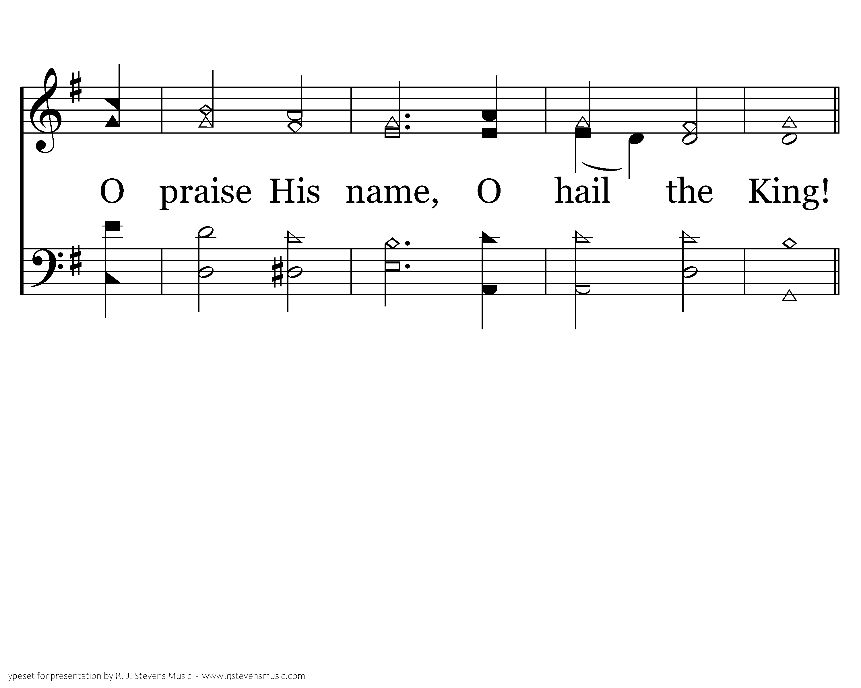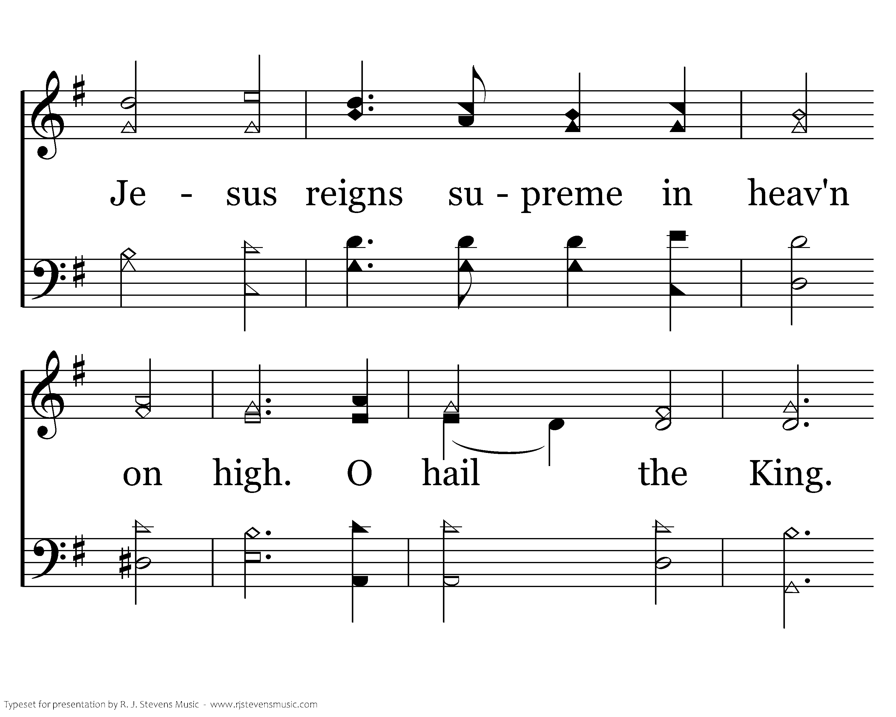 Hail the King of Glory! Hail the King of Glory! Jesus reigns supreme in heav'n on high. O hail the King! His kingdom is the hearts of men, by faith in Him draw nigh. O praise His name! O hail the King!