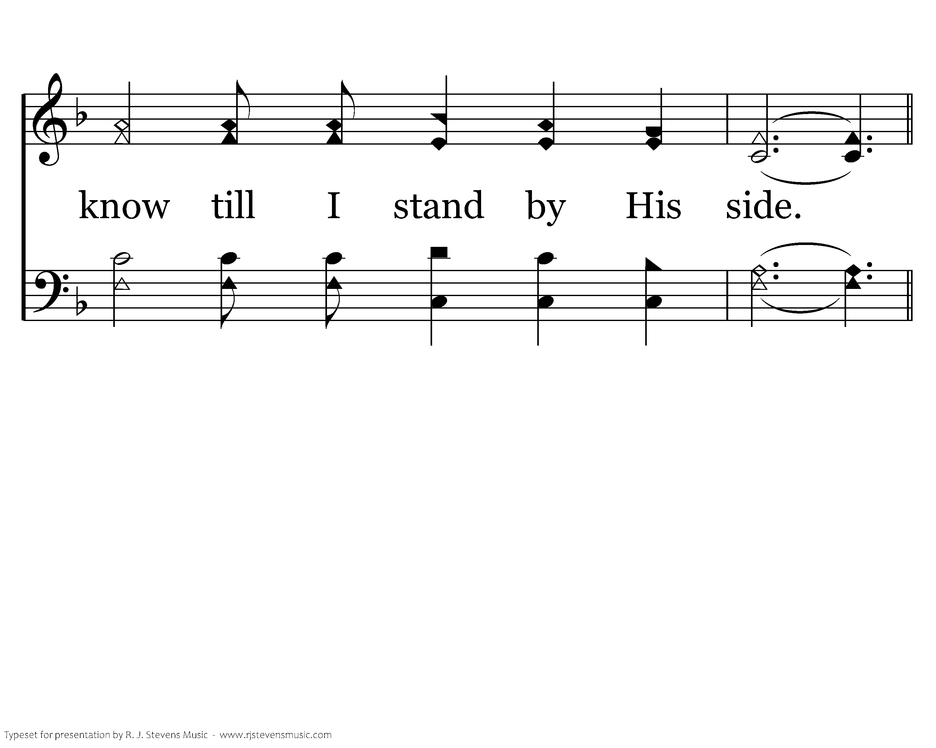 How sharp were the thorns when they crowned Him? How crushed was His heart when denied? How bruised was His back by the lashes? I'll never know till I stand by His side.