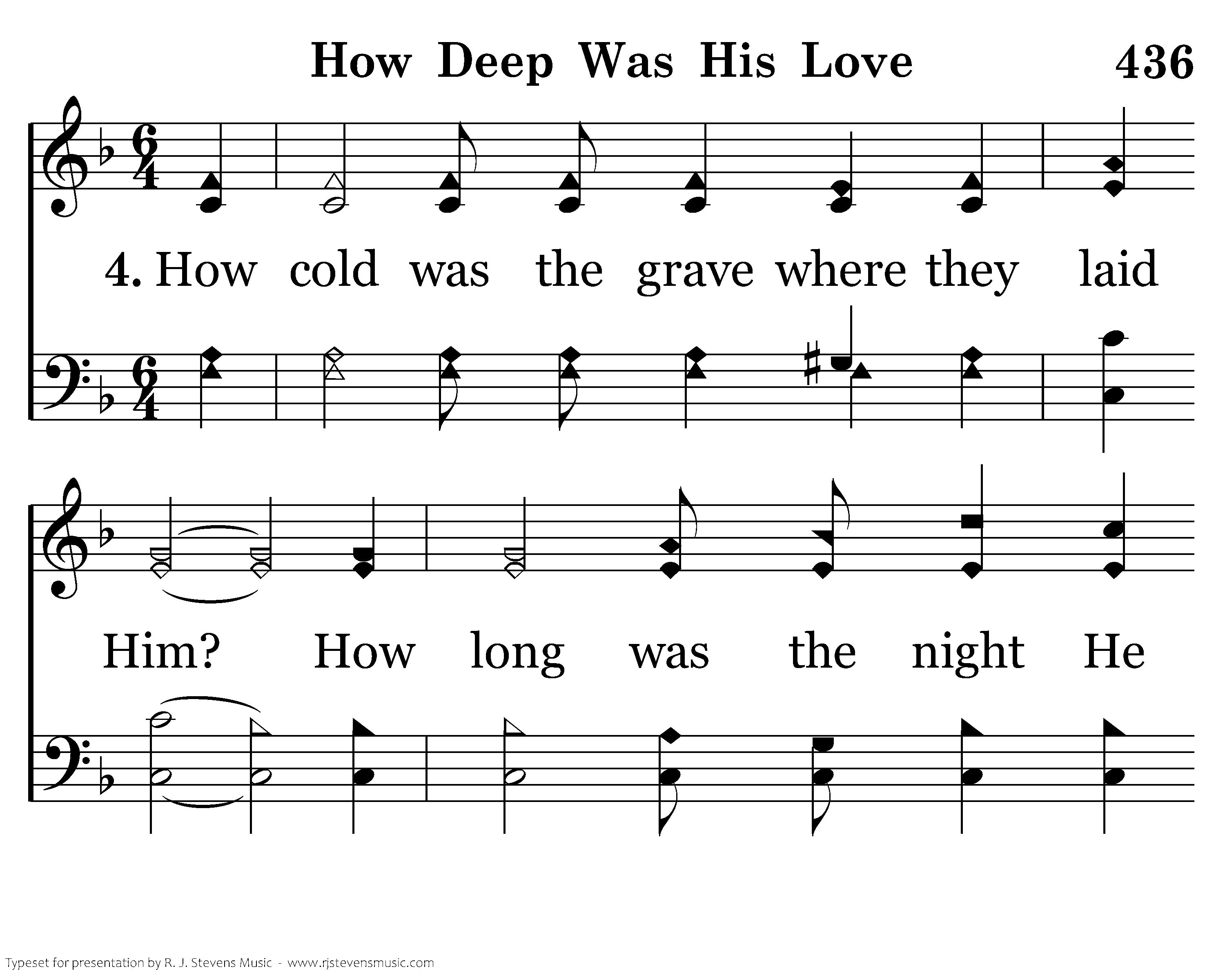 How cold was the grave where they laid Him? How long was the night He passed thru? How much did He pay to redeem me? I'll never know but I know that it's true.