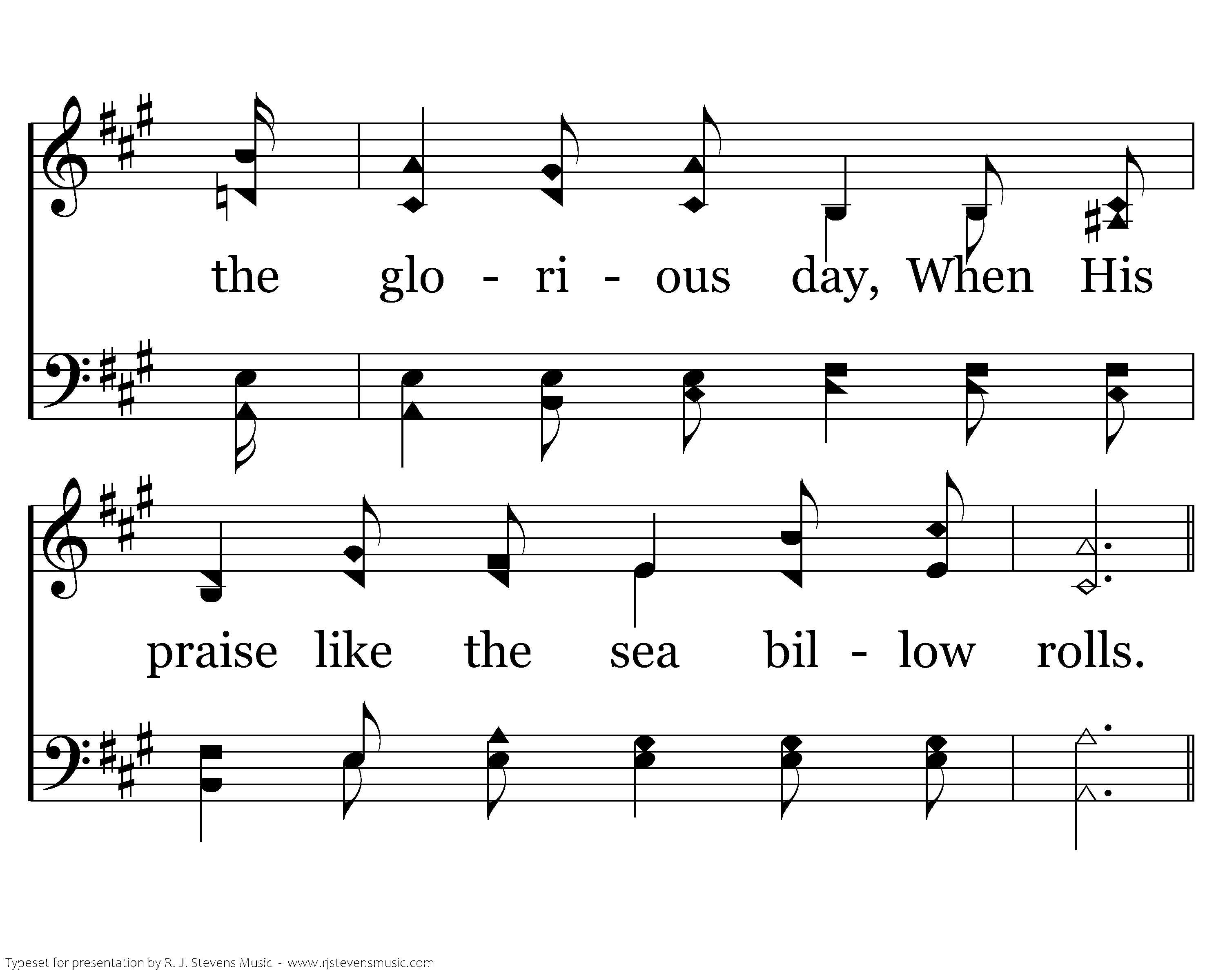 In the strength of the Lord let me labor and pray, Let me watch as a winner of souls, That bright stars may be mine in the glorious day, When His praise like the sea billow rolls.
