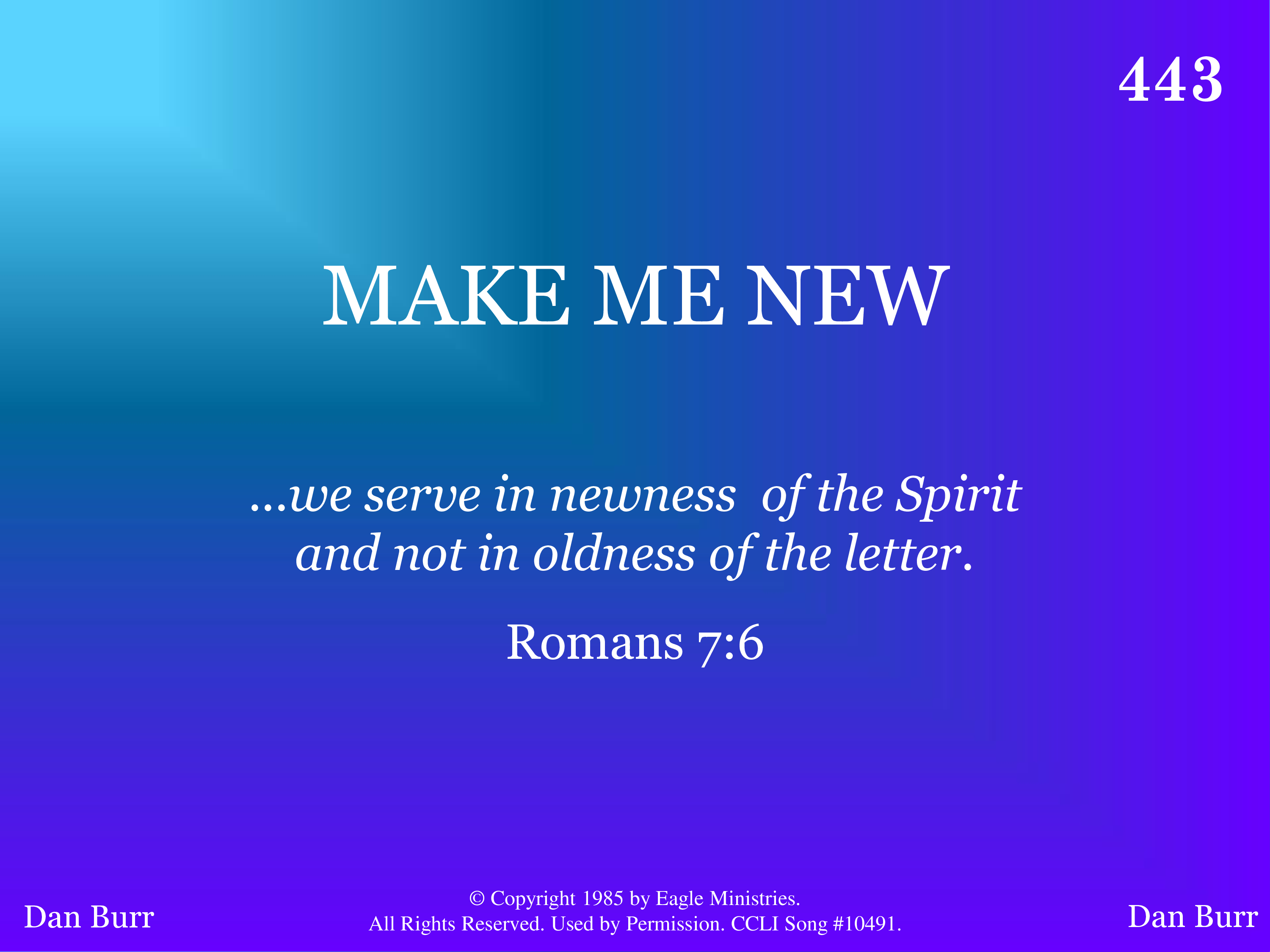 - Copyright © 1985 by Eagle Ministries. (Admin. by Eagle Ministries.) All Rights Reserved. Used by Permission.