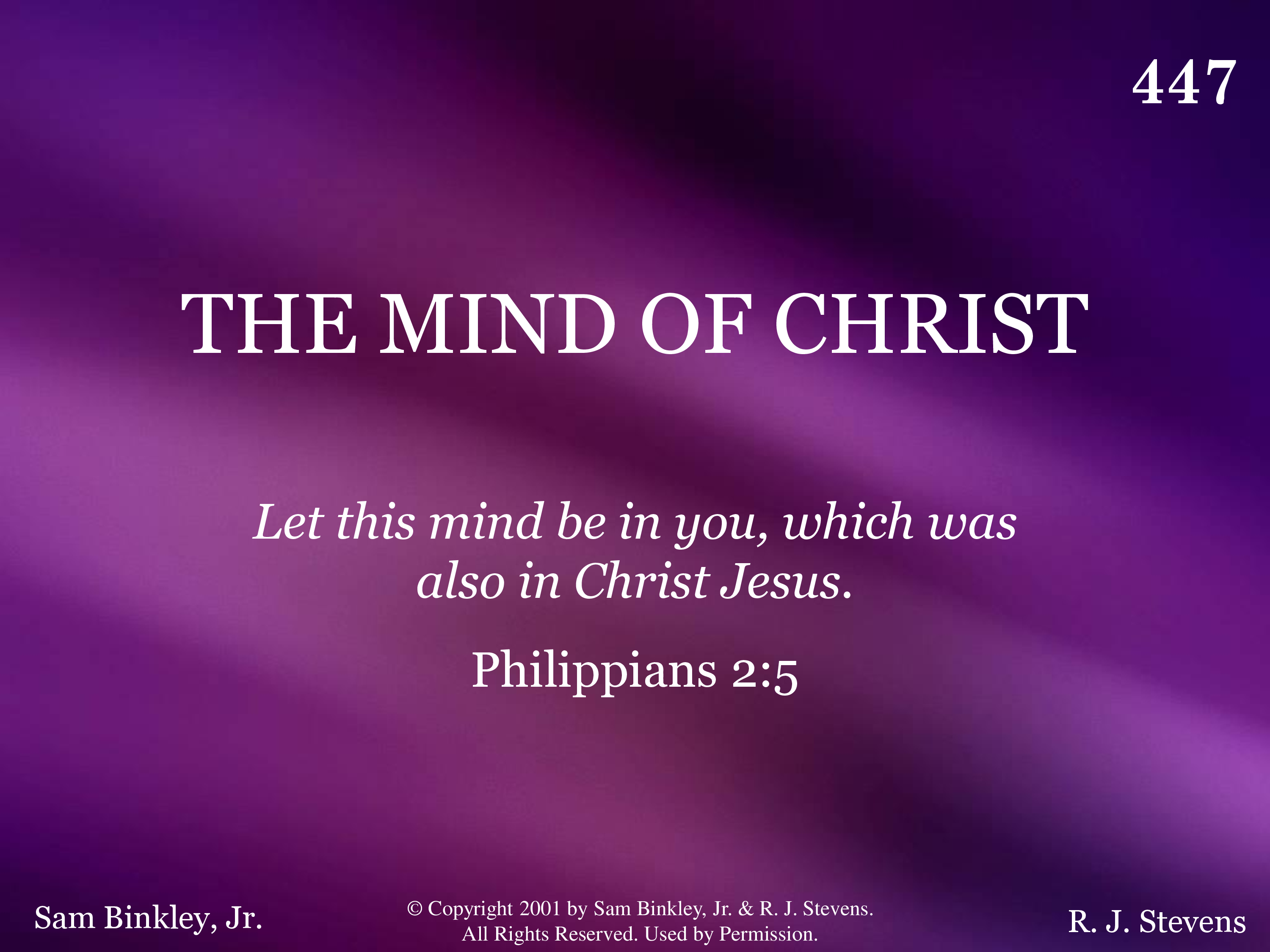 - Copyright © 2001 by Sam Binkley, Jr. & R. J. Stevens. All Rights Reserved. Used by Permission.