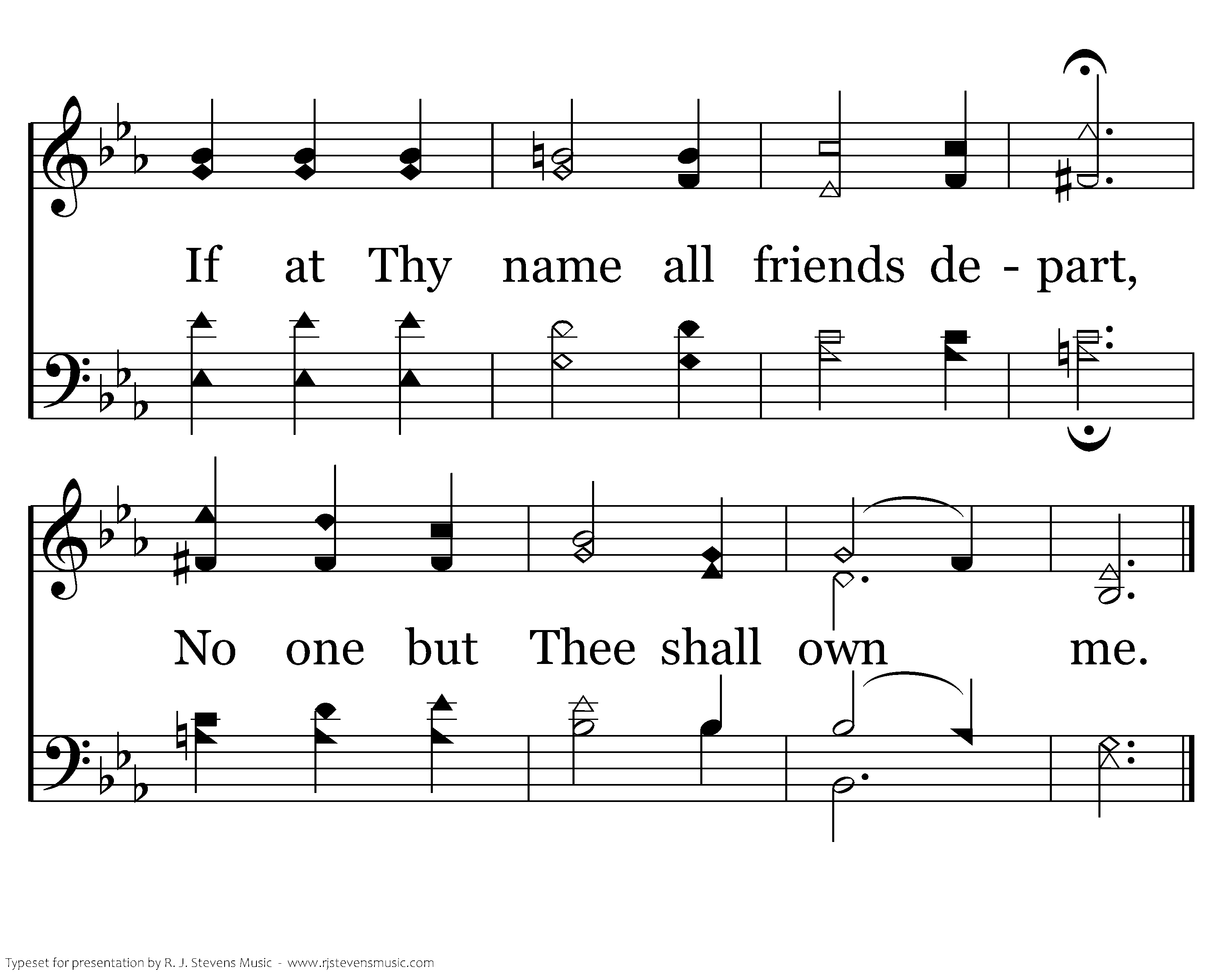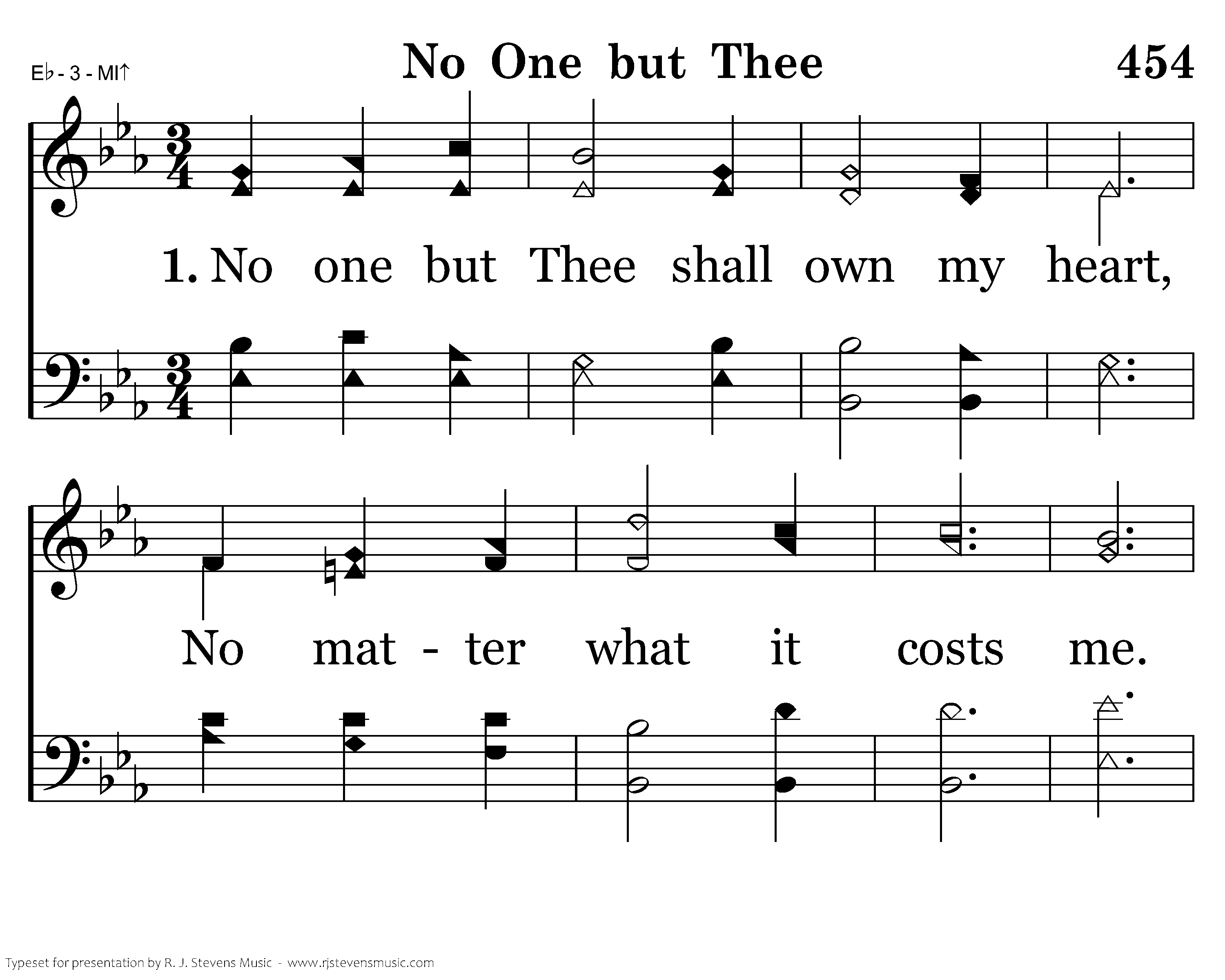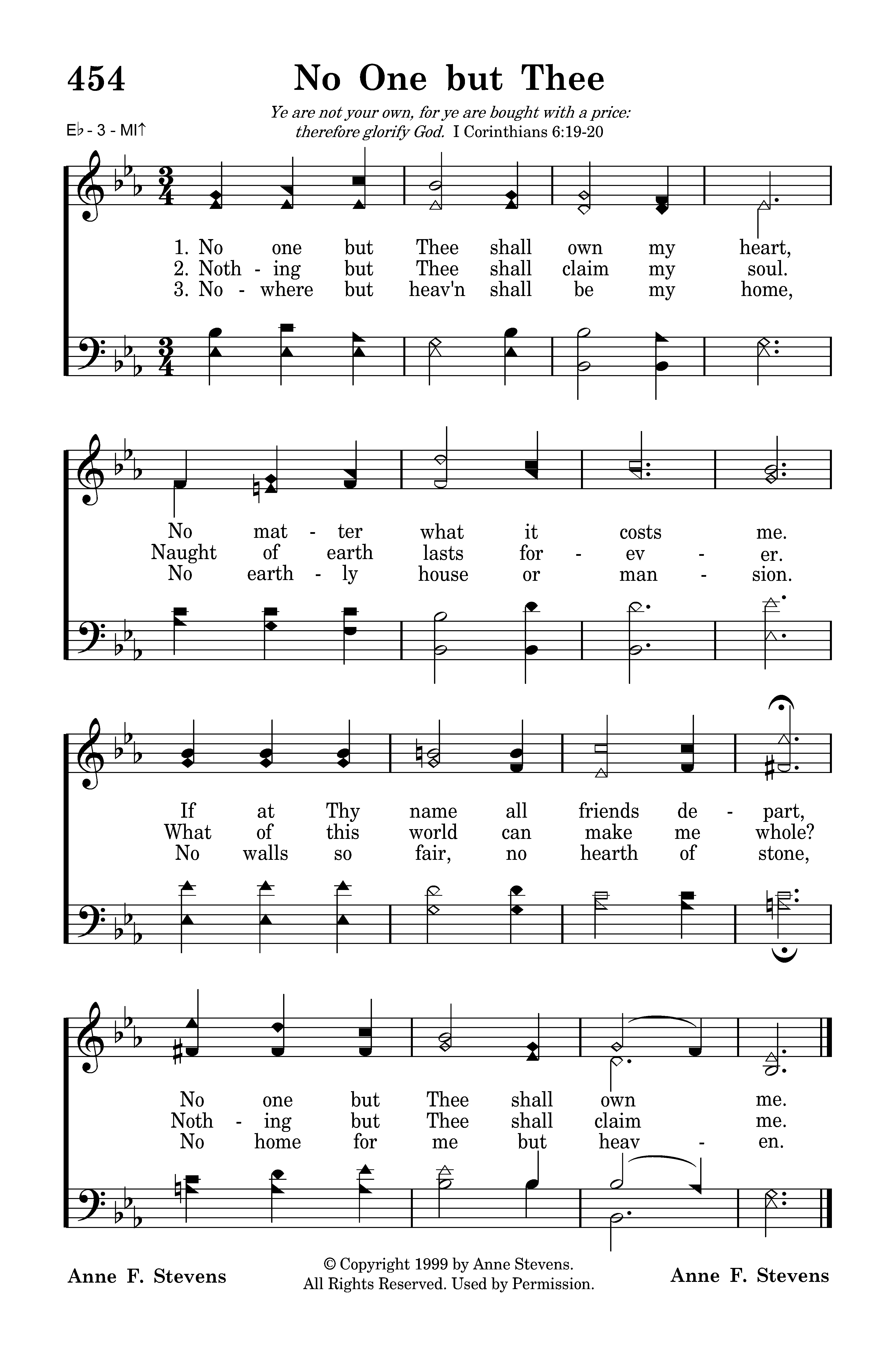 No one but thee shall own my heart, No matter what it costs me. If at Thy name all friends depart, No one but Thee shall own me.