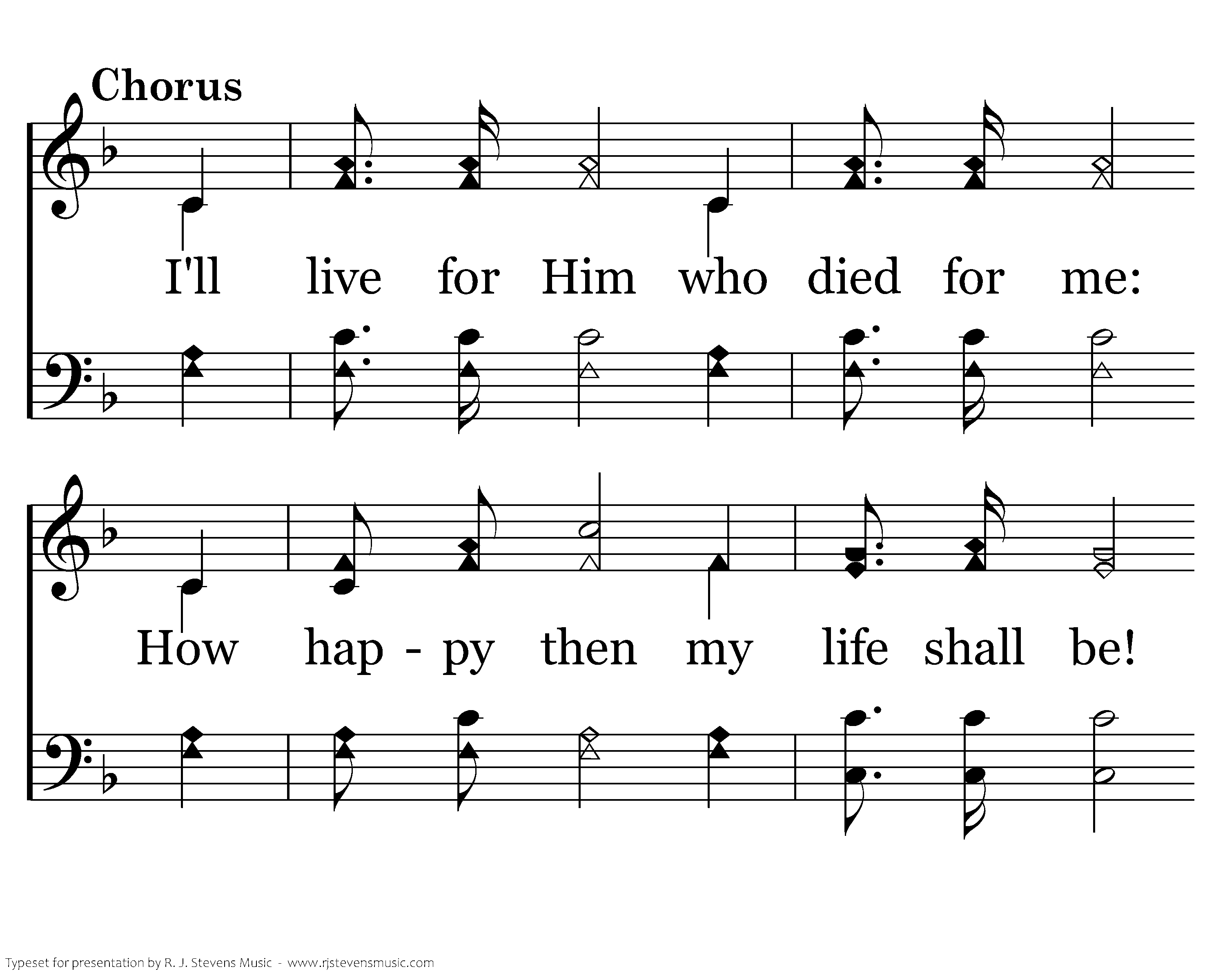 I'll live for Him who died for me: How happy then my life shall be! I'll live for Him who died for me, My Savior and my God!