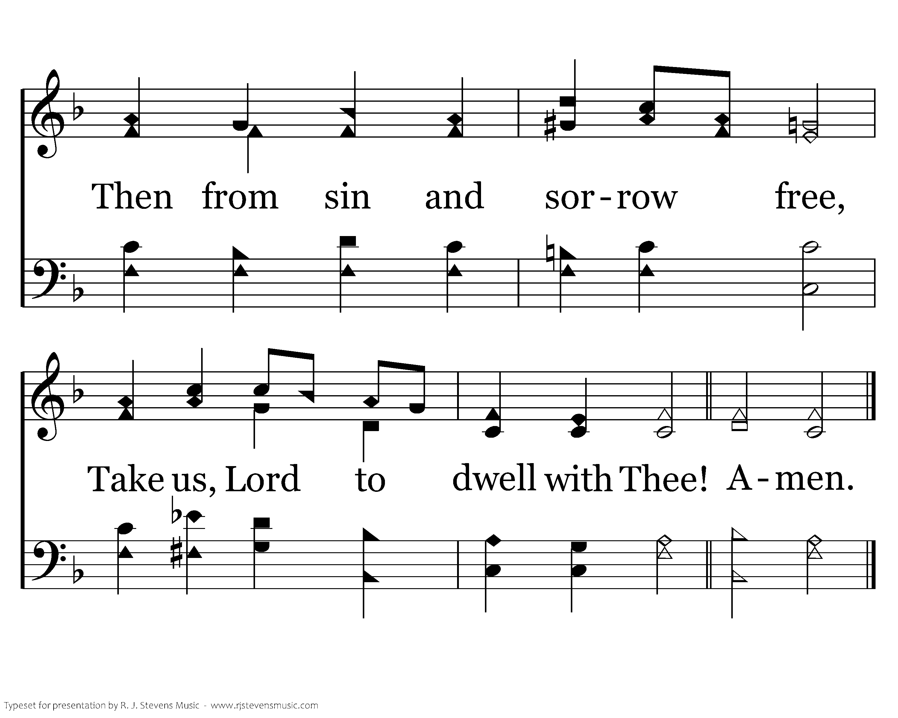 Soon for us the light of day Shall forever pass away; Then from sin and sorrow free, Take us, Lord to dwell with Thee!