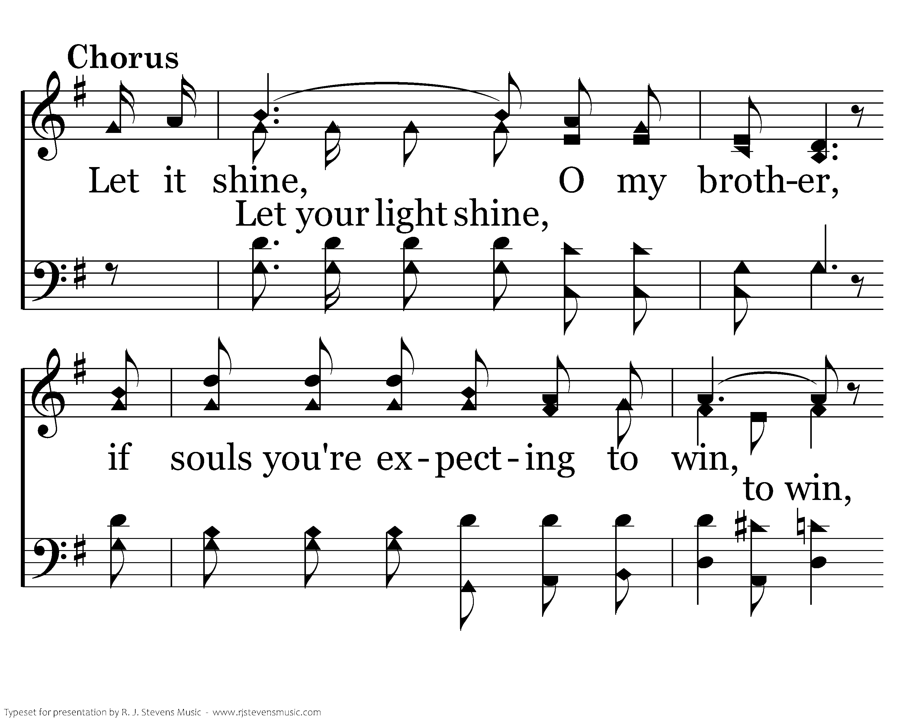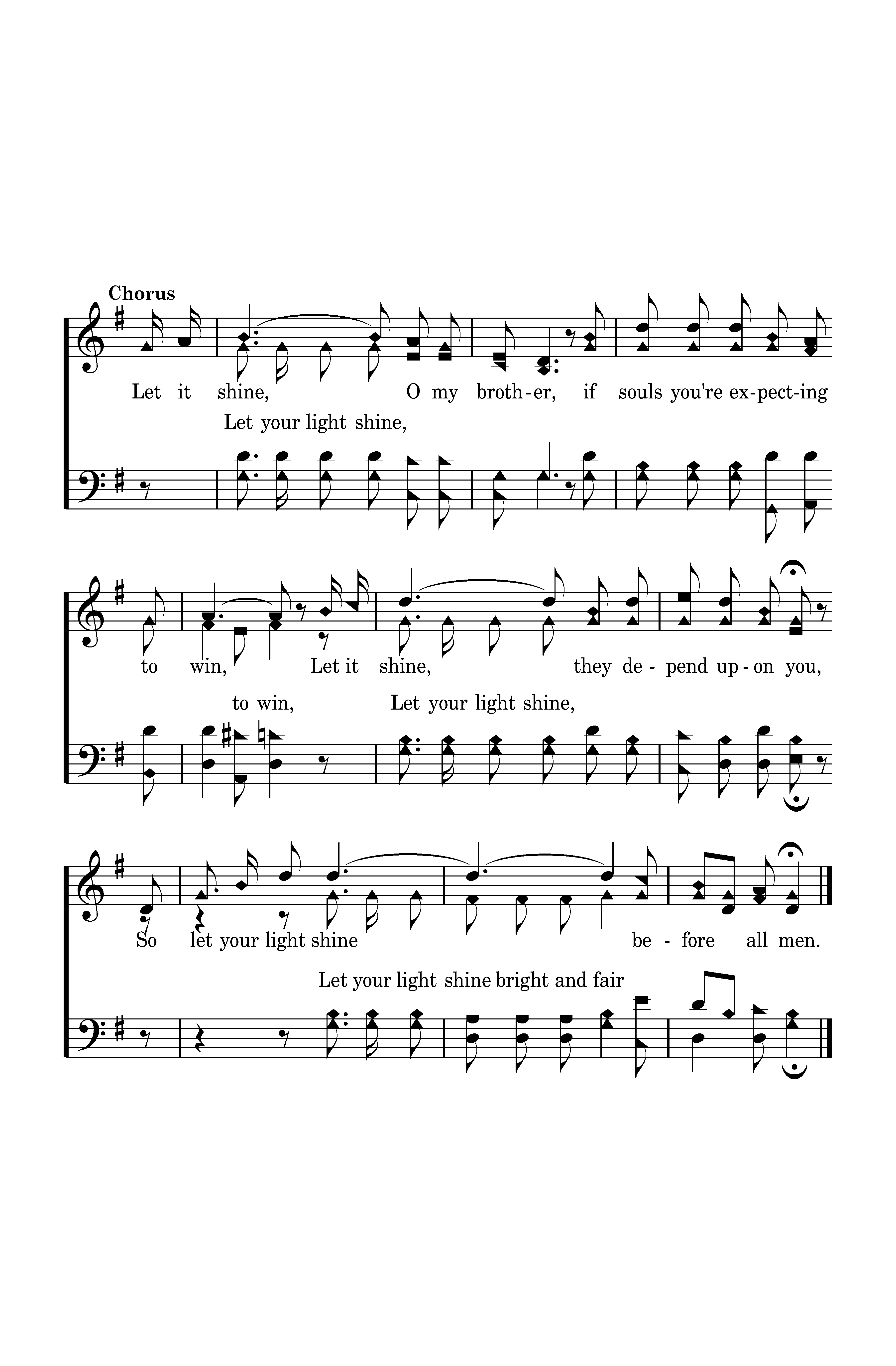 Let your light shine O my brother, if souls you're expecting to win, Let your light shine, they depend upon you, So let your light shine bright and fair before all men.