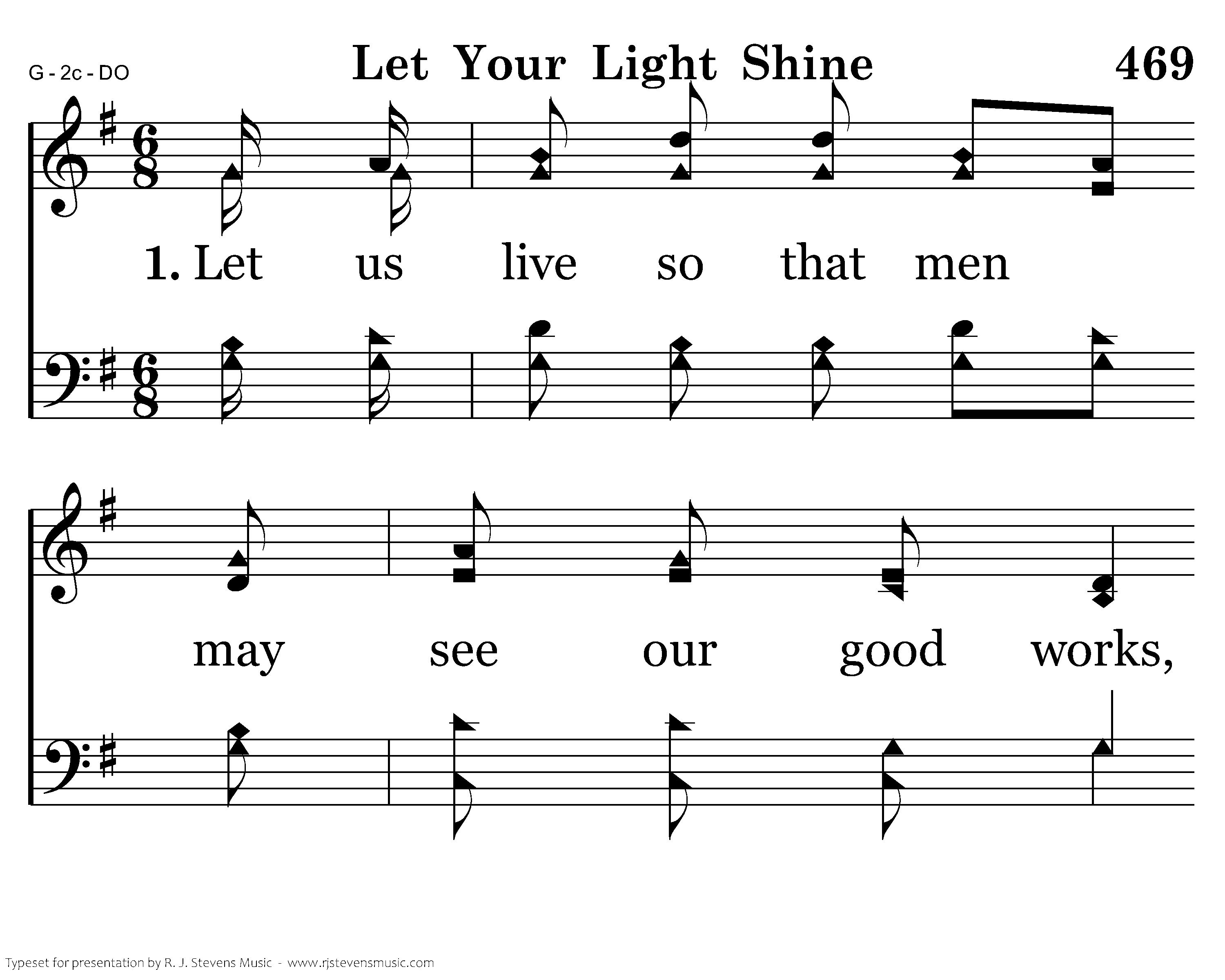Let us live so that men may see our good works, And glorify our God above. We can lead them to Jesus if our lamp is bright; Let your light shine bright and fair before all men.