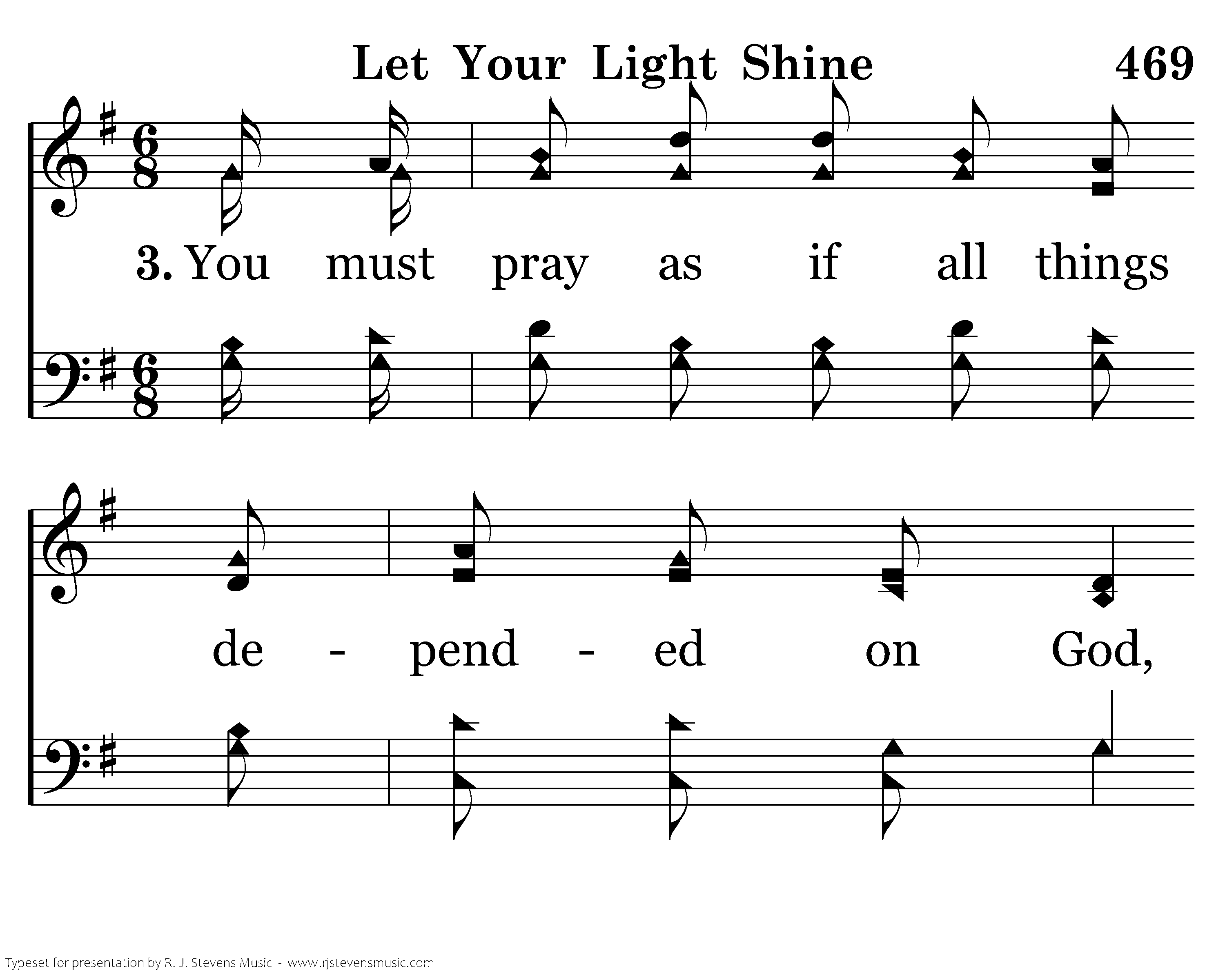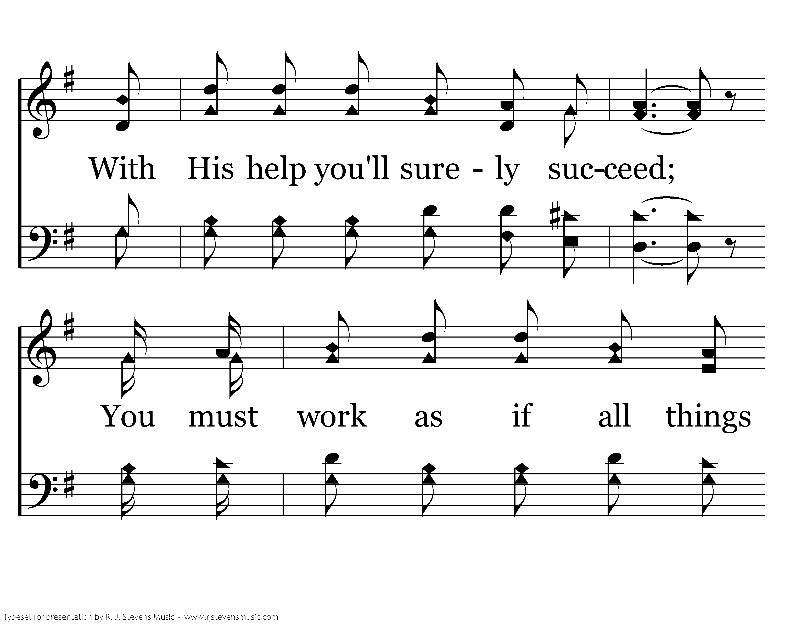 You must pray as if all things depended on God, With His help you'll surely succeed; You must work as if all things depended on you, Let your light shine bright and fair before all men.