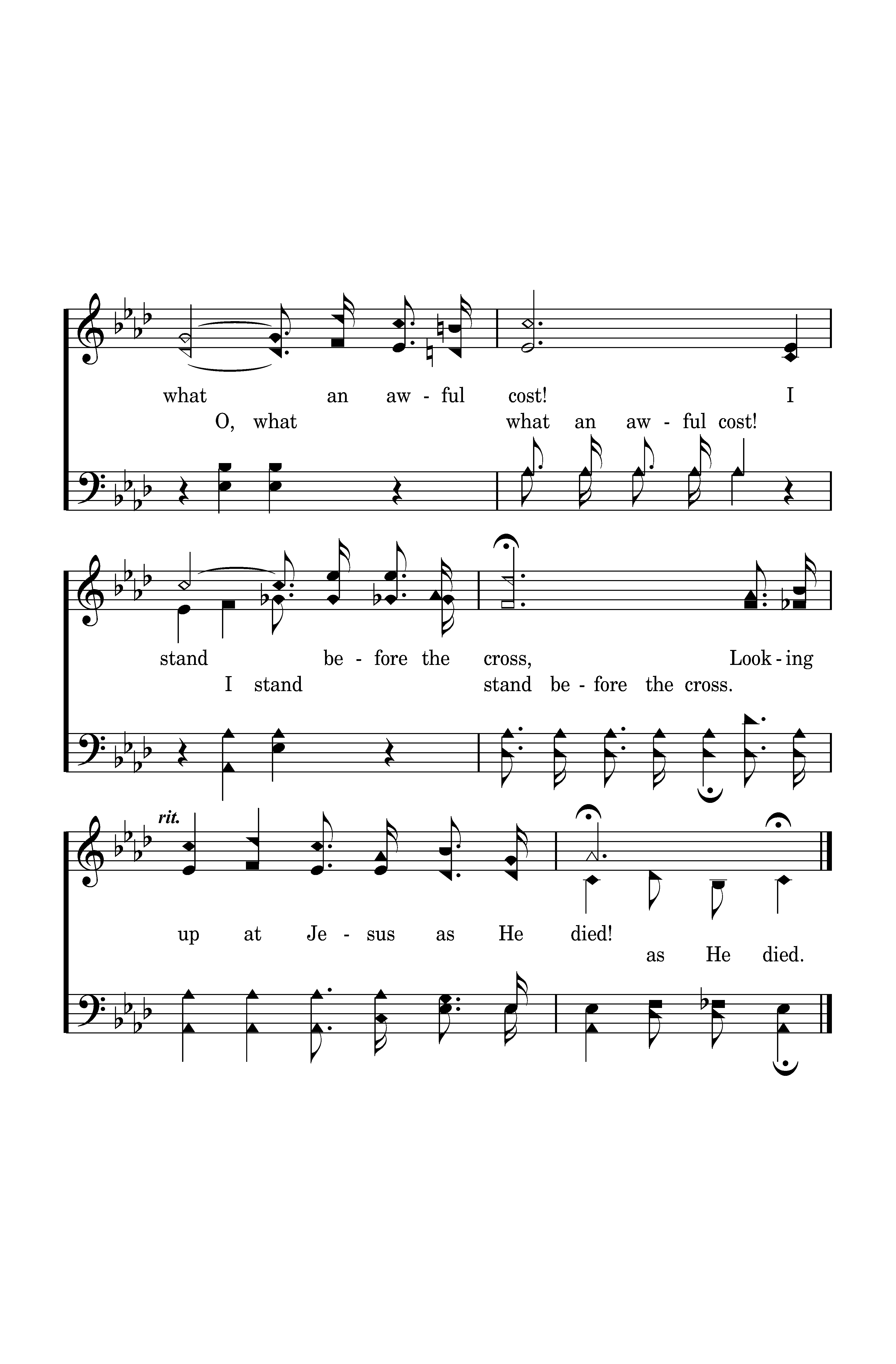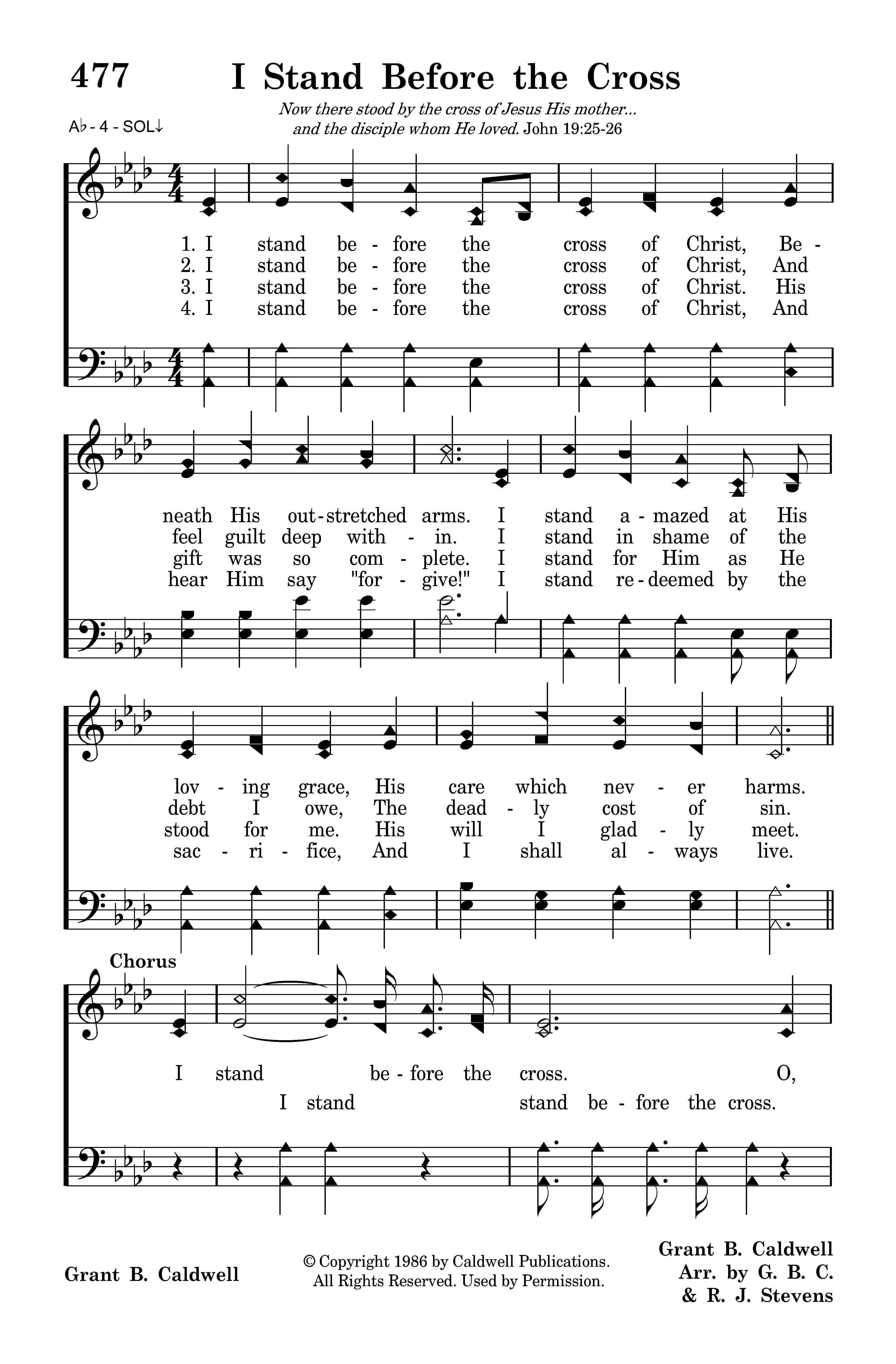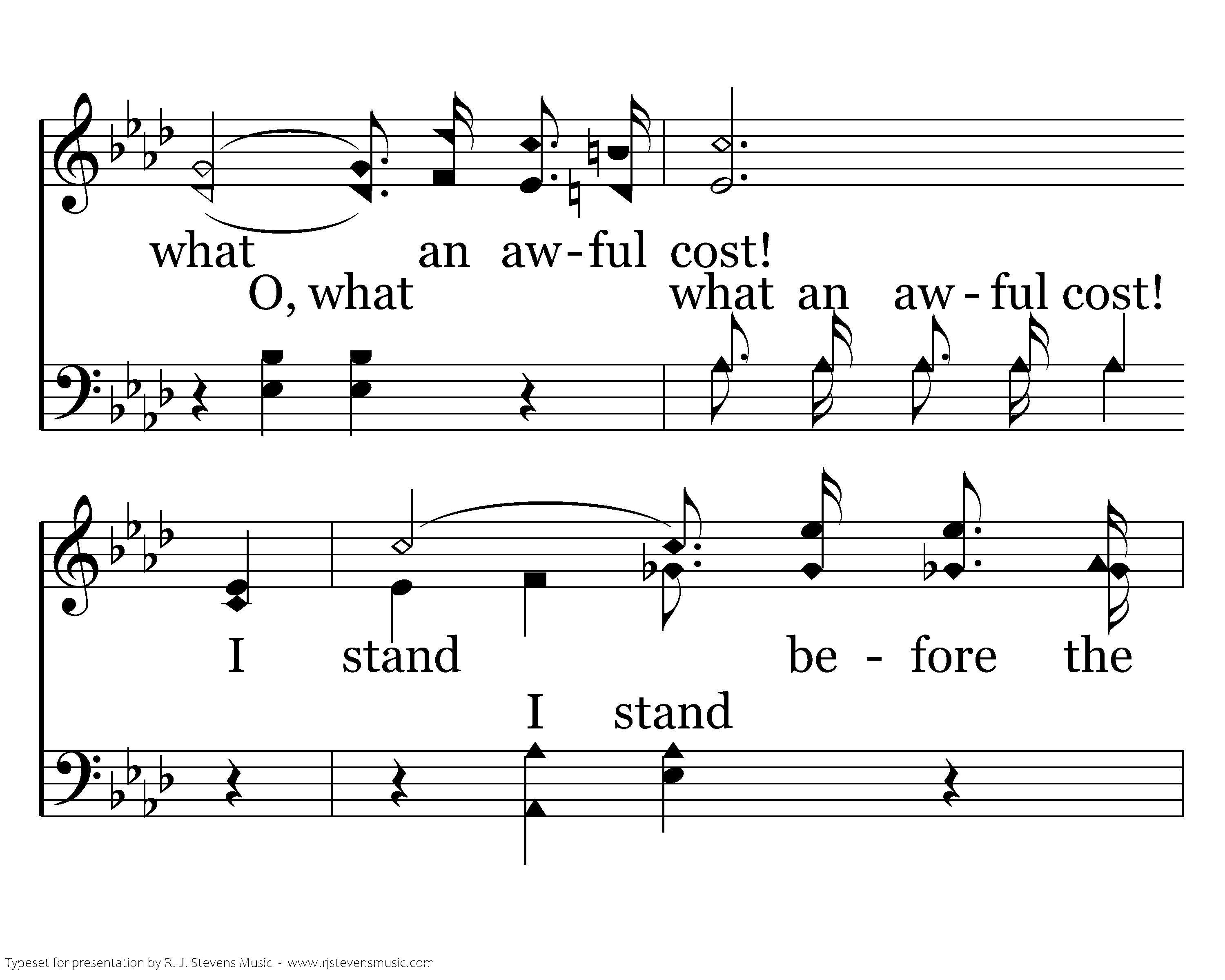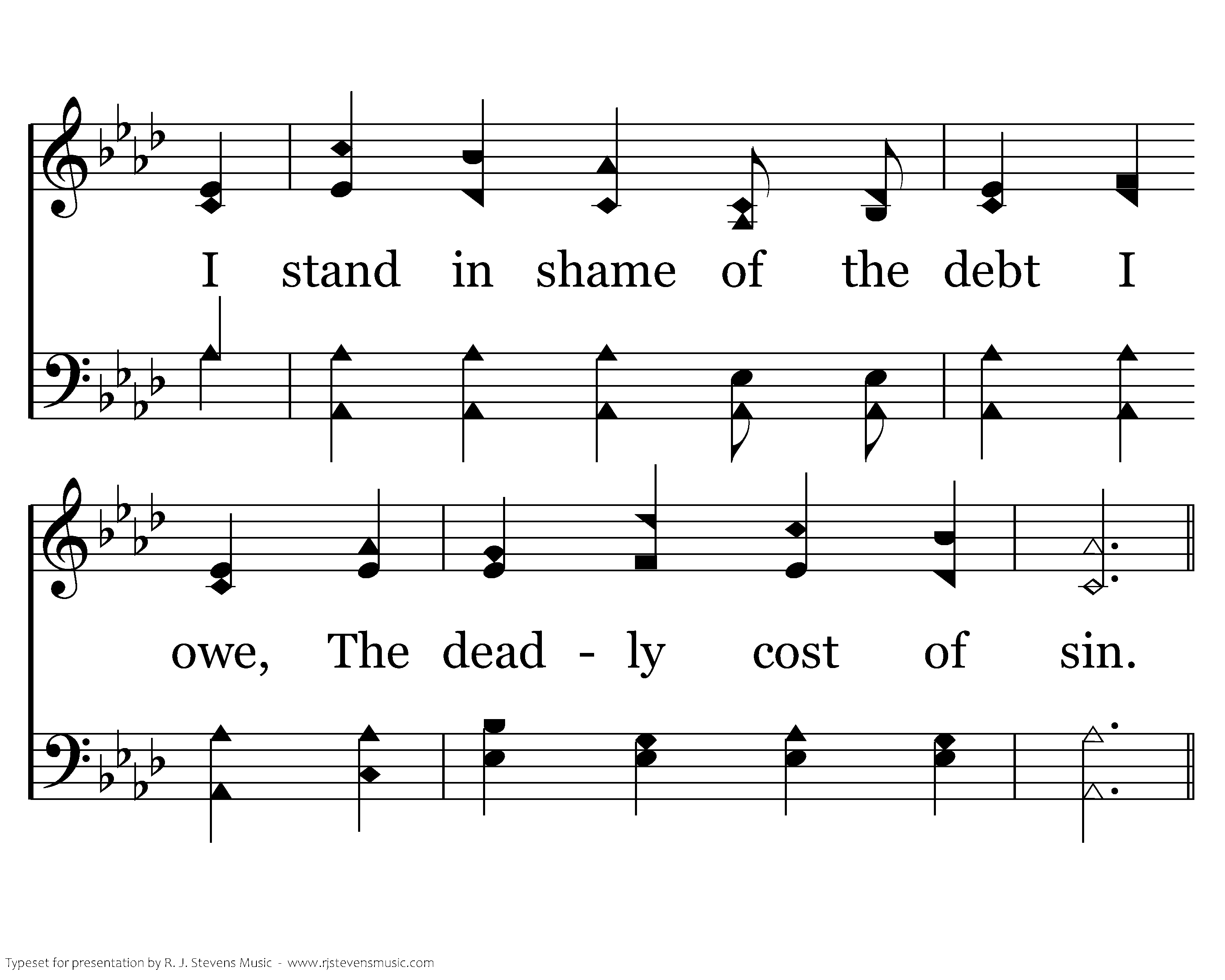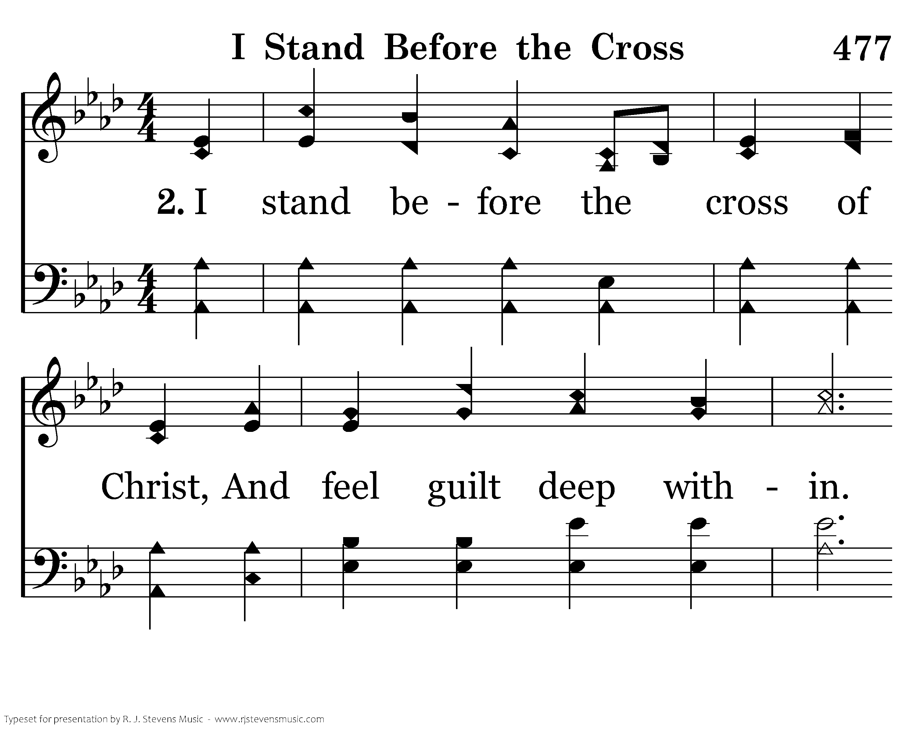 I stand before the cross of Christ, and feel guilt deep within. I stand in shame of the debt I owe, The deadly cost of sin.