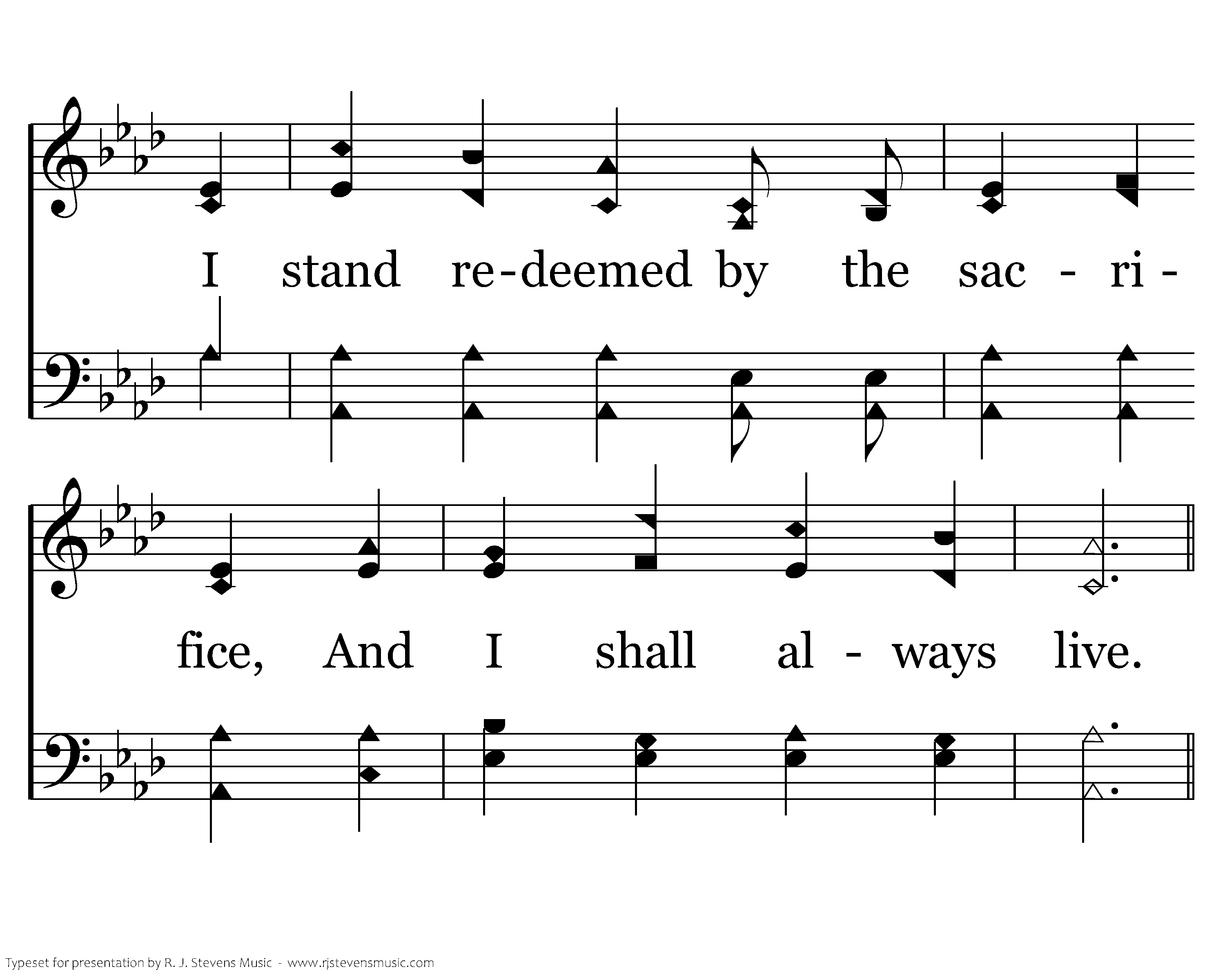 I stand before the cross of Christ, and hear Him say "forgive!" I stand redeemed by the sacrifice, And I shall always live.