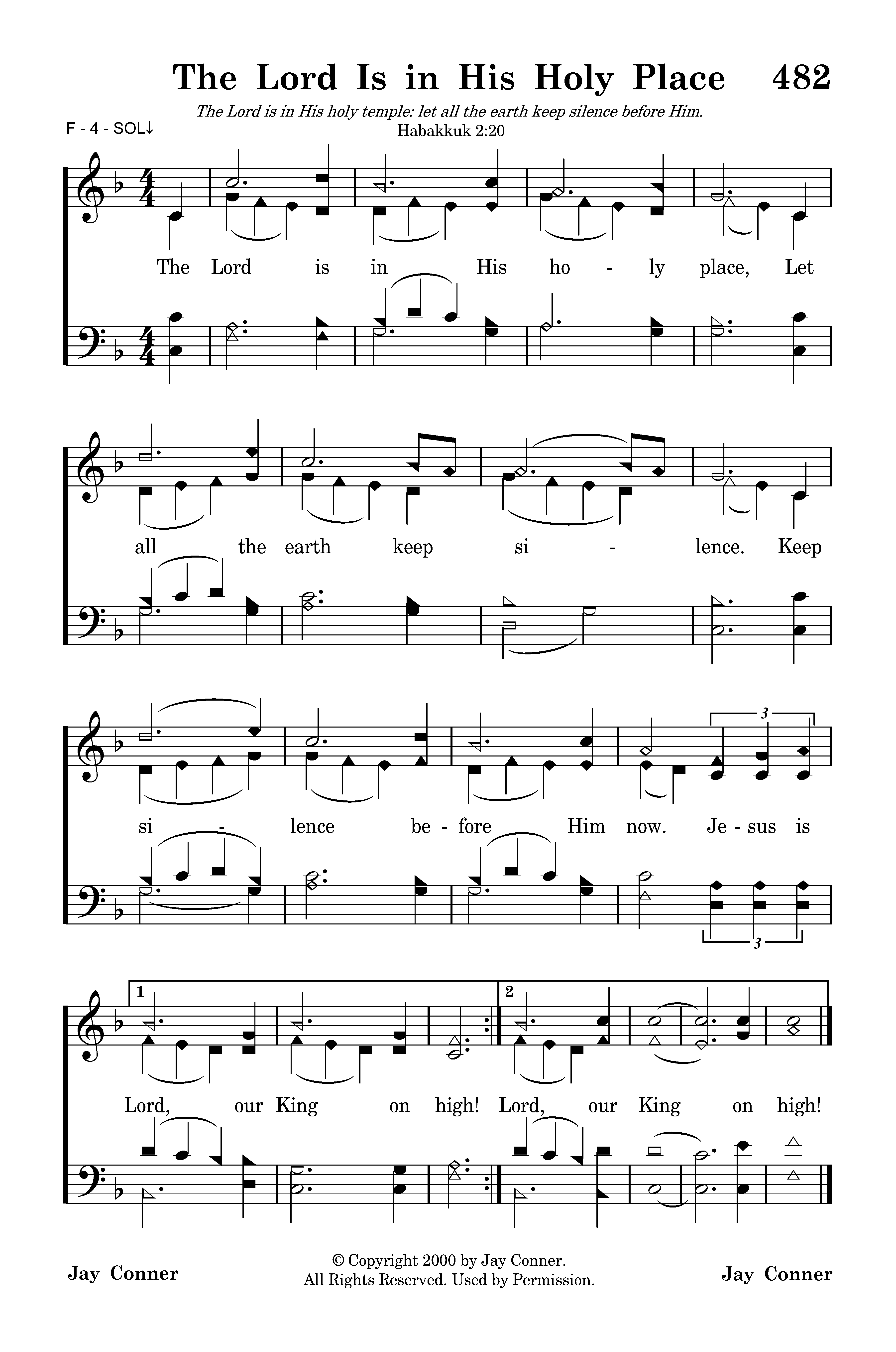 | Title | THE LORD IS IN HIS HOLY PLACE |