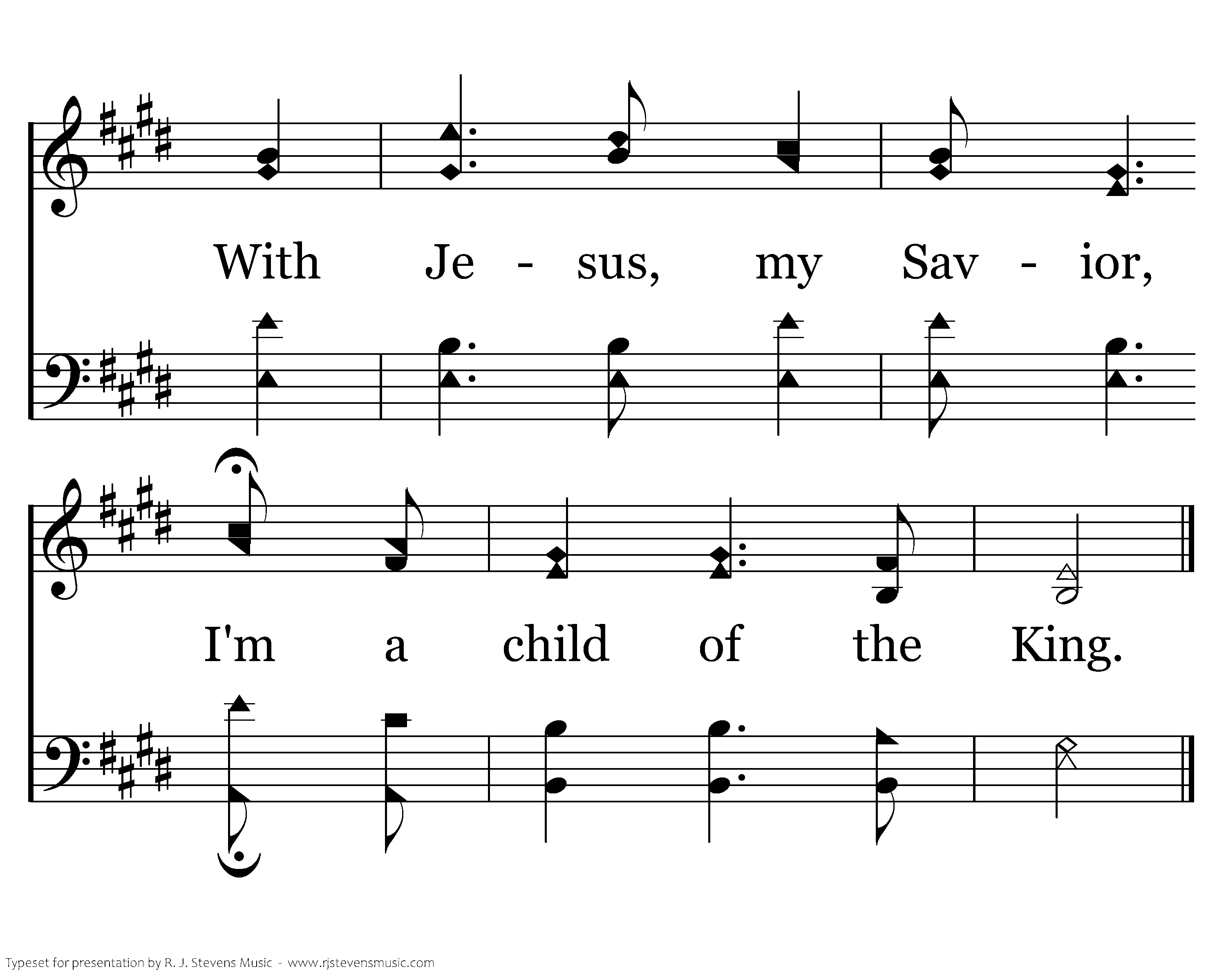 I'm a child of the King, a child of the King! With Jesus, my Savior, I'm a child of the King.