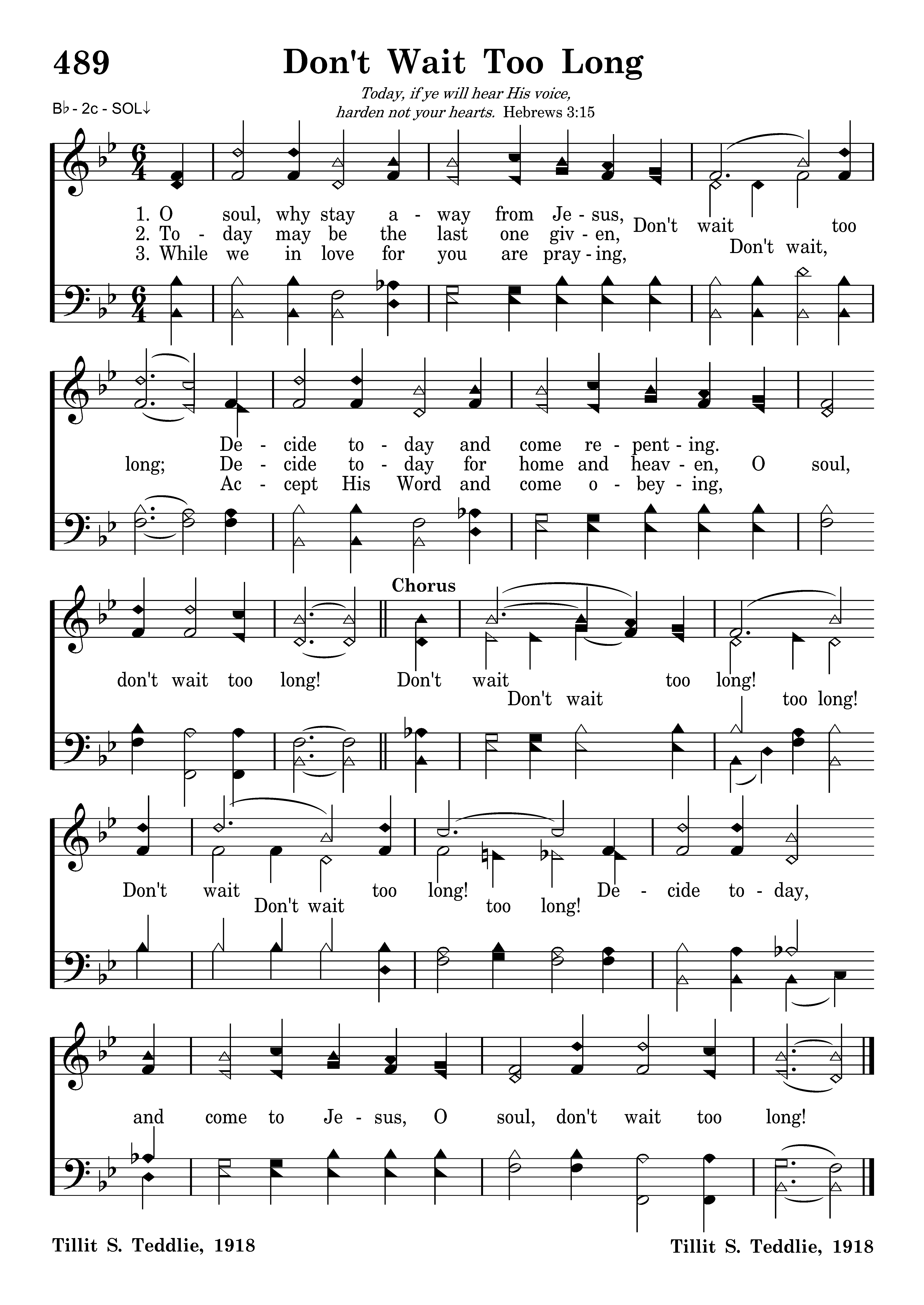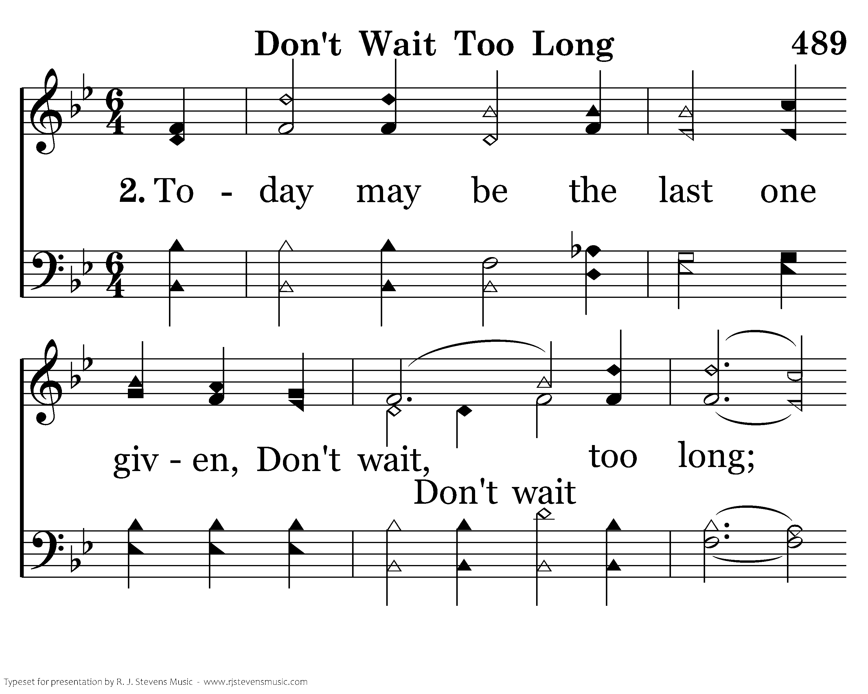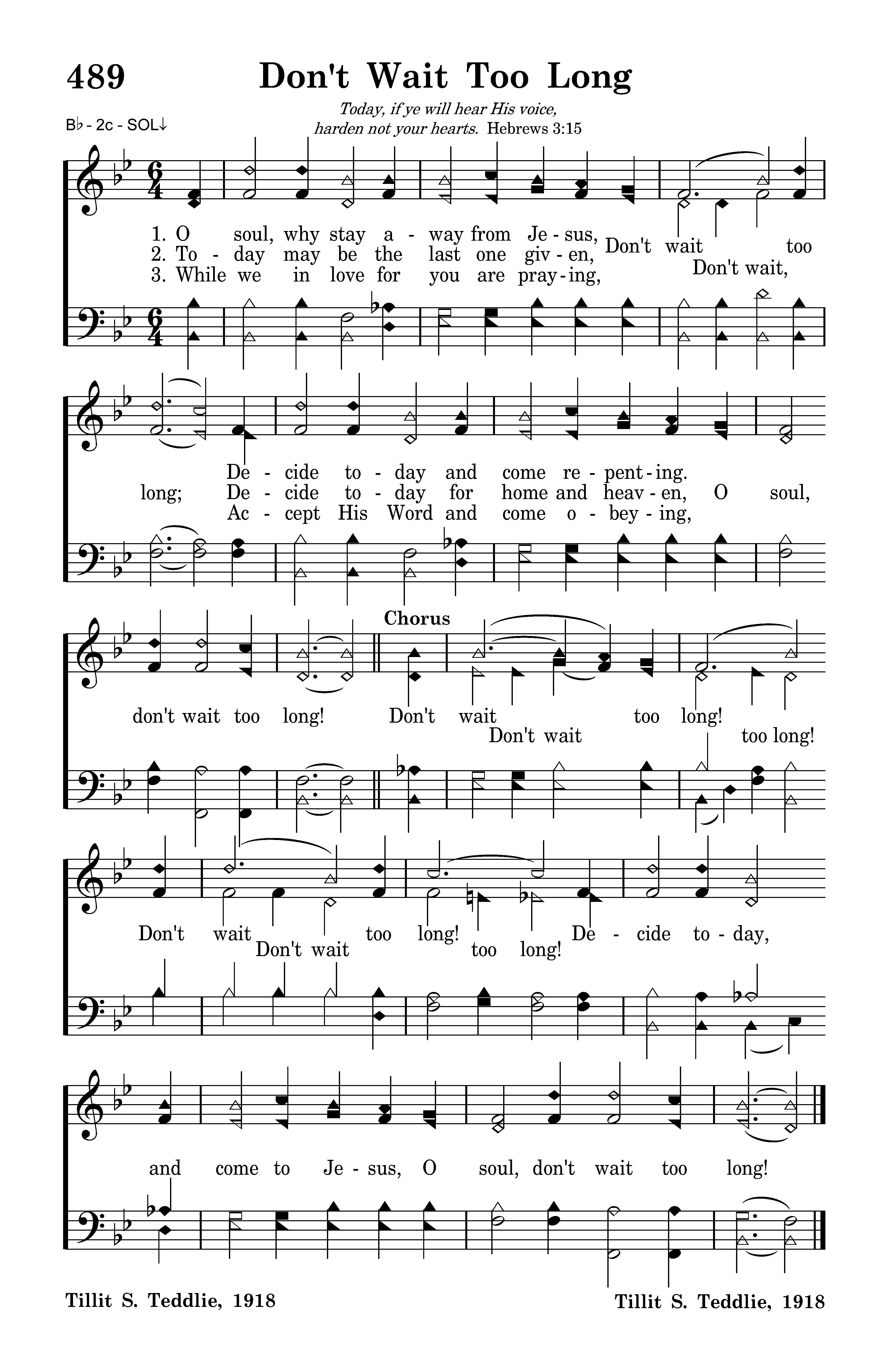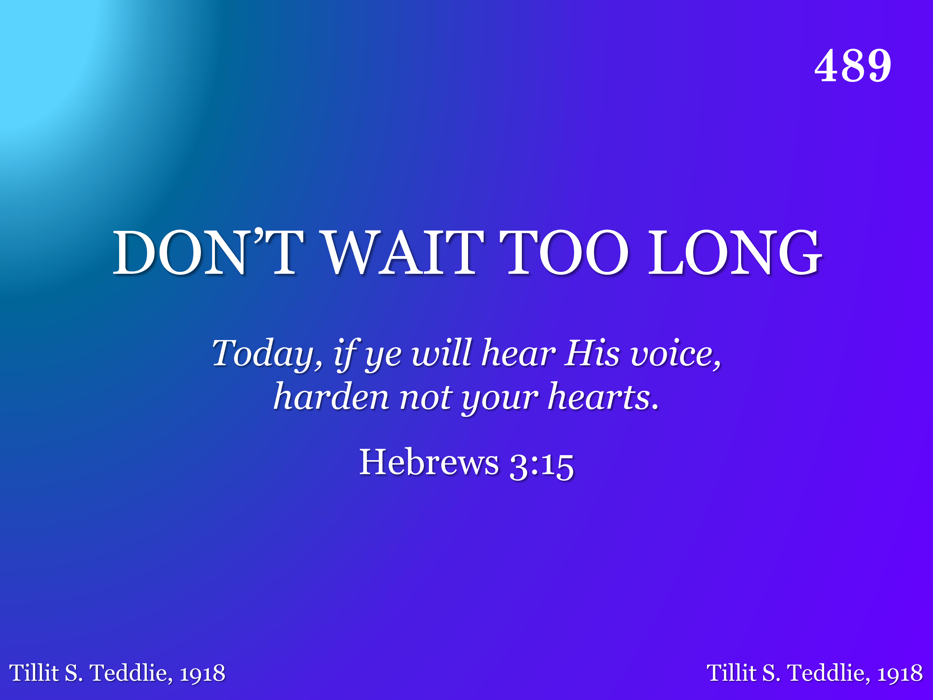 Today may be the last one given, Don't wait too long; Decide today for home and heaven, O soul, don't wait too long!