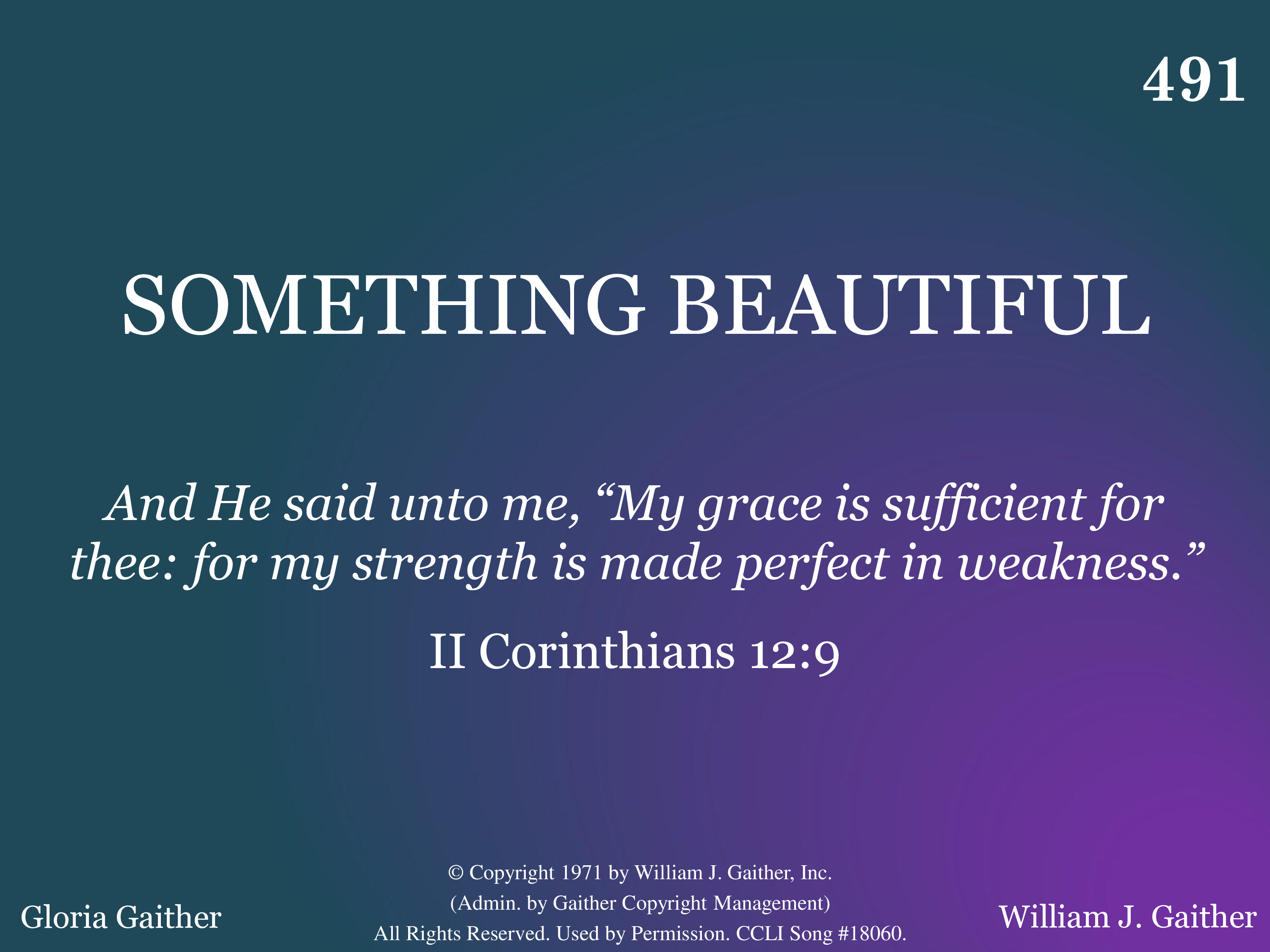 - Copyright © 1971 by William J. Gaither, Inc. (Admin. by Gaither Copyright Management.) All Rights Reserved. Used by Permission.
